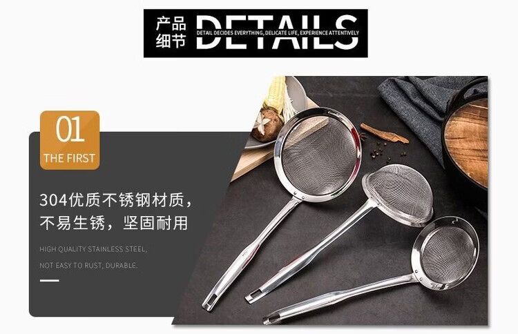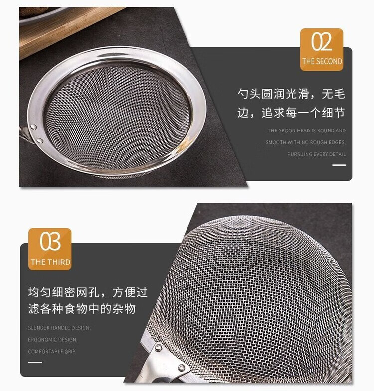 简漾打沫勺304不锈钢漏勺家用厨房撇油勺过滤网筛火锅撇浮沫隔油勺 -- 304深网小号漏勺