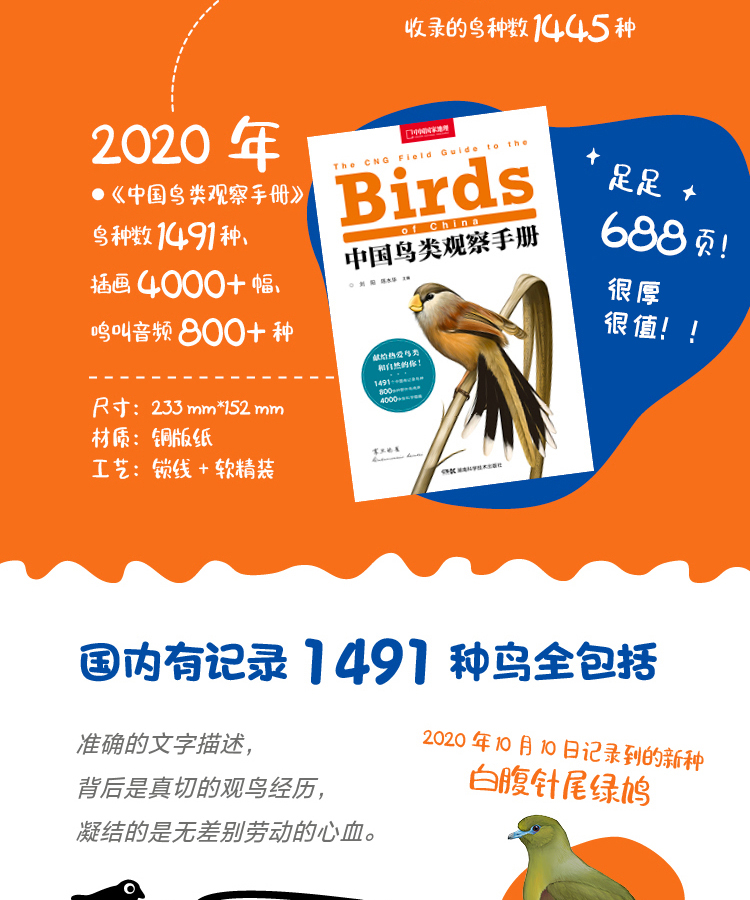 (加赠鸟类贴纸)中国鸟类观察手册鸟类图鉴百科全书 观鸟手册书 鸟类行为动物科普 中国国家地理书籍 包含1491种鸟