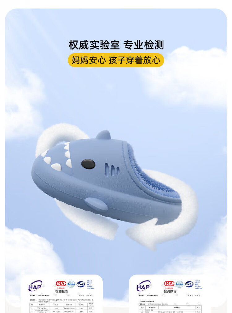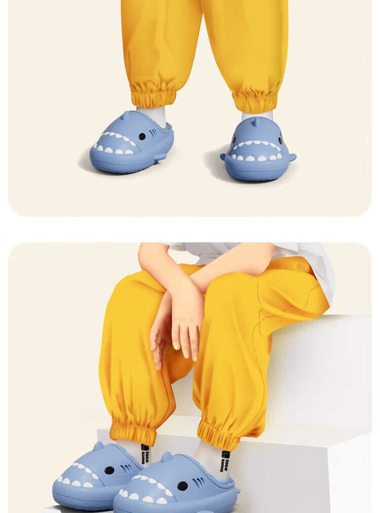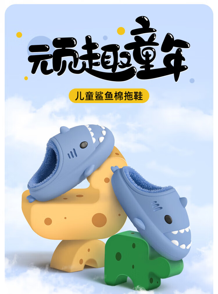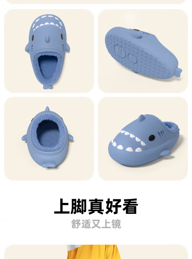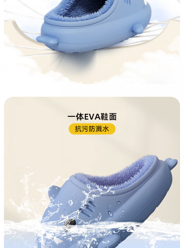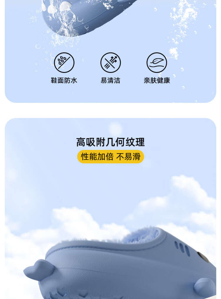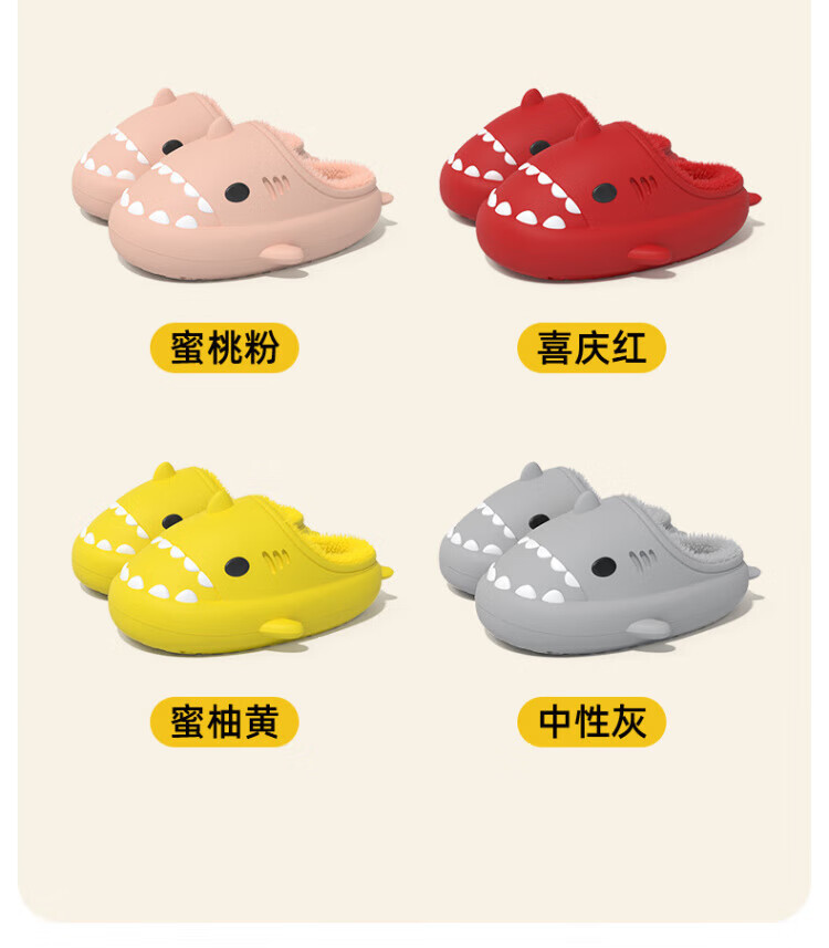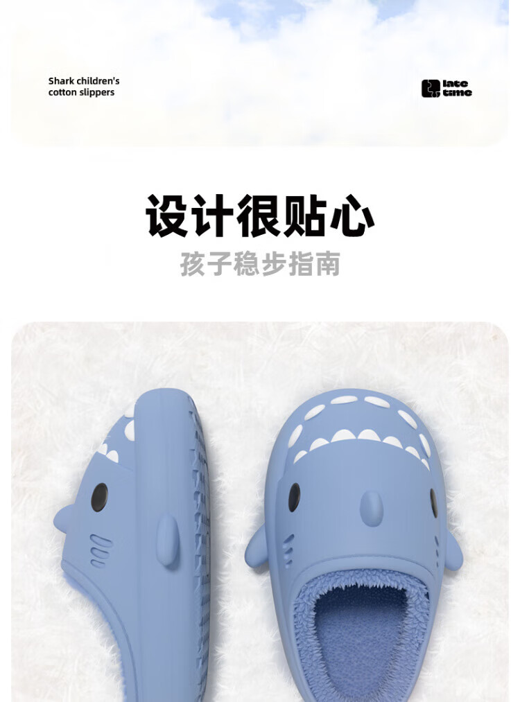 DEATKN德国防水鲨鱼儿童棉拖鞋女童秋冬季室内防滑家居亲子女孩宝宝毛棉 胭脂粉【半拖】 10.5 内长14cm_【140】适合脚长约13cm