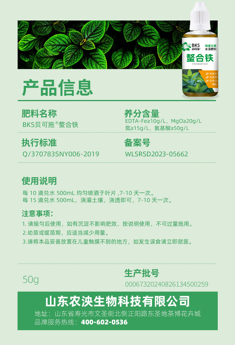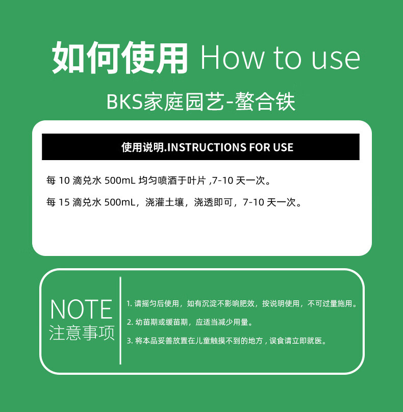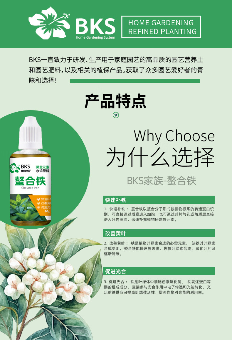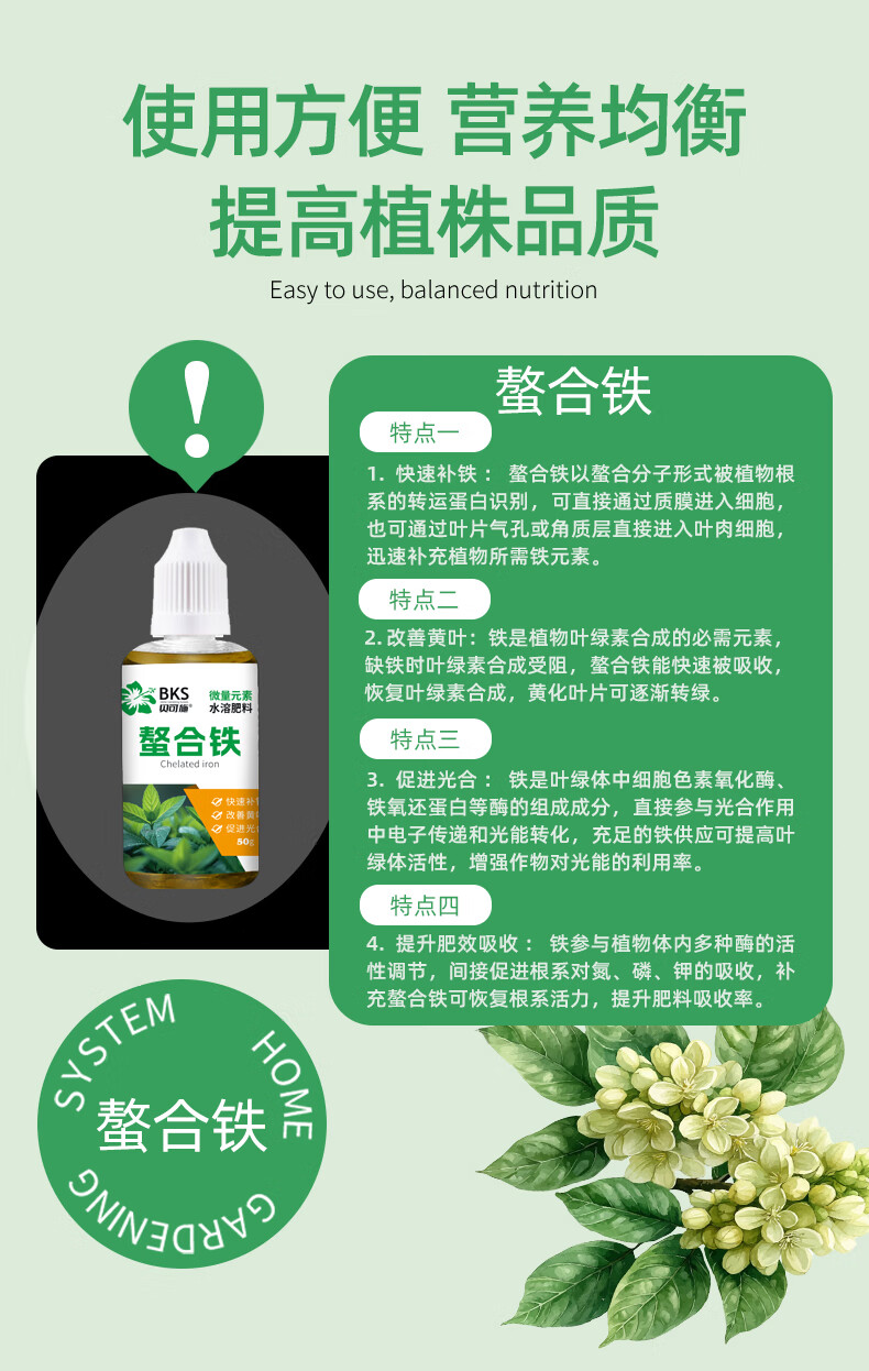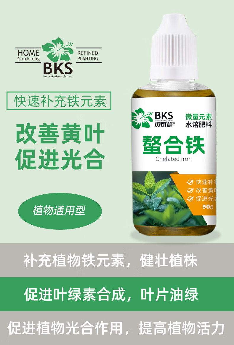 贝可施螯合铁快速补铁改善黄叶促进光合促吸收绿植花卉通用 螯合铁*1瓶
