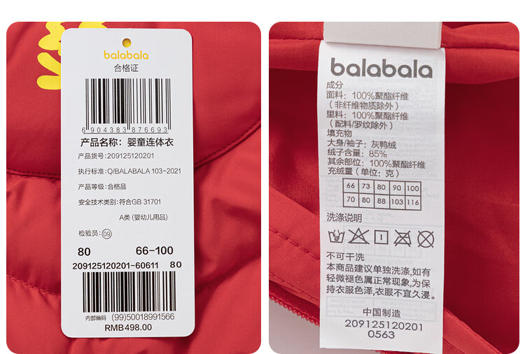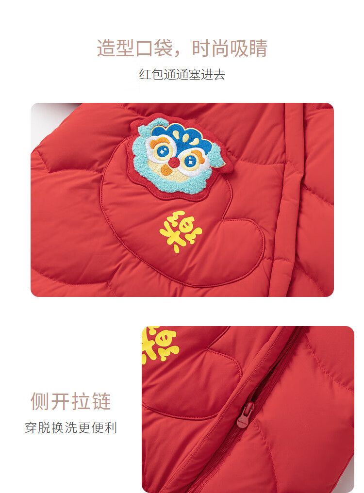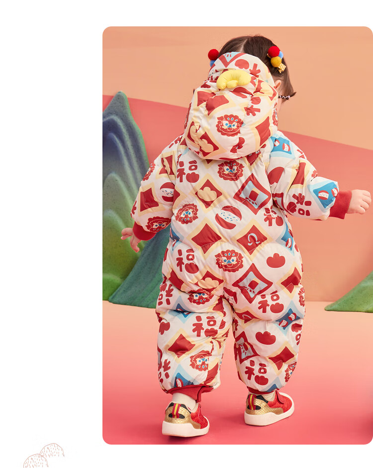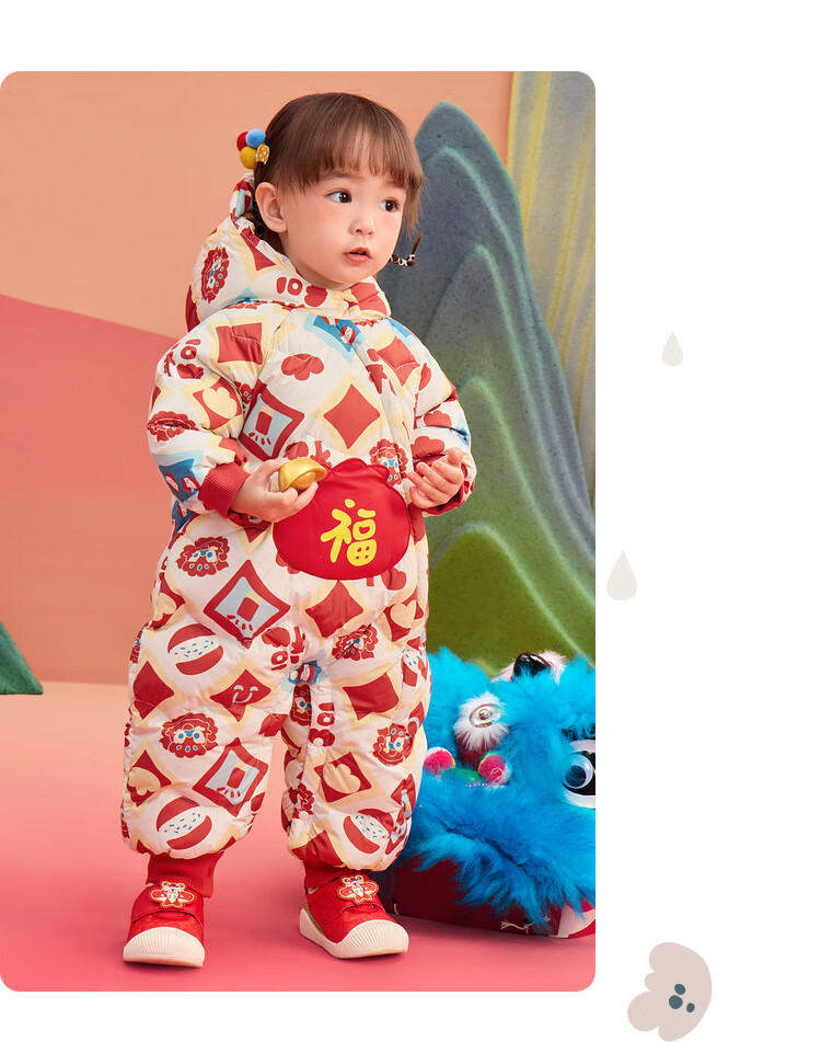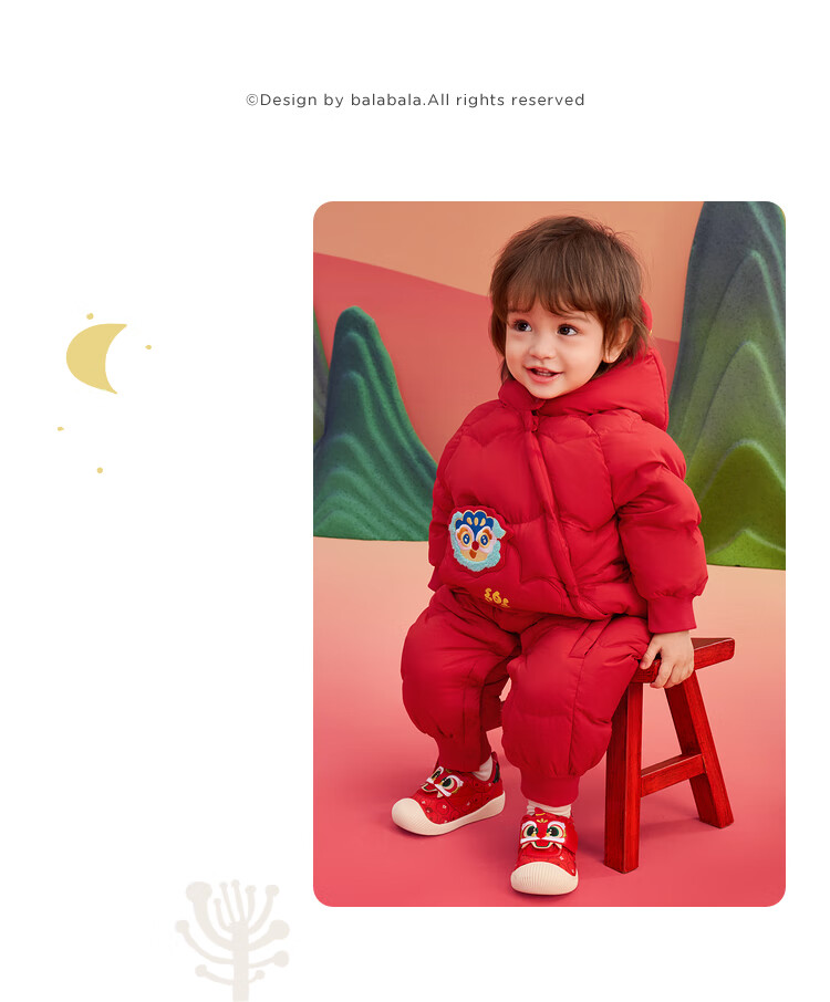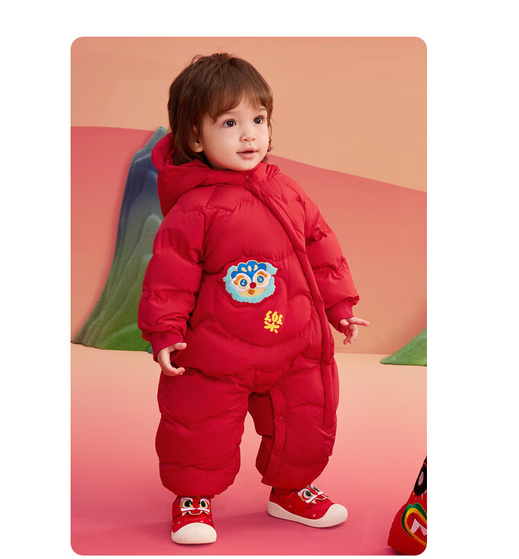 巴拉巴拉童装宝宝连体衣新生儿衣服儿童羽绒拜年服2025新年婴儿冬装爬行服 白红色调00316 80cm