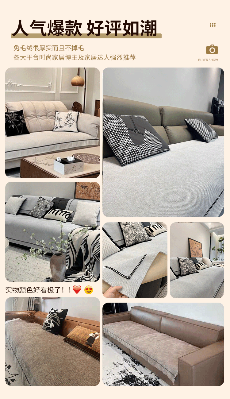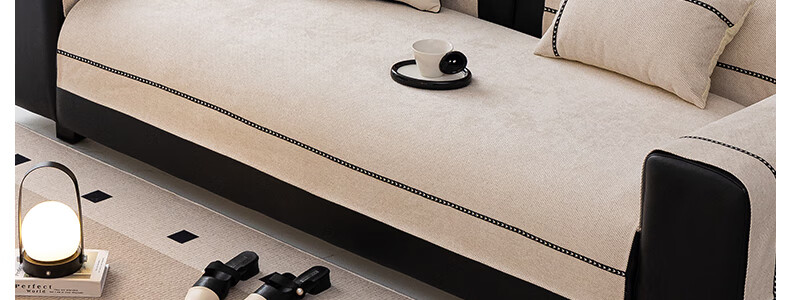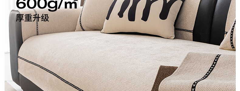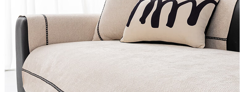 无印良品【活性印染】沙发垫四季通用防滑2025新款皮沙发专用套罩坐垫盖布 拿铁时光-米色【加厚软糯雪尼尔 四季通用】 90*240cm (三人位/小四人位)