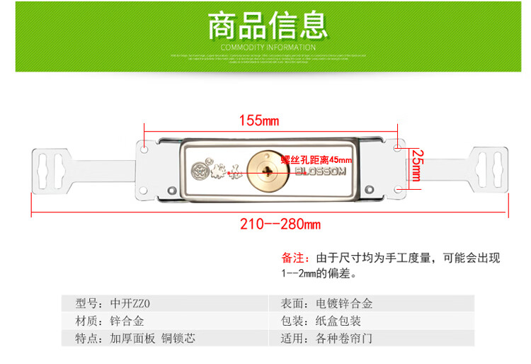 梅花(BLOSSOM)卷帘门锁 中开型卷闸门锁 车库门店仓库防盗门锁Z02