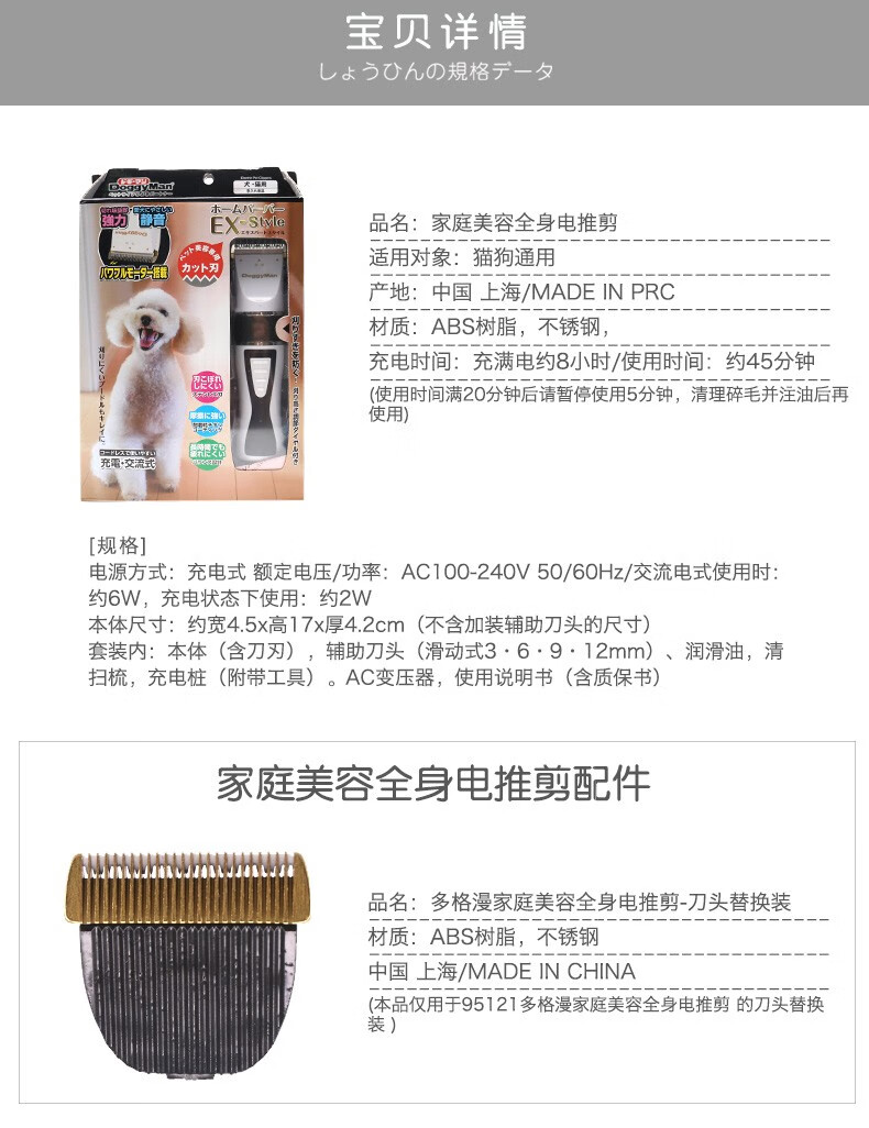 多格漫宠物电推剪家庭美容充电式剃毛深度可调节 全身电推剪