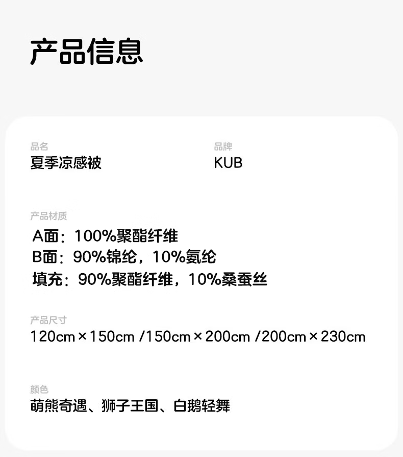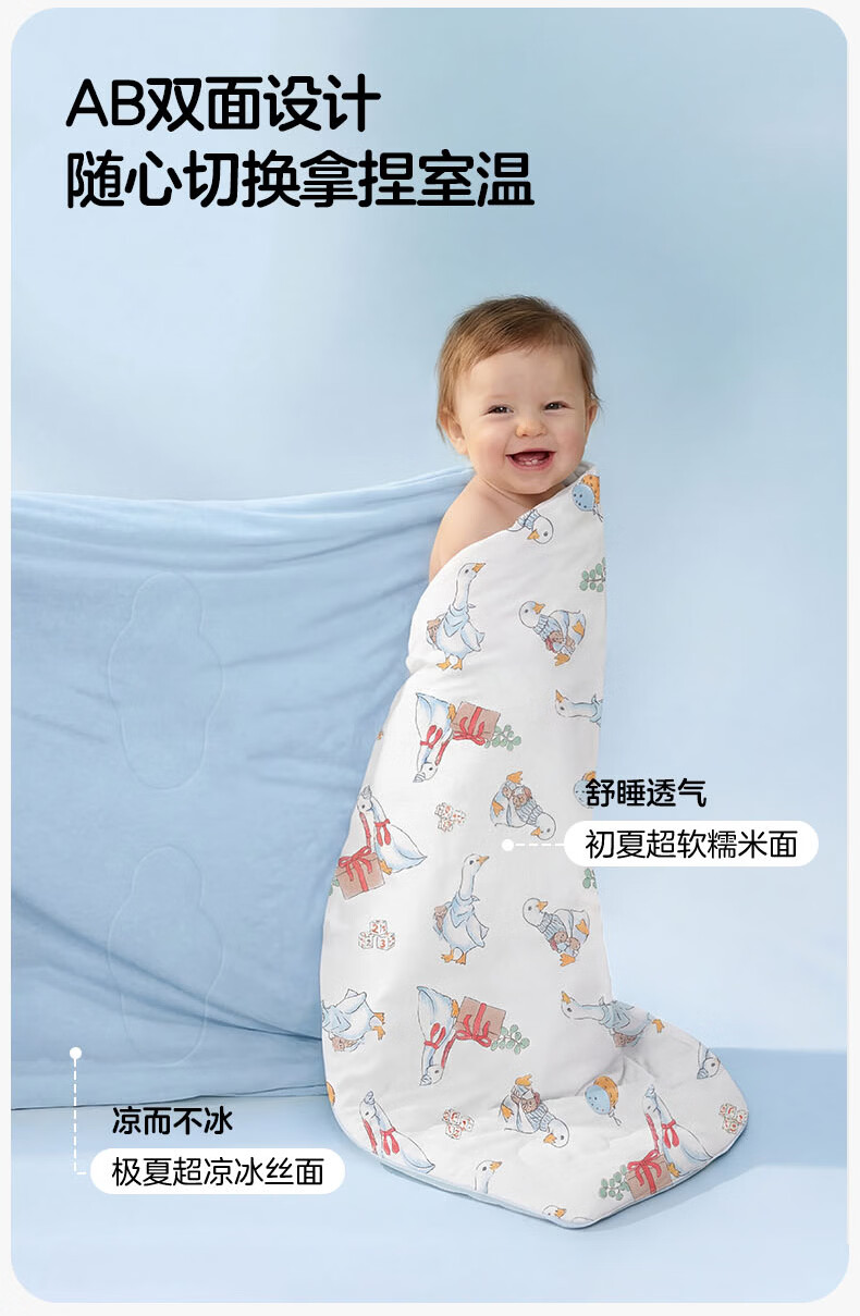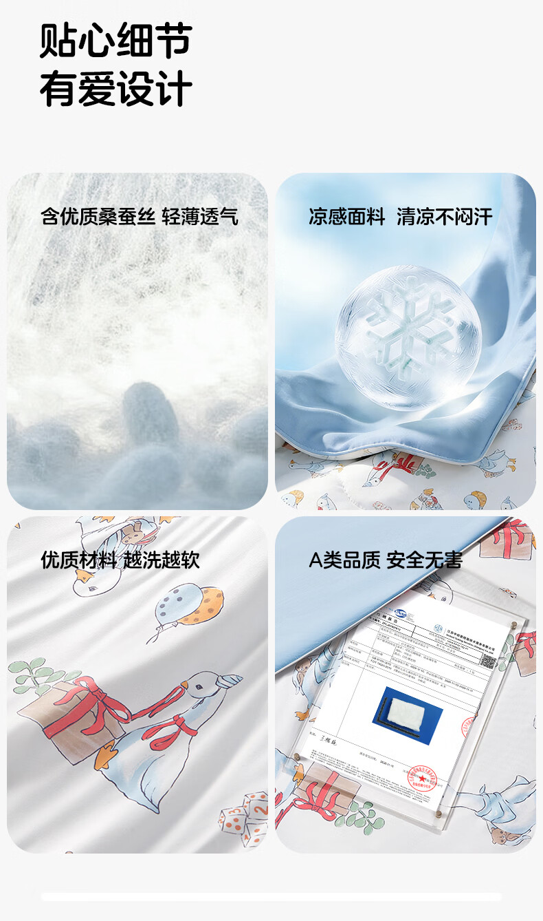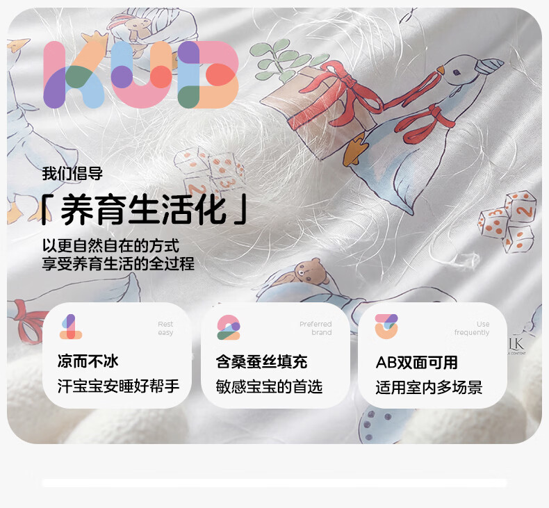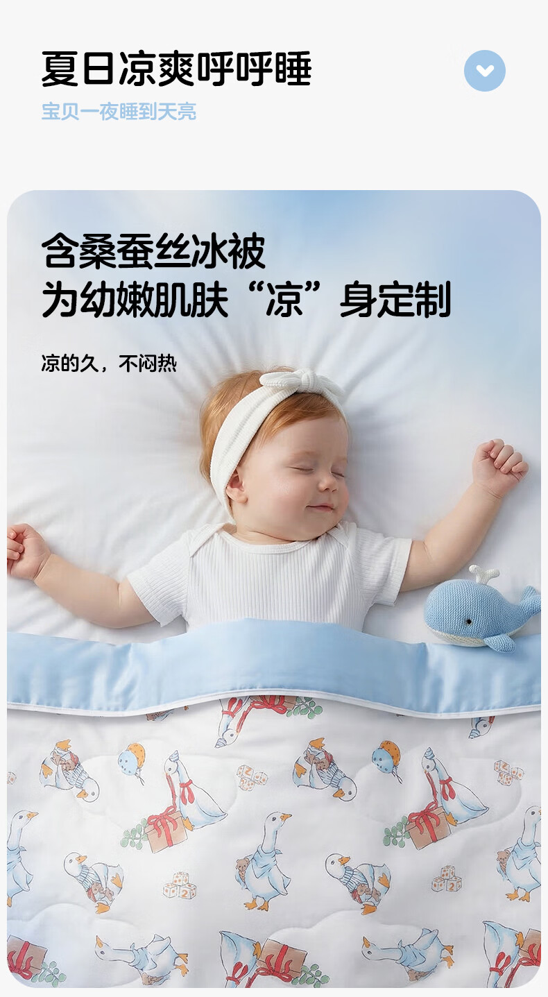 可优比(KUB)婴儿被子10A抗菌儿童夏凉被含桑蚕丝新生宝宝空调被幼儿园凉感被 【10A抗菌凉感被】-萌熊奇遇 120*150cm