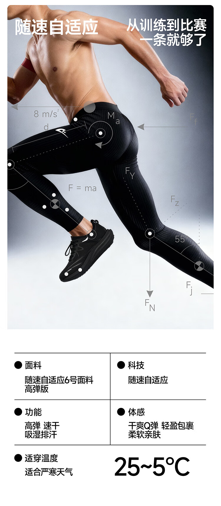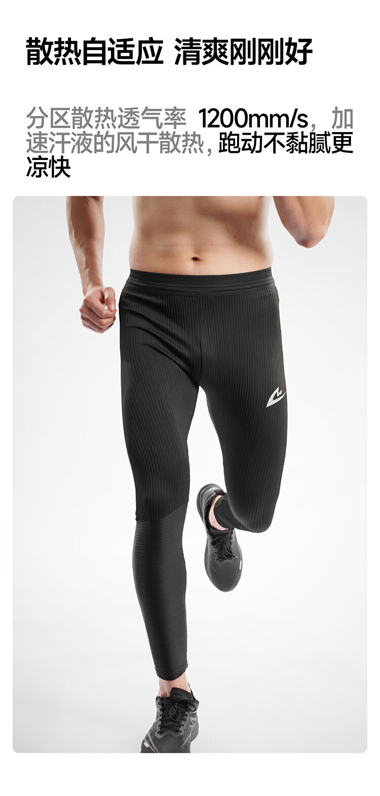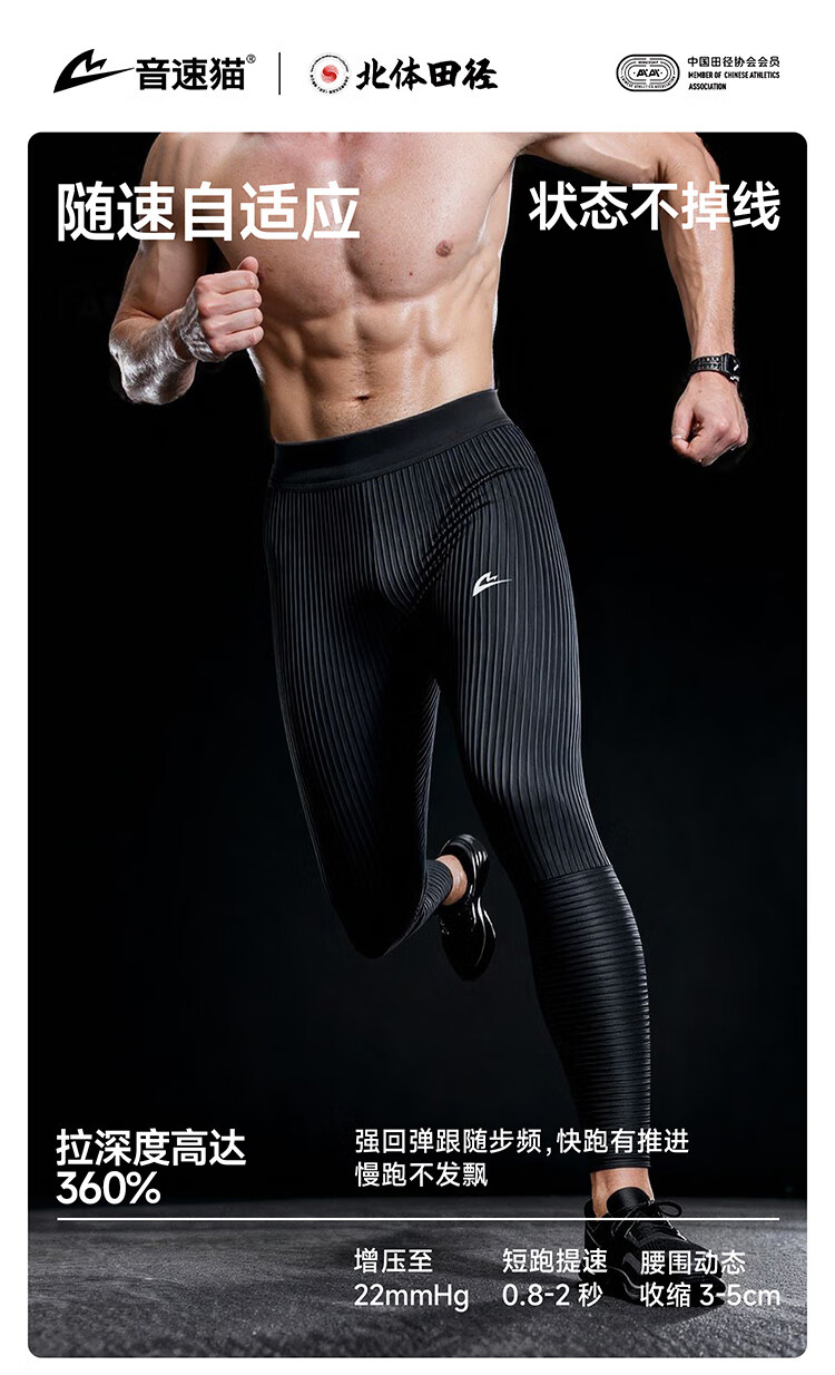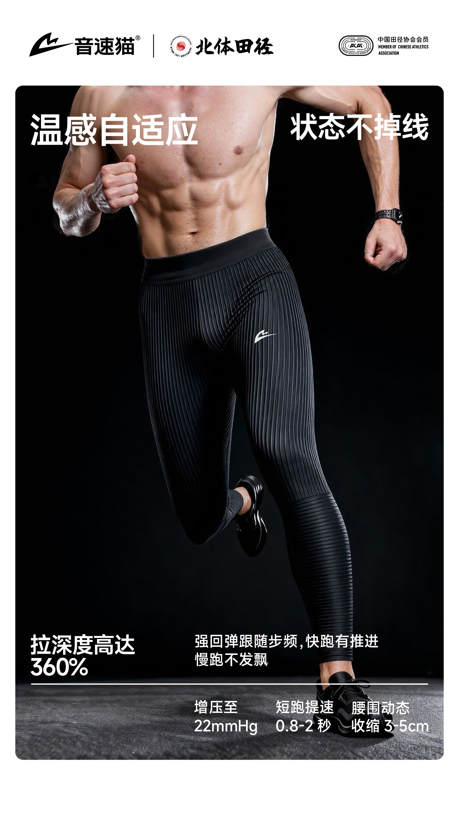 音速猫冰丝长裤AUTO-FIT速干高弹紧身运动裤体考跑步裤【北体共研】 暗夜黑 XL