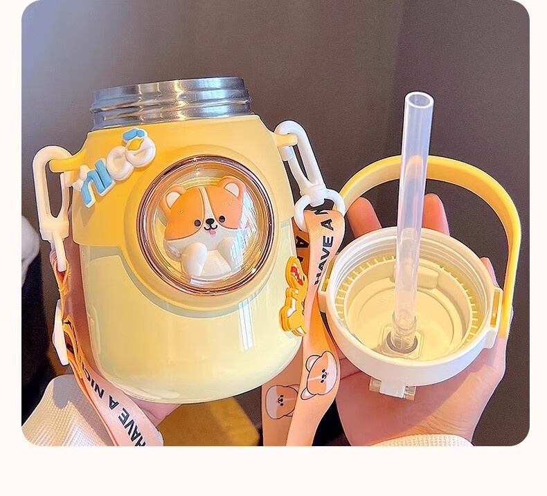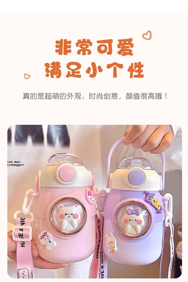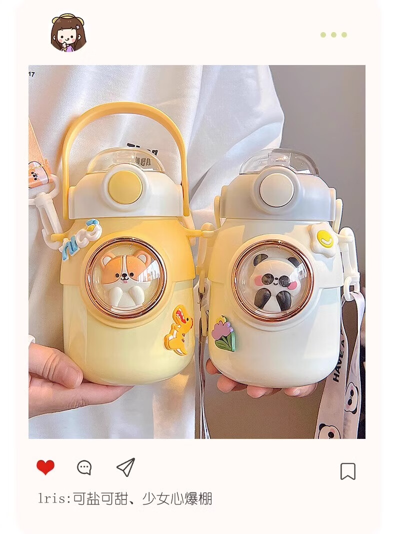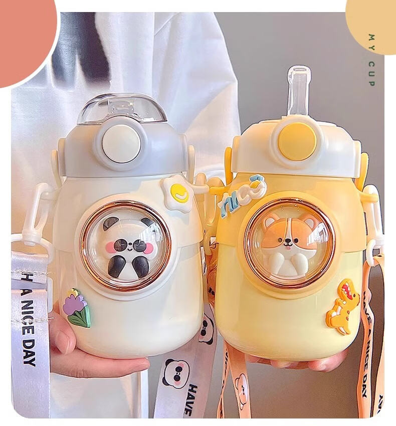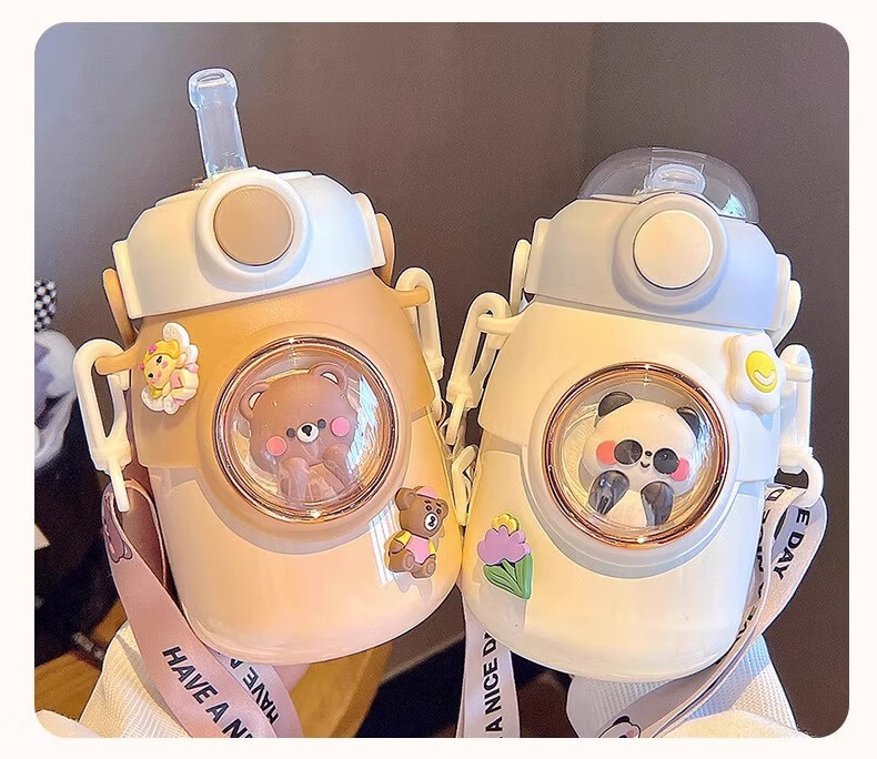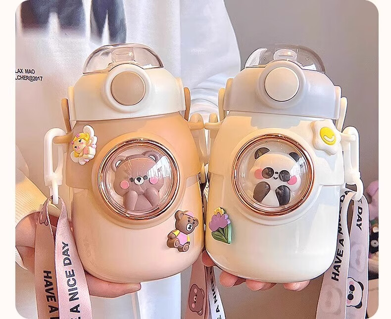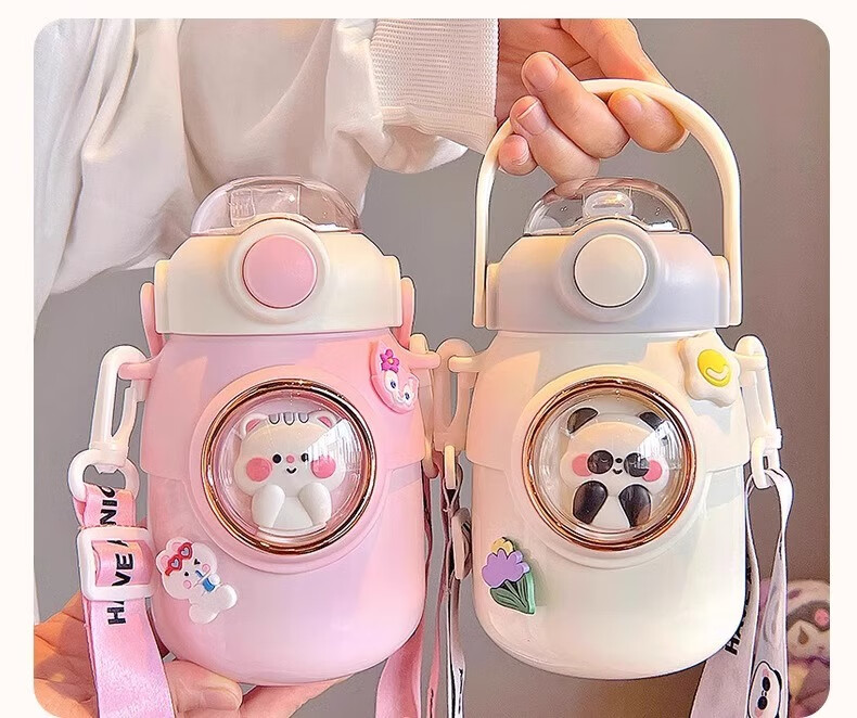 初和(CRUHRE)保温杯女2024新款高颜值食品级316儿童水杯上学专用学生可爱杯子 316熊猫白刻名字 700ml