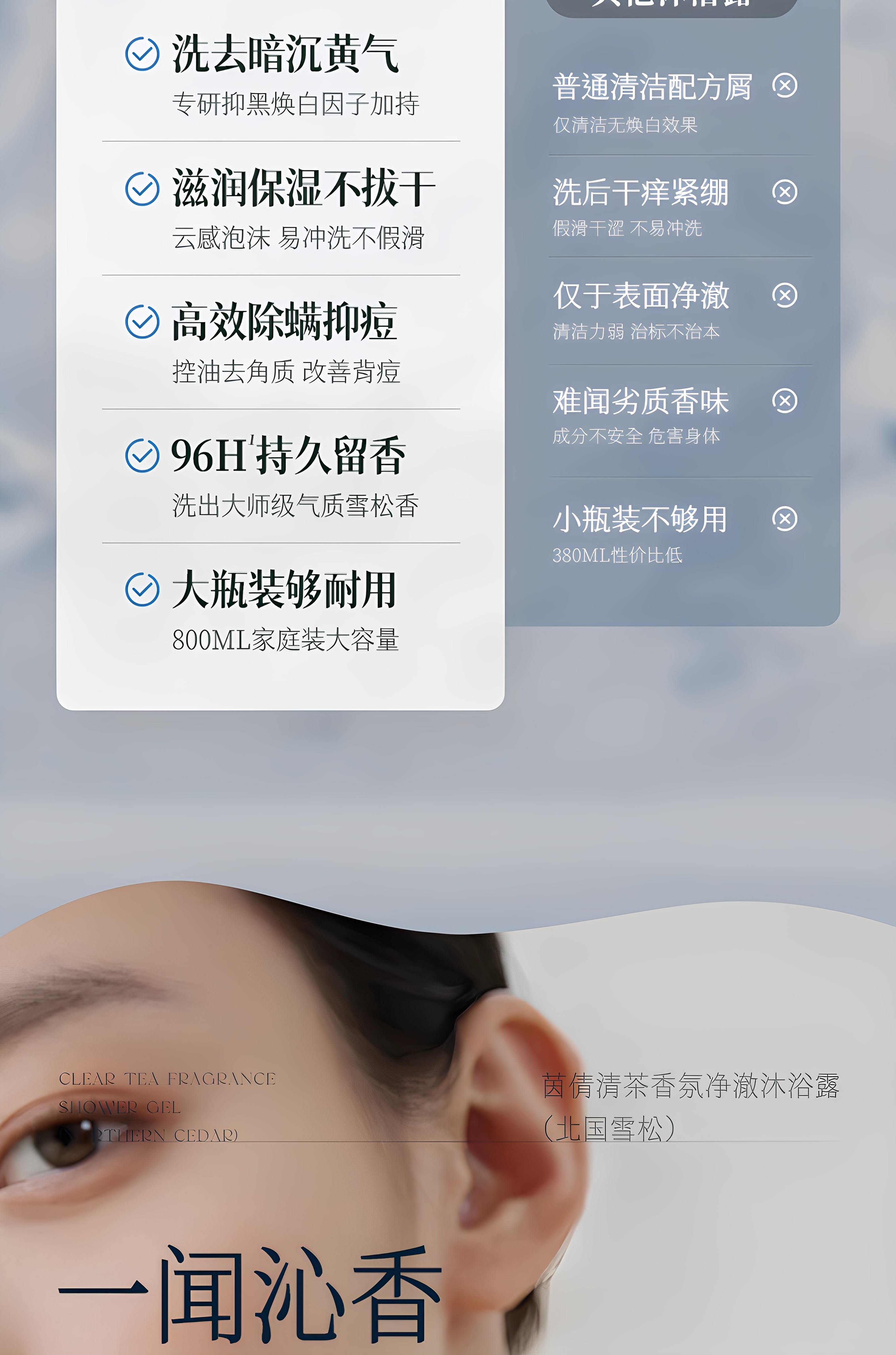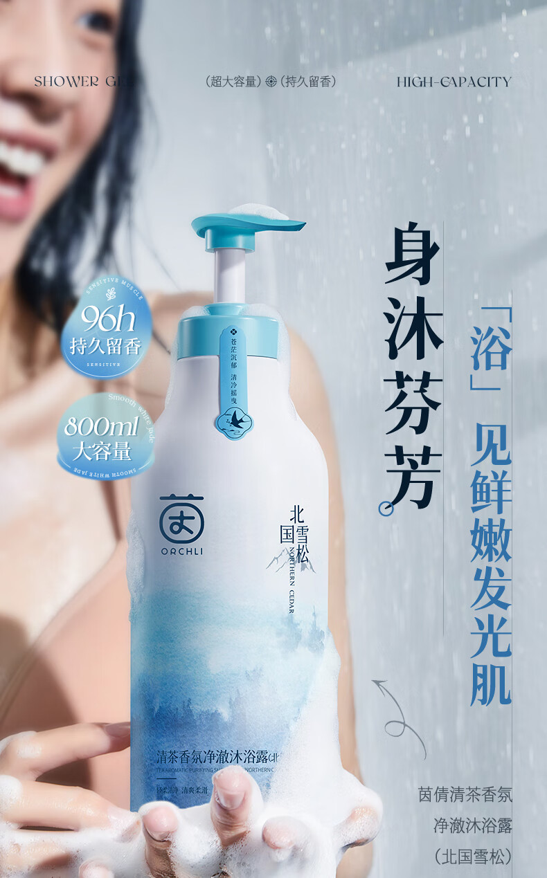 茵倩沐浴露持久留香72小时香水祛痘液乳男士女套装品牌正品官方旗舰店 【焕亮嫩肤】北国雪松香沐浴露800ML