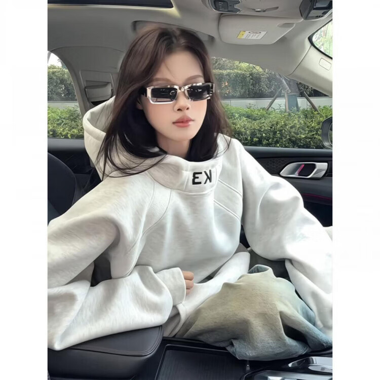 POUM白花灰高领连帽卫衣男士秋冬美式拼接刺绣外套休闲宽松情侣帽衫 BCYMG-Y41藏青色 M