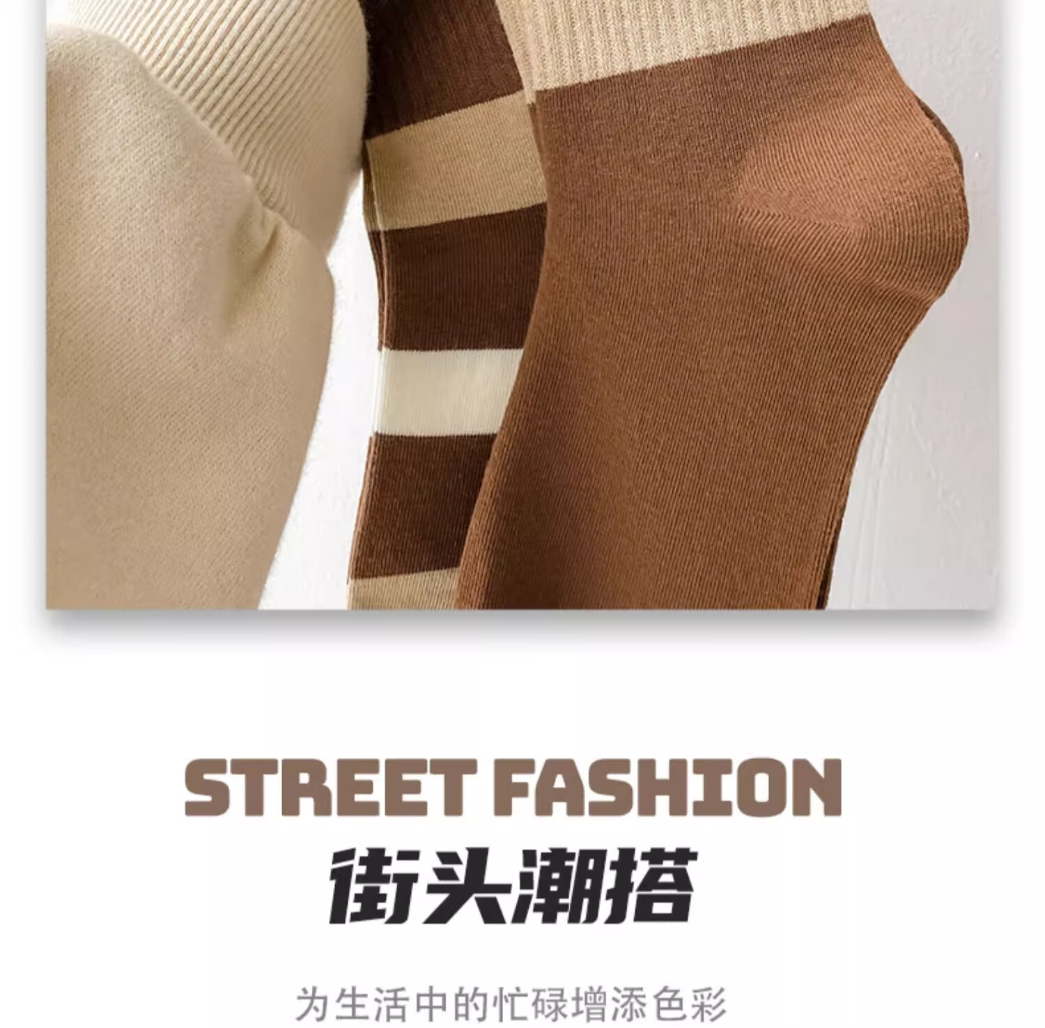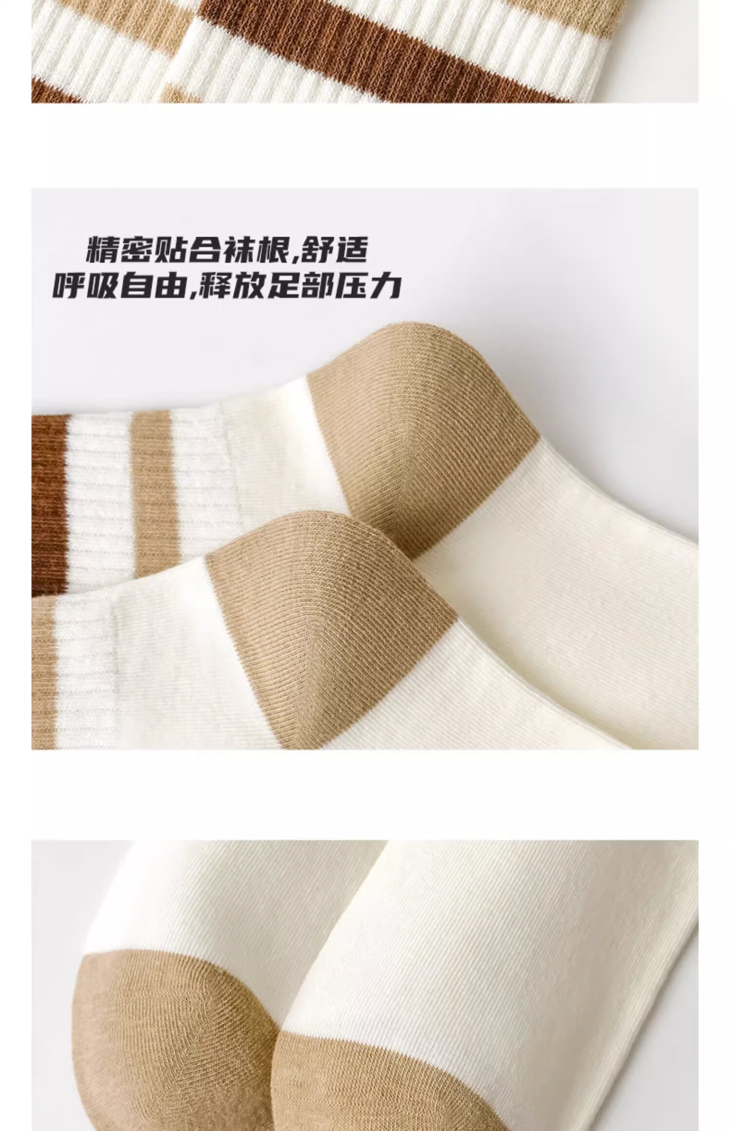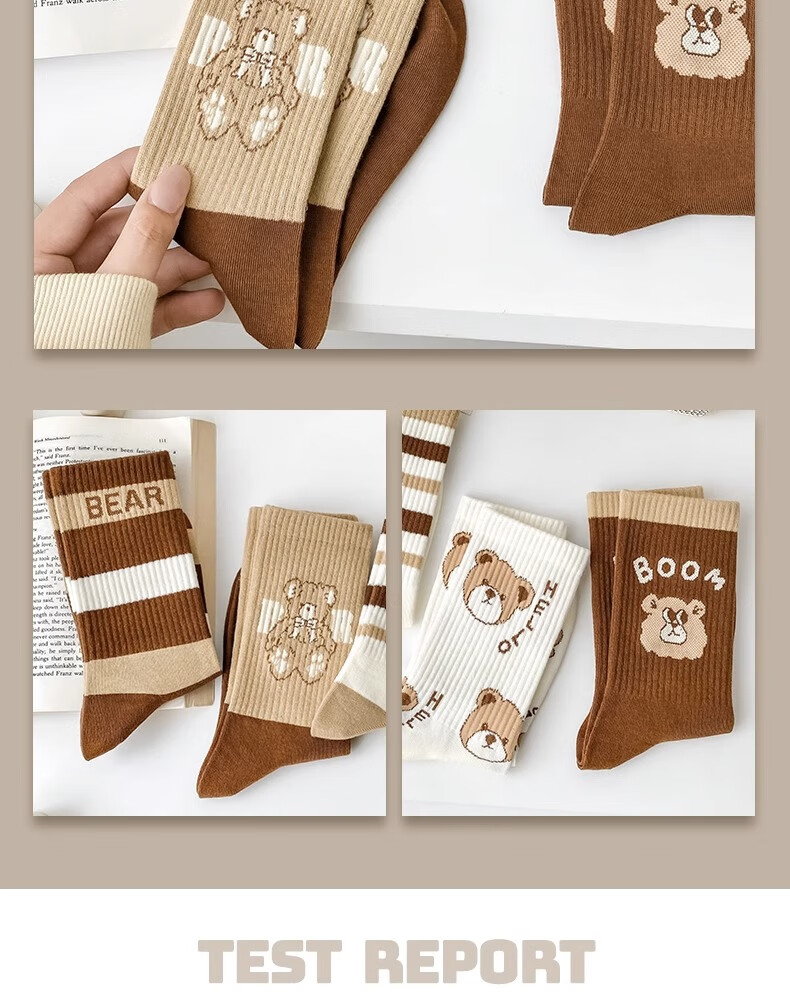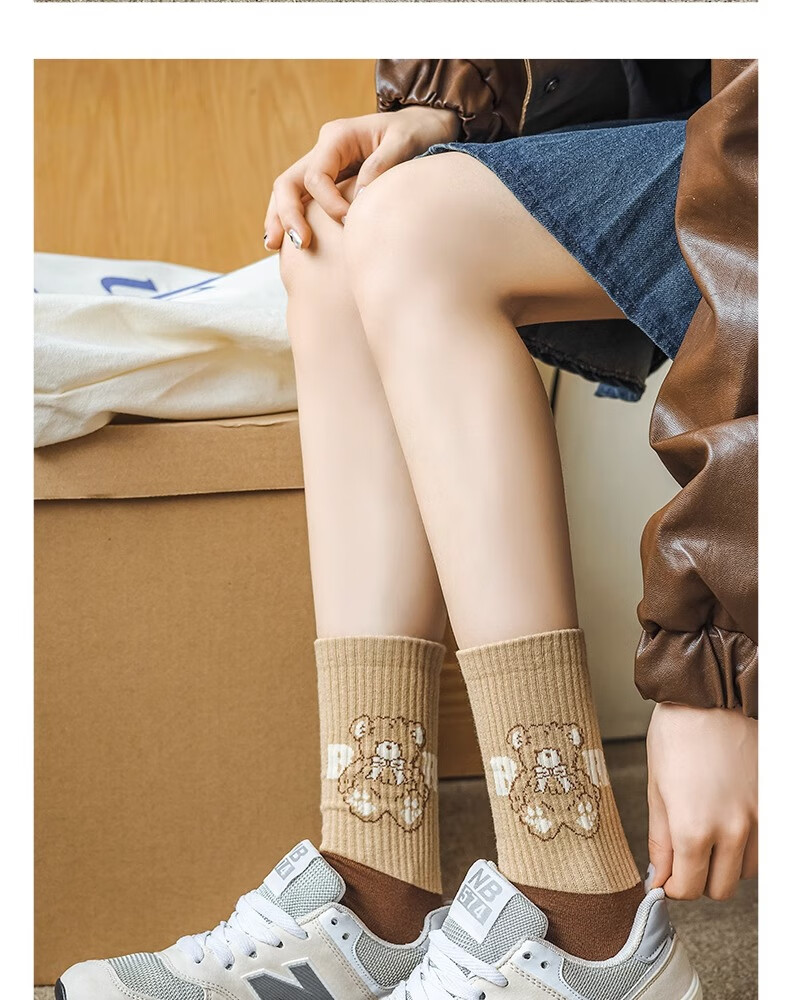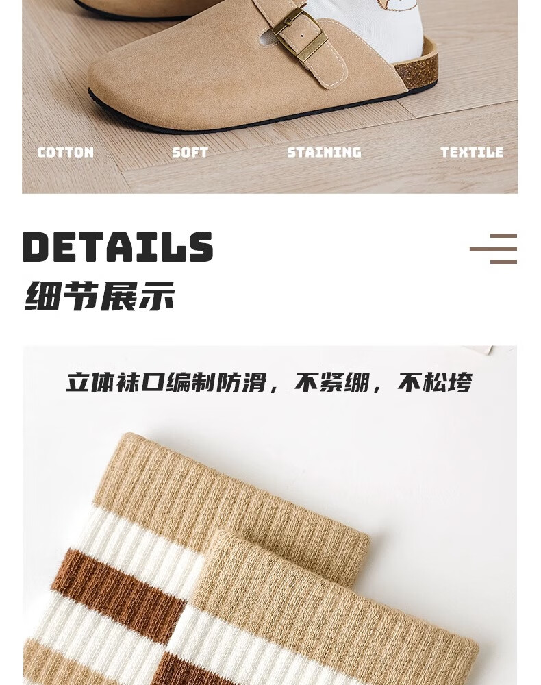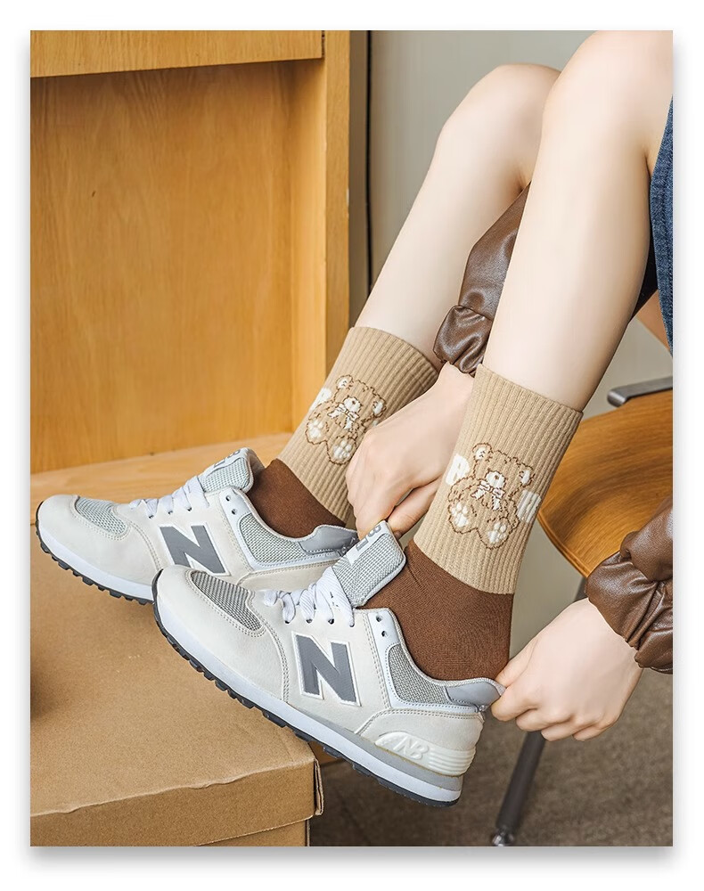 莎兰朵袜子女士纯棉春秋季中筒可爱日系咖色条纹高腰全棉长筒学生潮祙子 N1混色5双装 均码