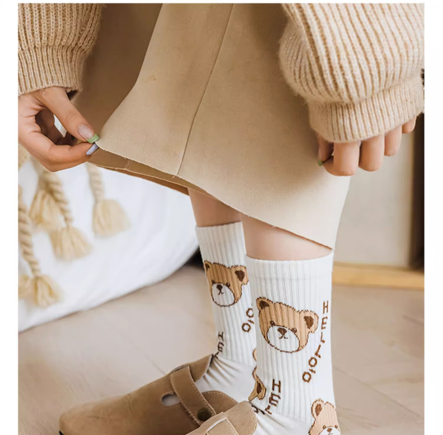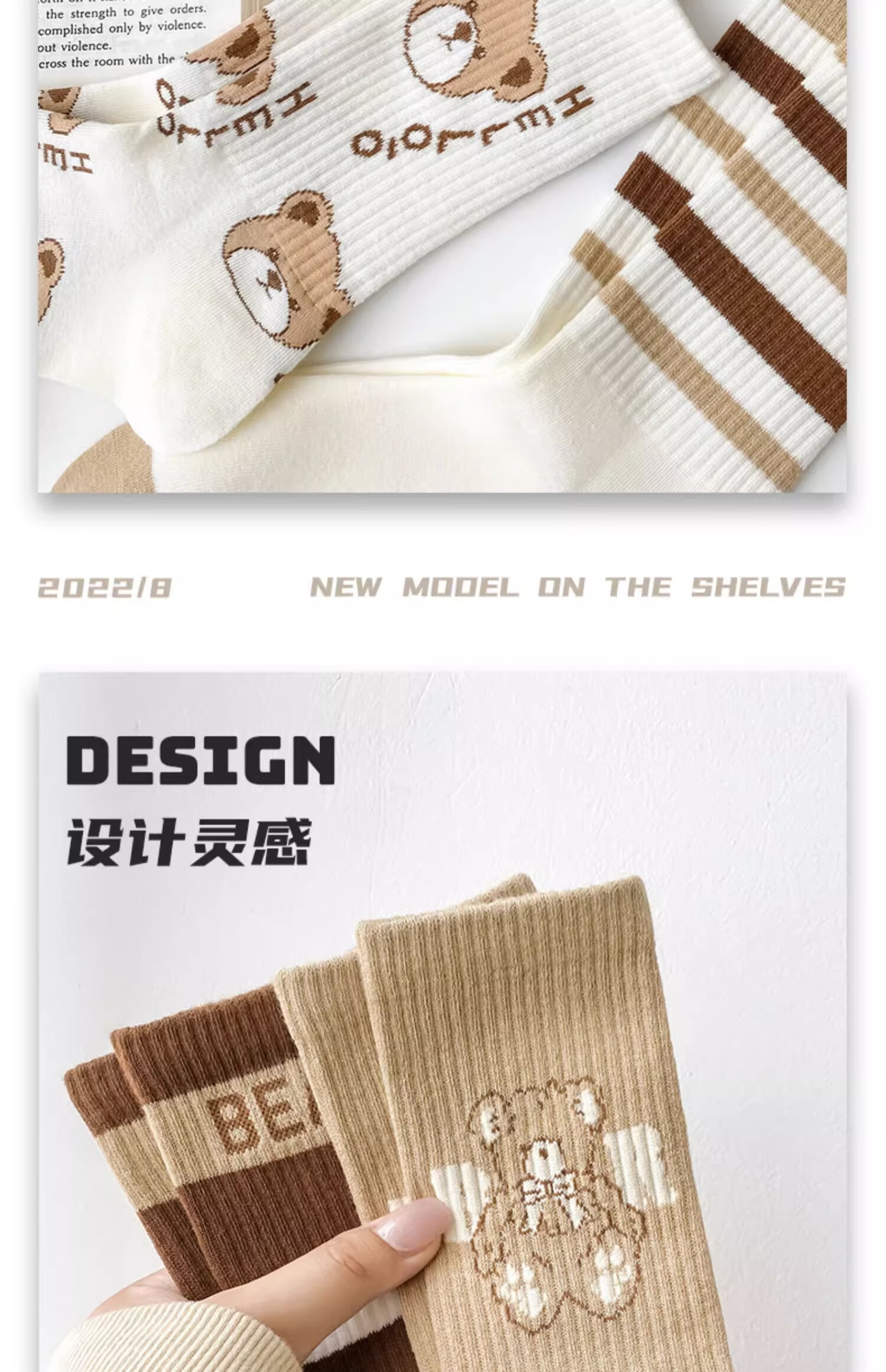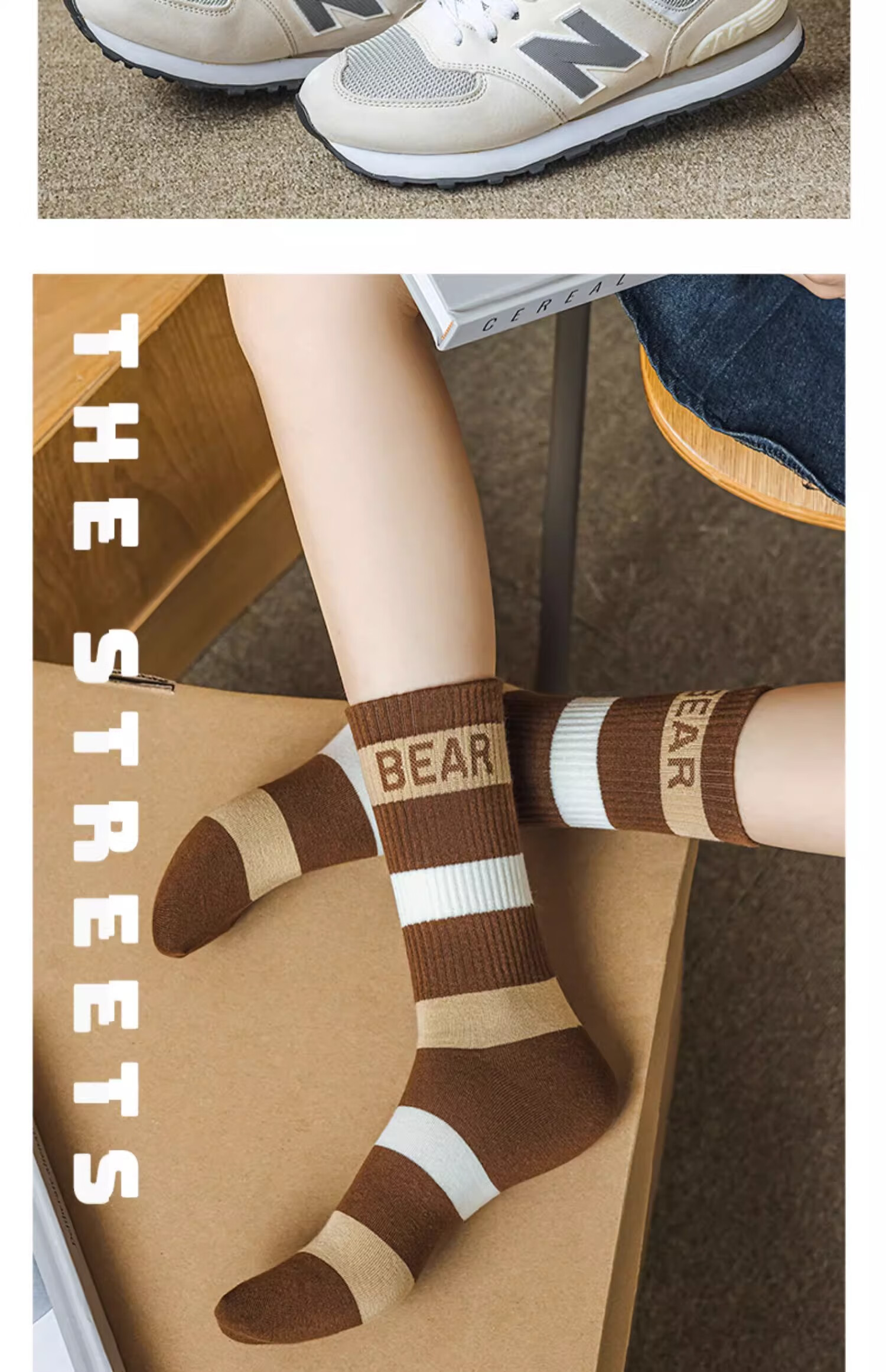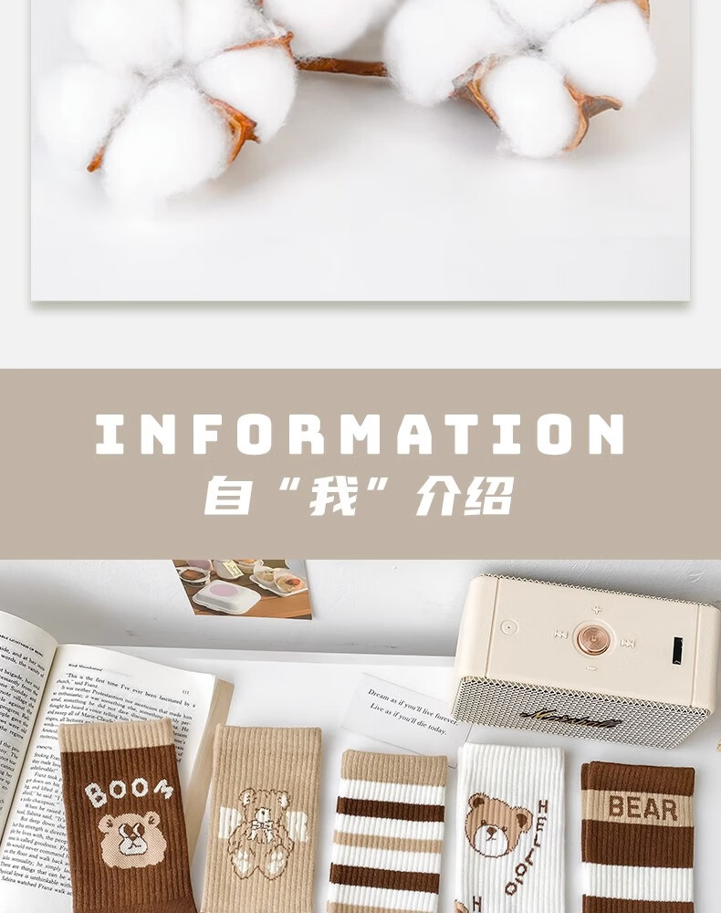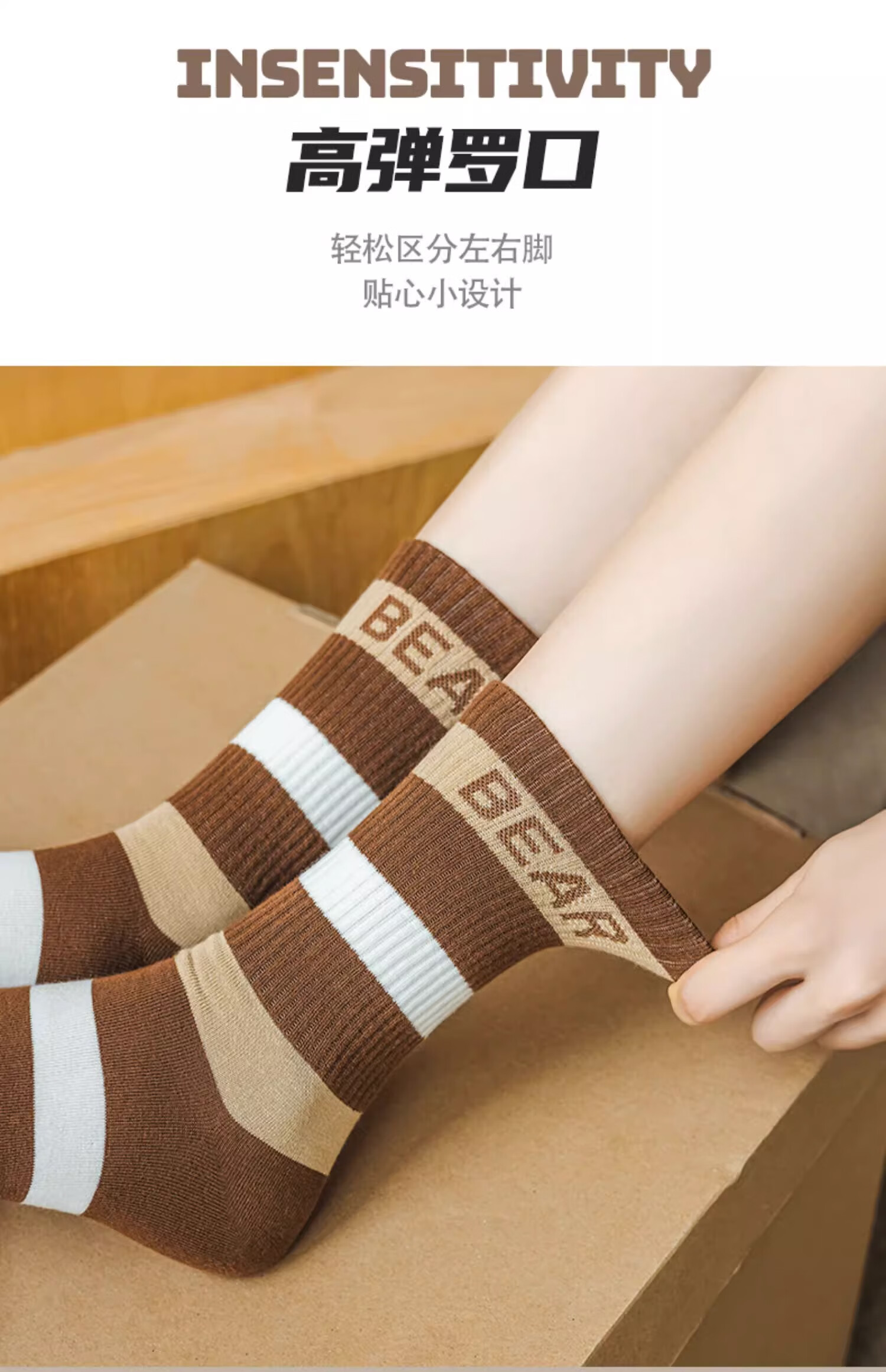 莎兰朵袜子女士纯棉春秋季中筒可爱日系咖色条纹高腰全棉长筒学生潮祙子 N1混色5双装 均码