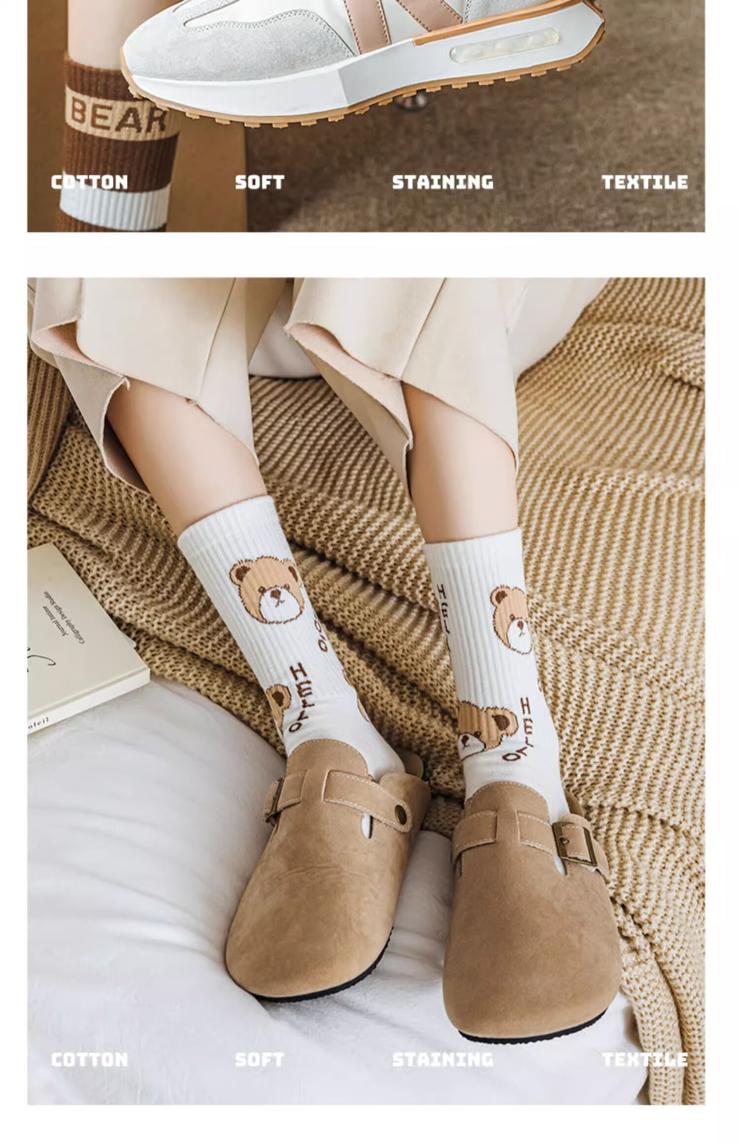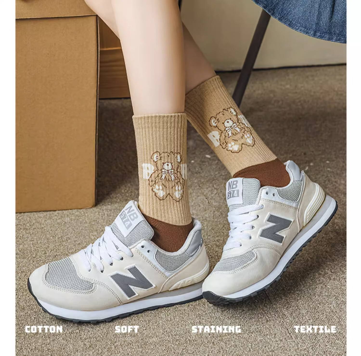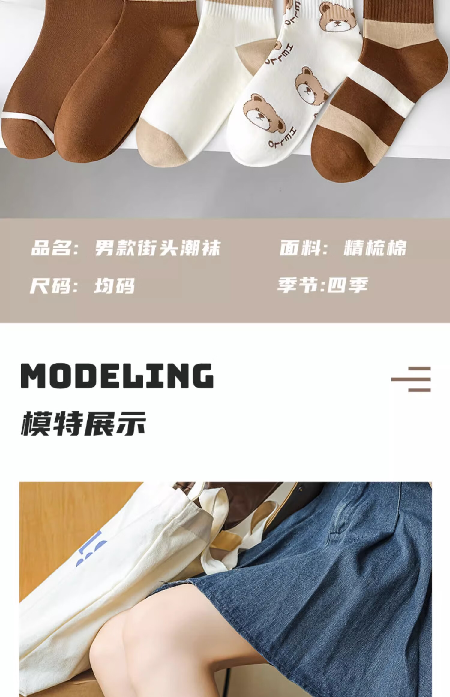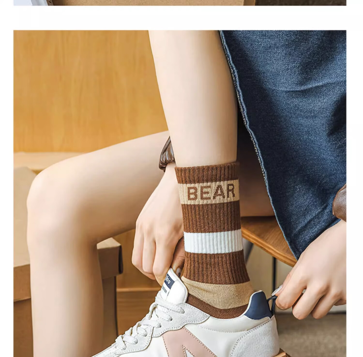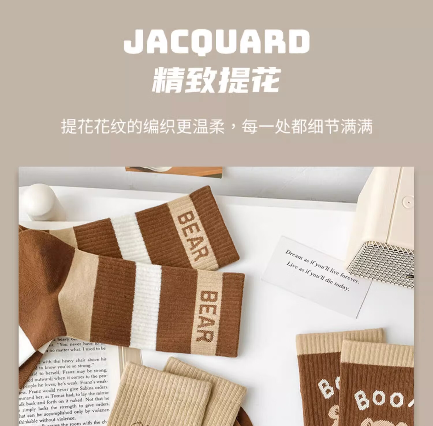 莎兰朵袜子女士纯棉春秋季中筒可爱日系咖色条纹高腰全棉长筒学生潮祙子 N1混色5双装 均码