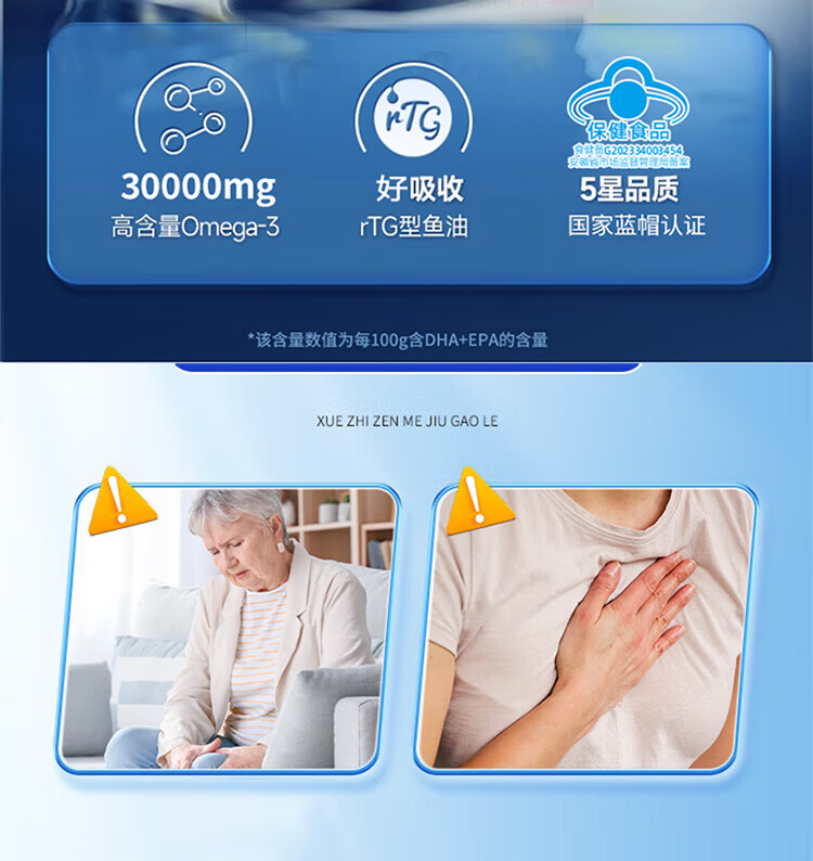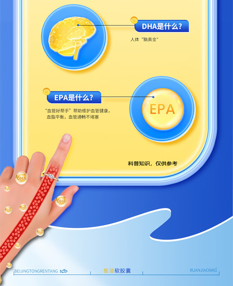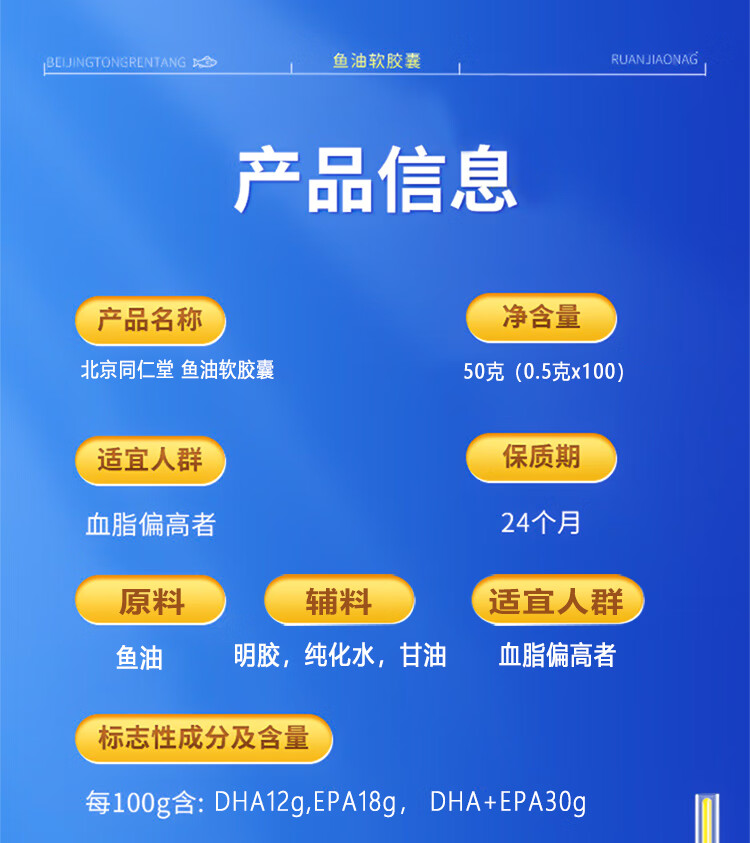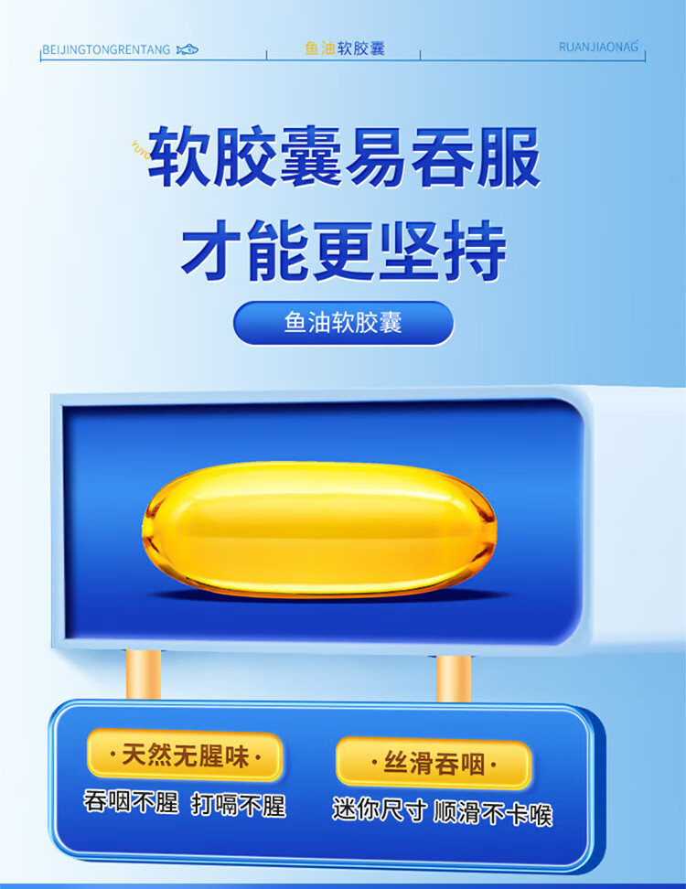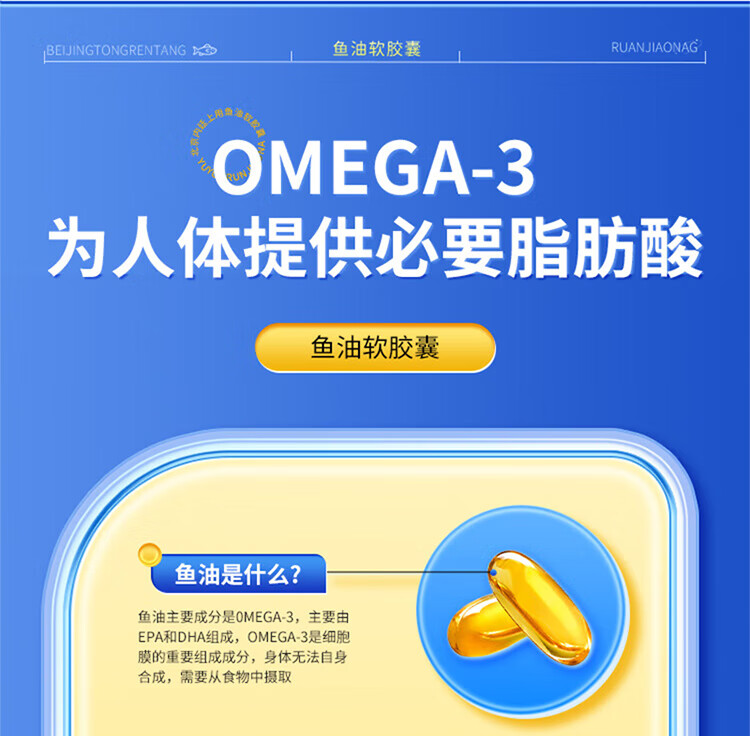 同仁堂北京朕皇 鱼油 蓝帽认证 维持血脂健康 适于血脂偏高者鱼油DHA 100粒*3瓶