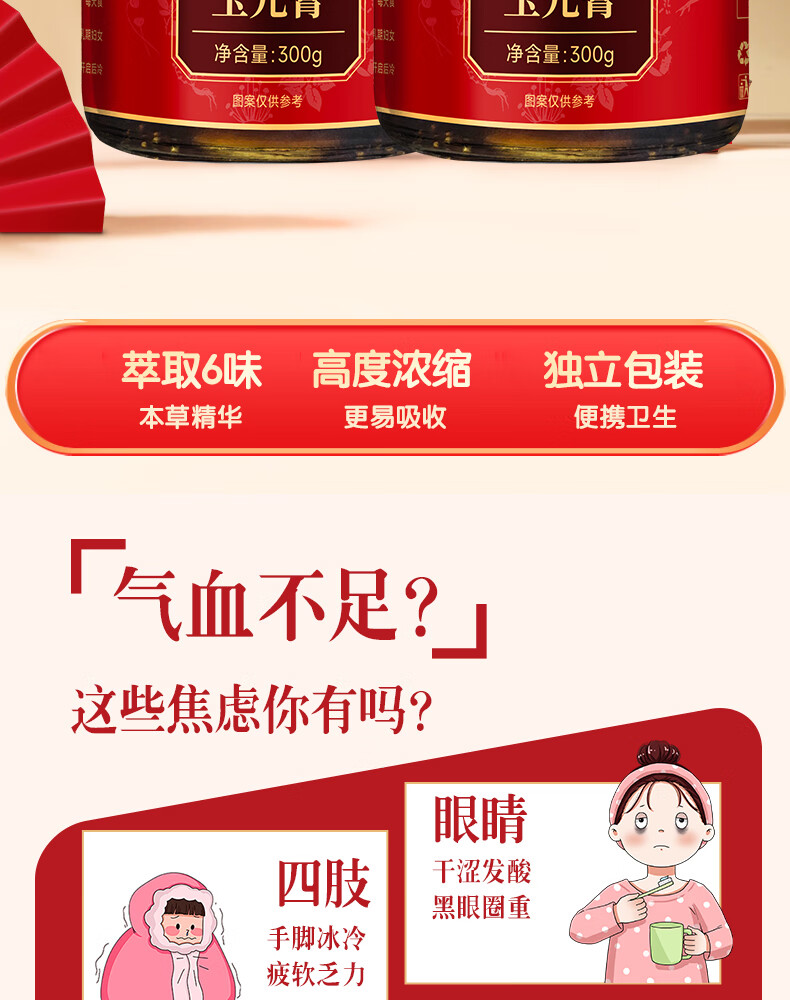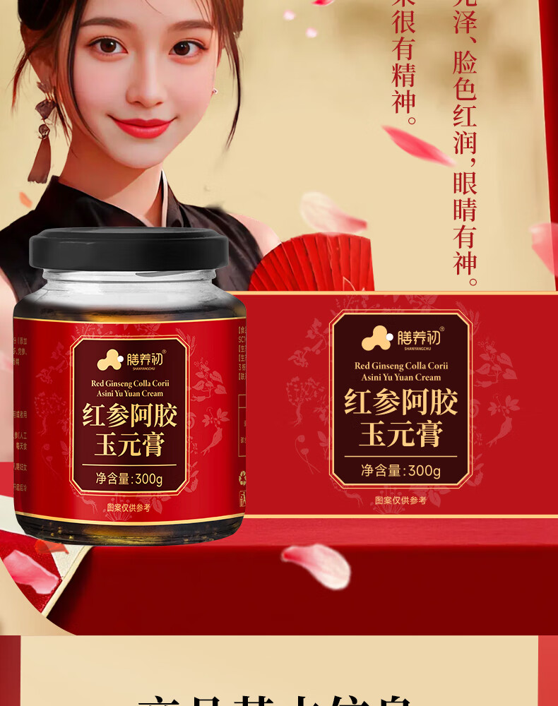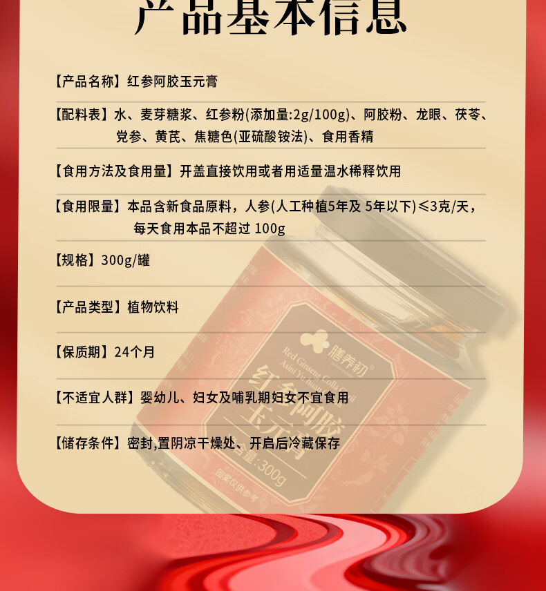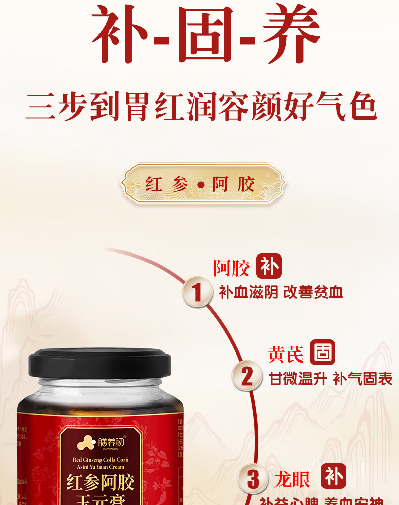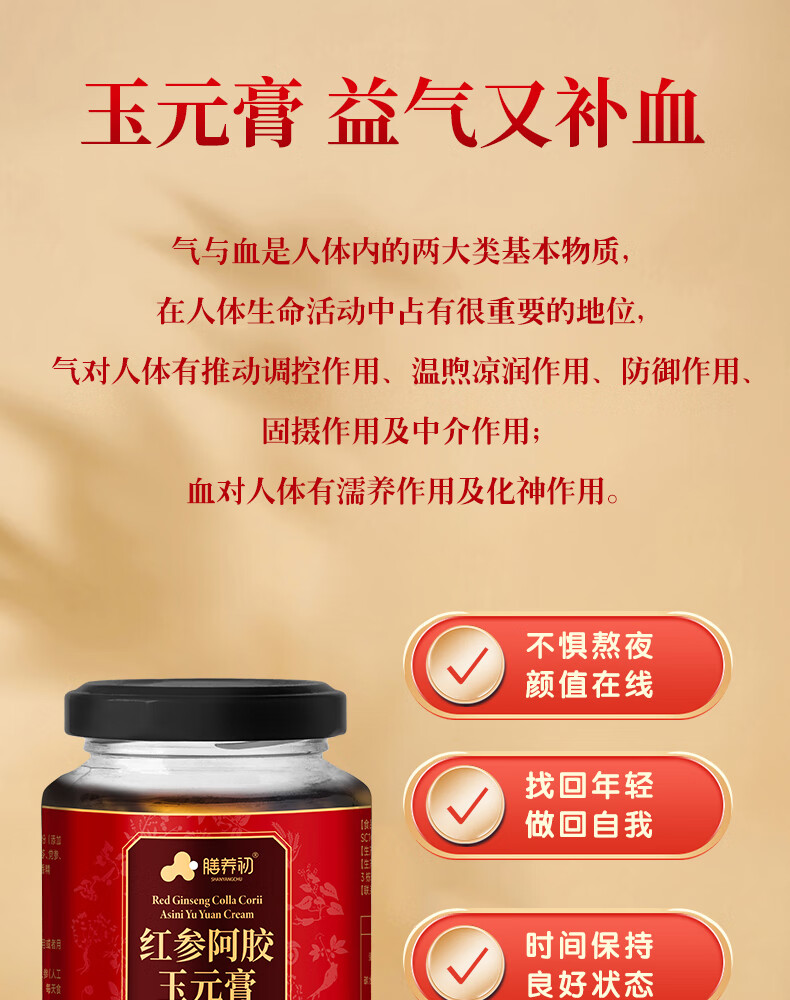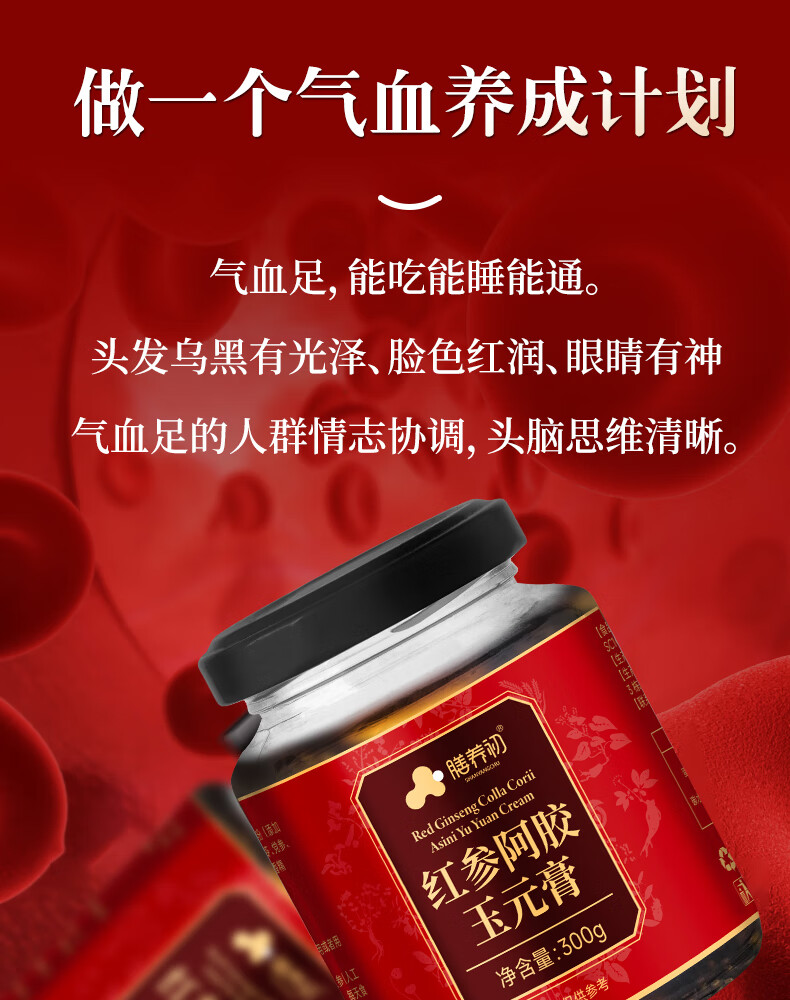 膳养初阿胶补气血提高免疫力睡眠女性滋补品益气养血气血不足红参玉元膏 【1瓶装】 300g*1瓶