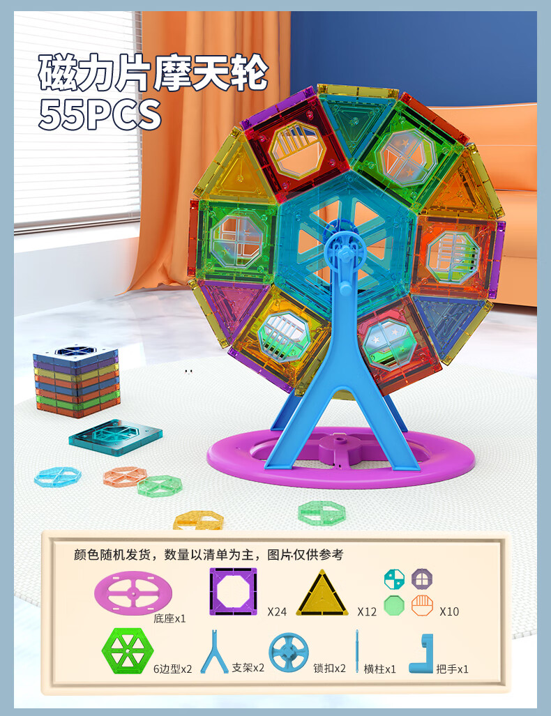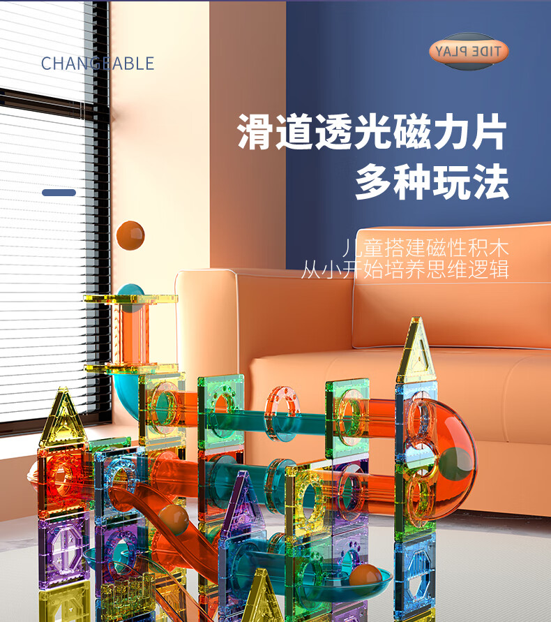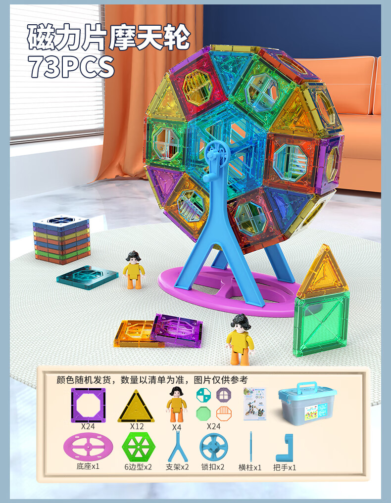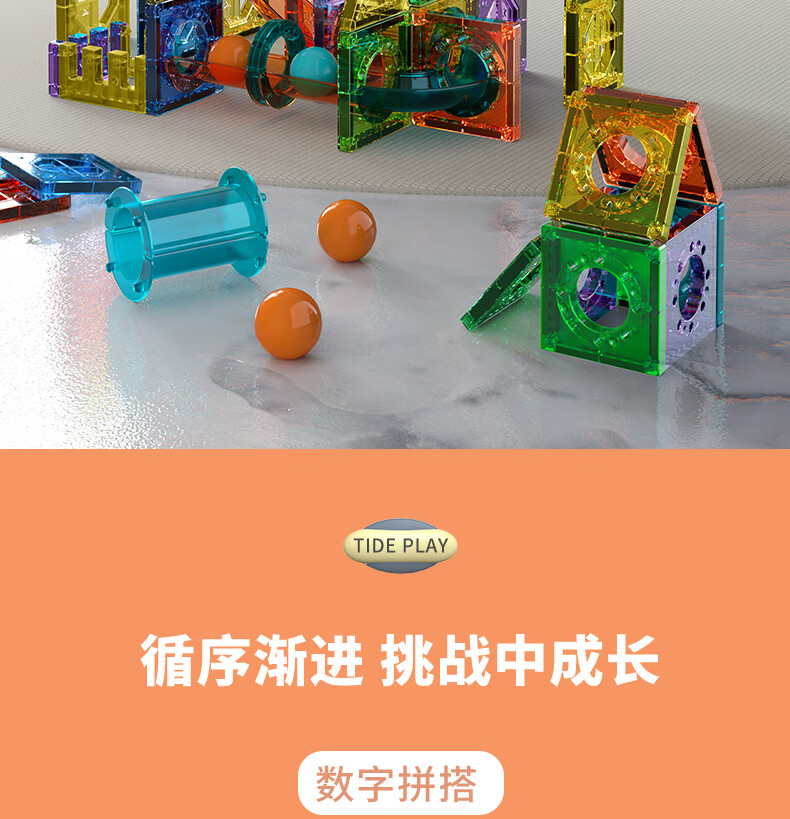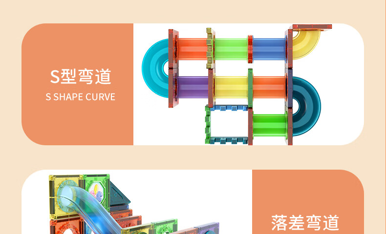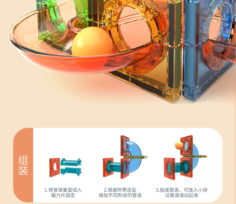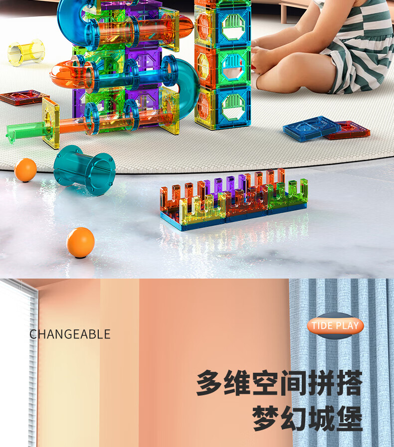新奇源磁力片儿童益智玩具男孩磁力积木拼插磁力棒玩具3-6岁生日礼物 5.5cm磁力片滚珠管道105件套