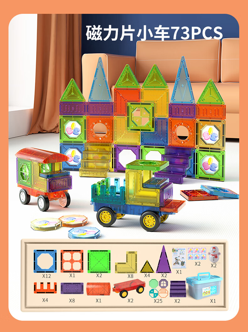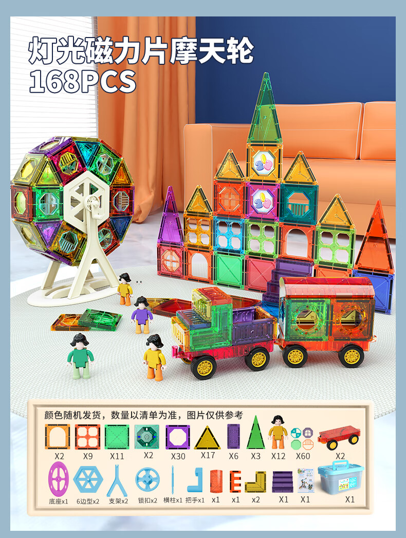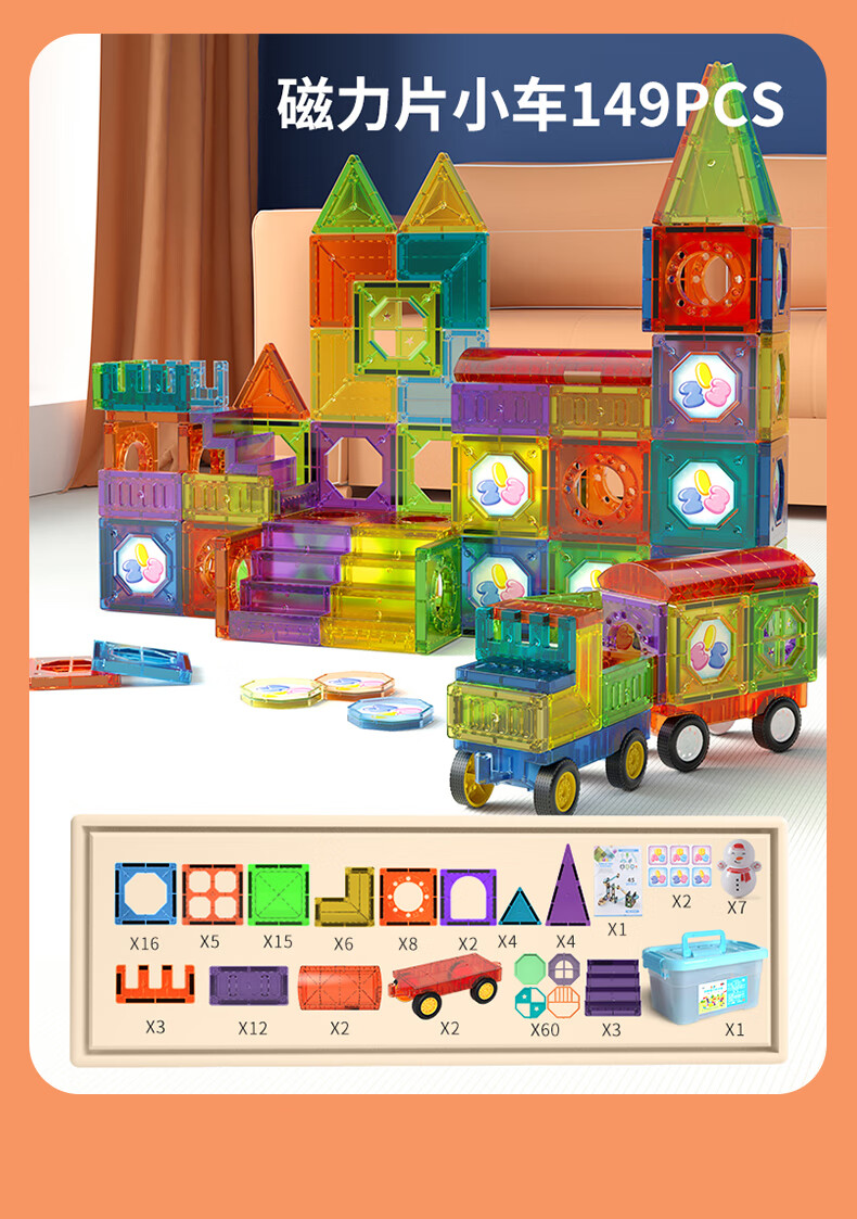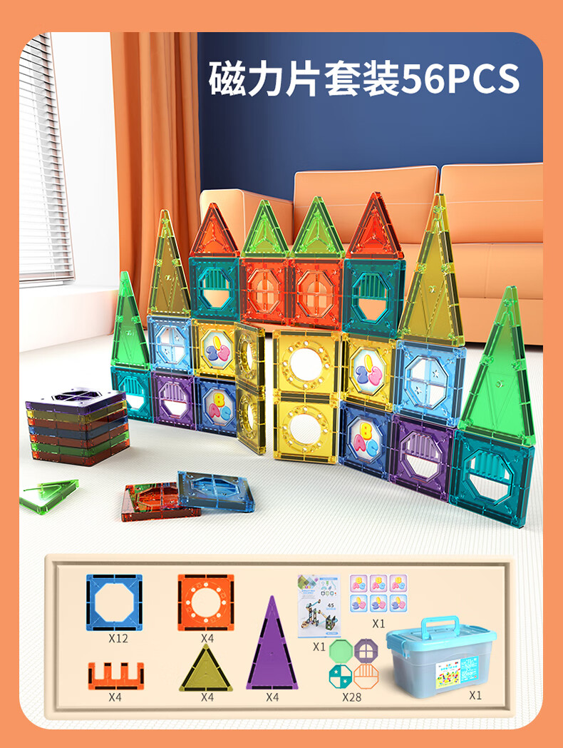 mobee儿童磁力片3-6岁男女孩生日礼物7-14岁磁铁拼装早教益智玩具马年 城市轨道星光彩窗磁力片-130套装【赠收纳袋】 节日礼物 强劲磁吸 大面积防误吞