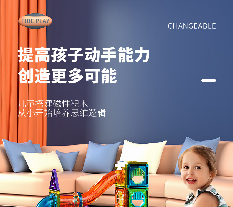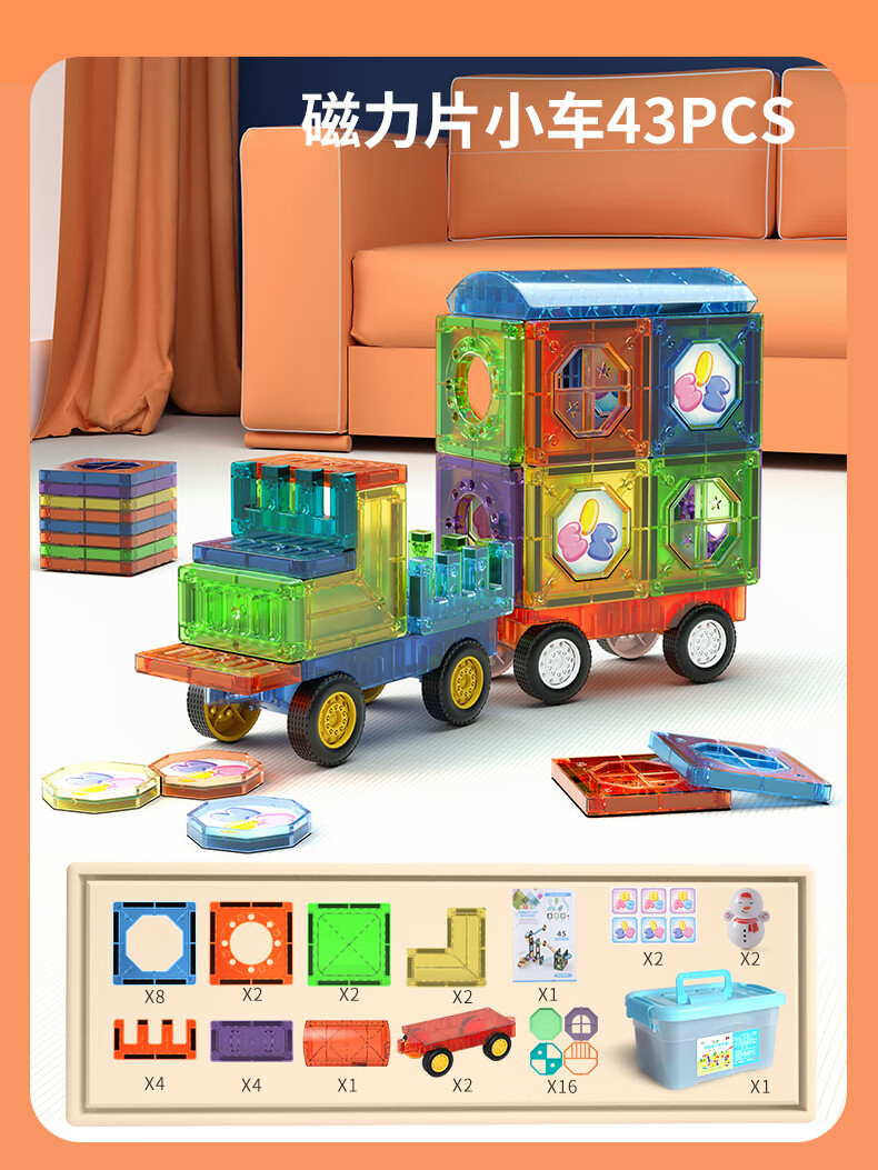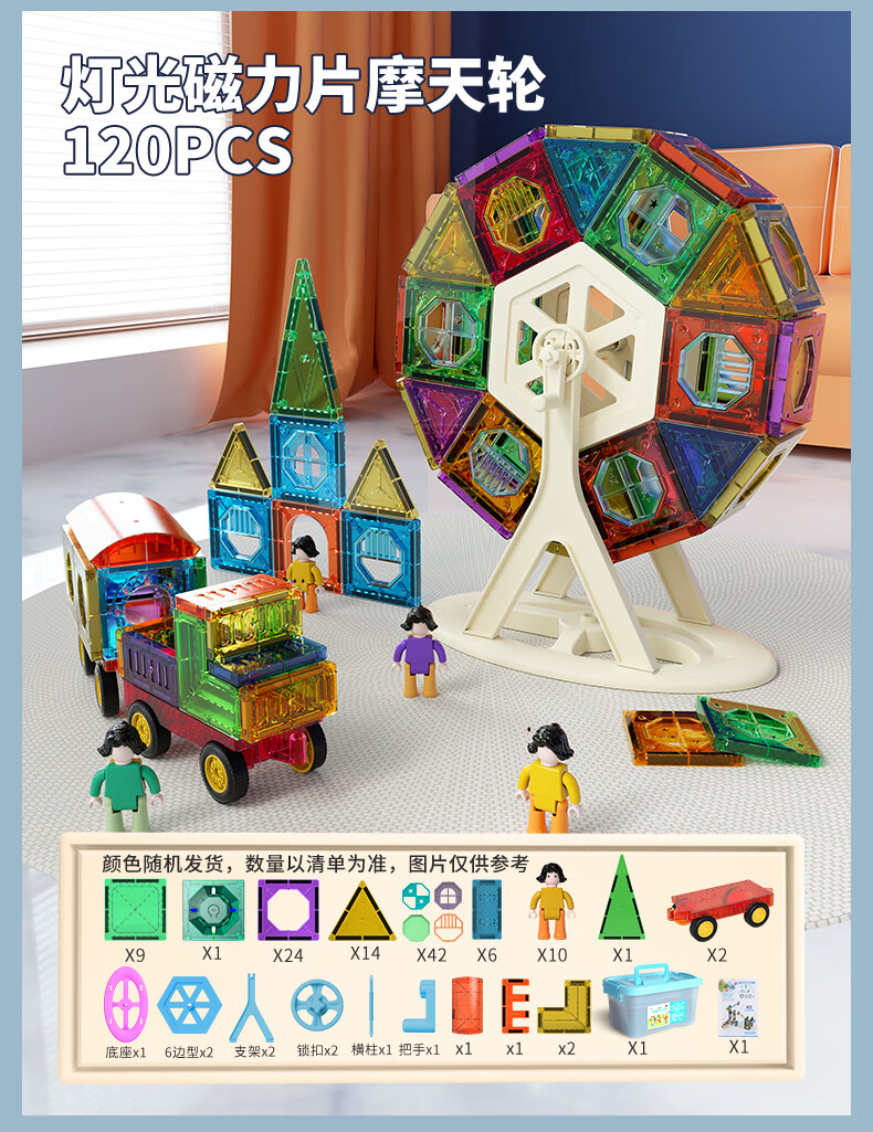 mobee儿童磁力片3-6岁男女孩生日礼物7-14岁磁铁拼装早教益智玩具马年 常规色管道磁力片-120套装【赠收纳袋】 节日礼物 强劲磁吸 大面积防误吞