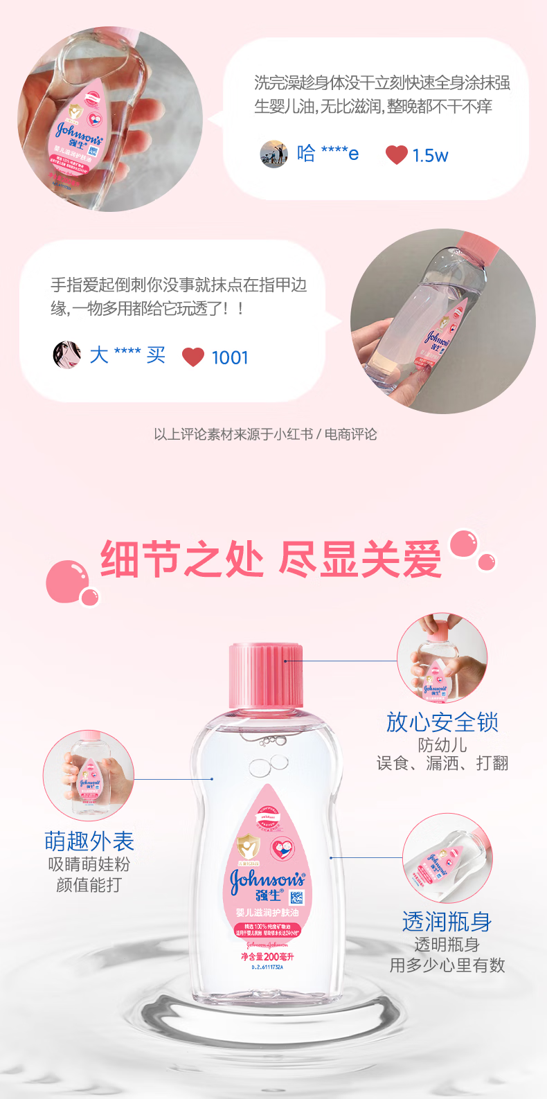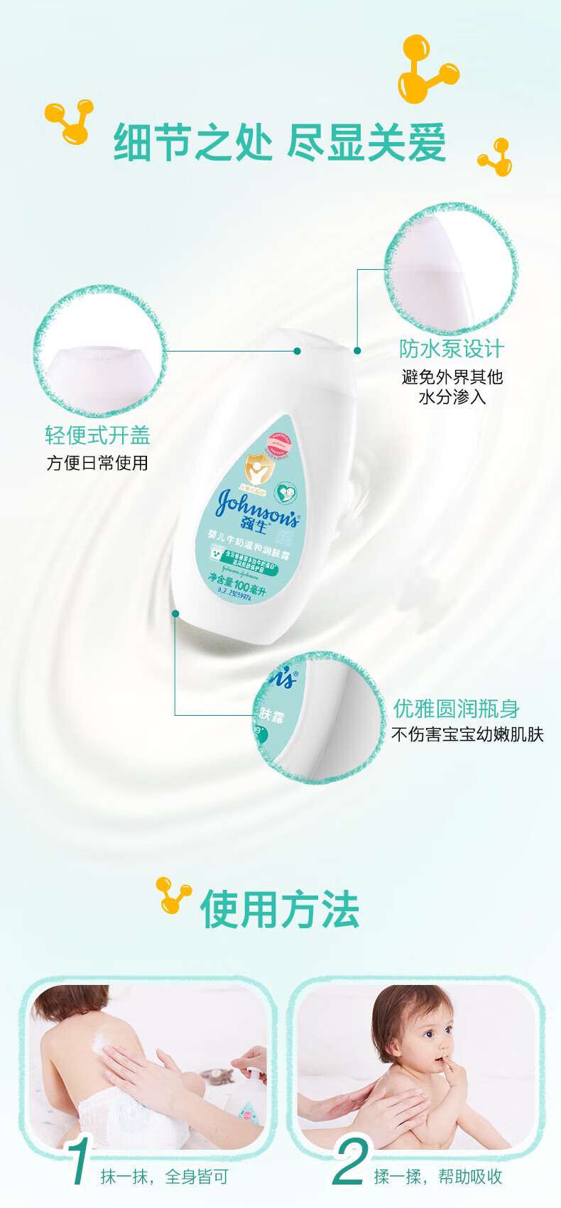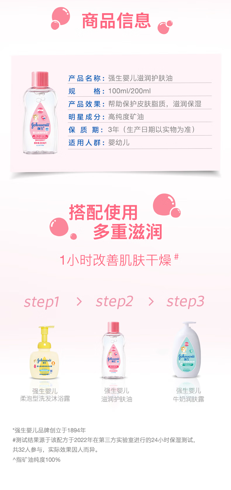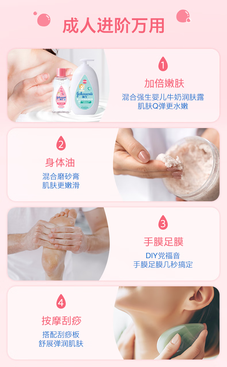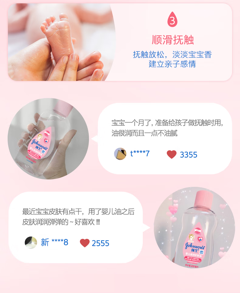强生抚触油婴儿+润肤露新生宝宝儿童按摩油 可去头垢清爽保湿润肤油 润肤油200ml+润肤露200ml