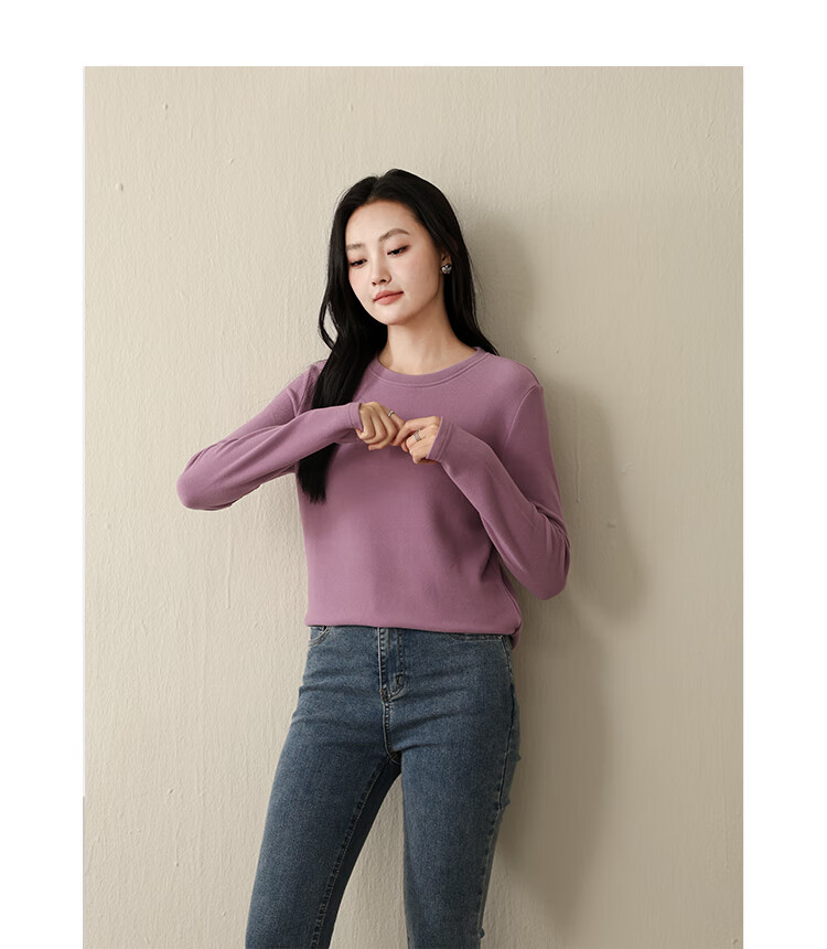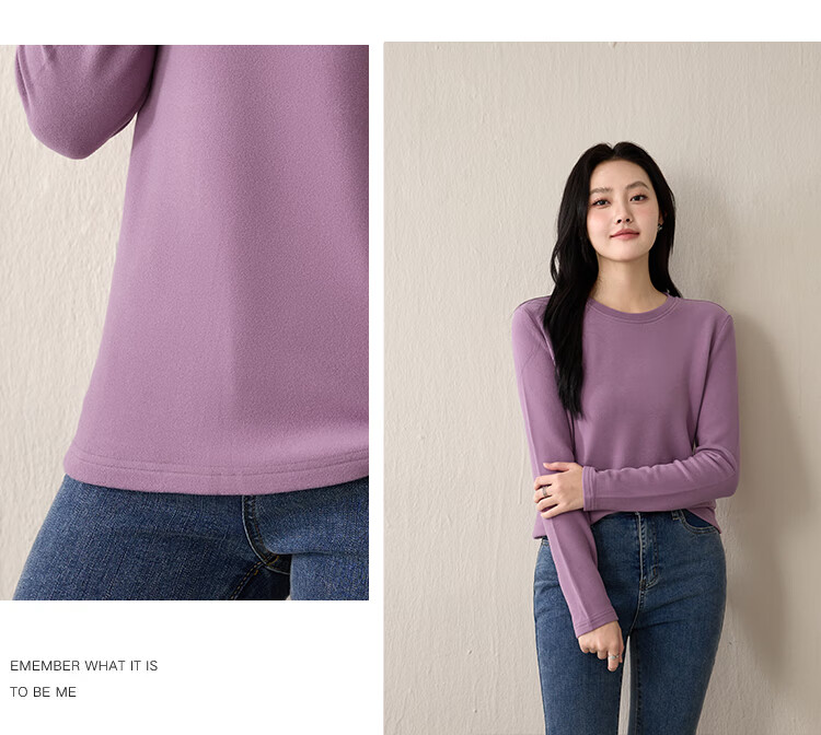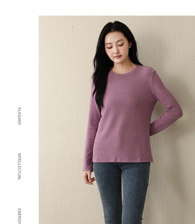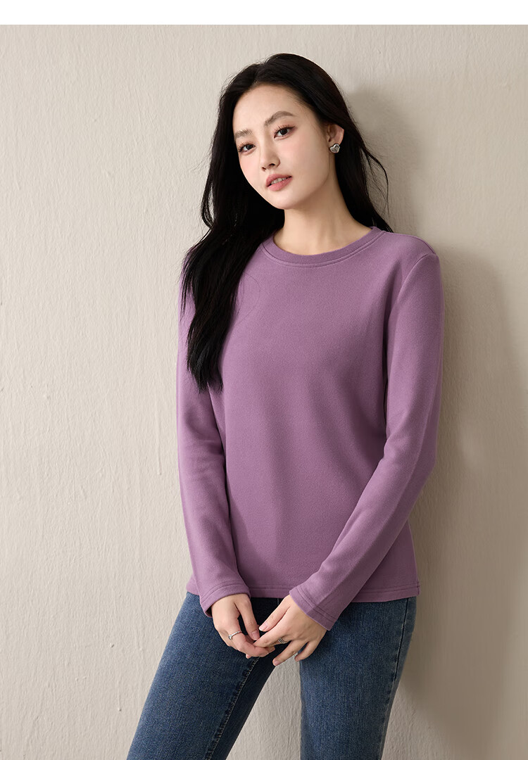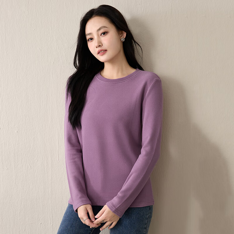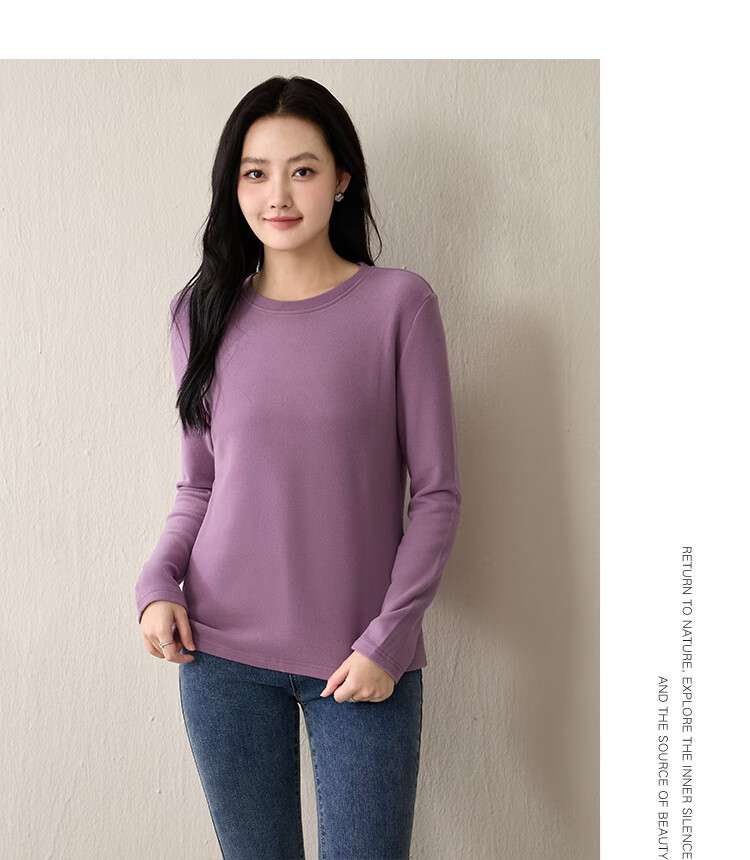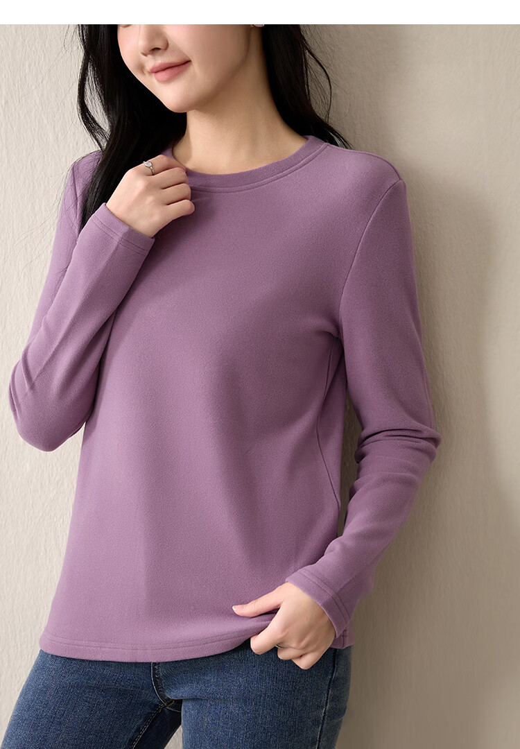 子牧棉麻秋冬装 女韩版双面磨毛德绒圆领长袖打底衫加厚保暖上衣8699 香芋色圆领德绒款 加厚 2XL (建议130-145斤)