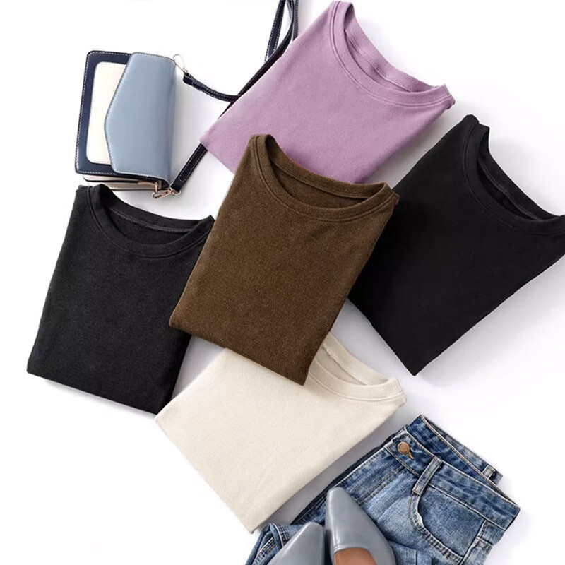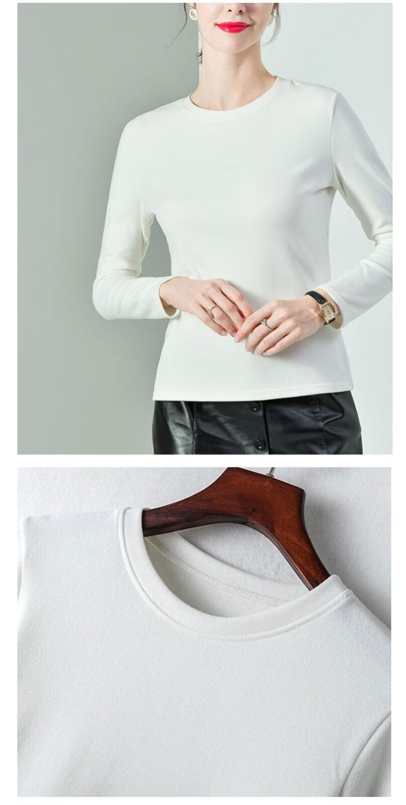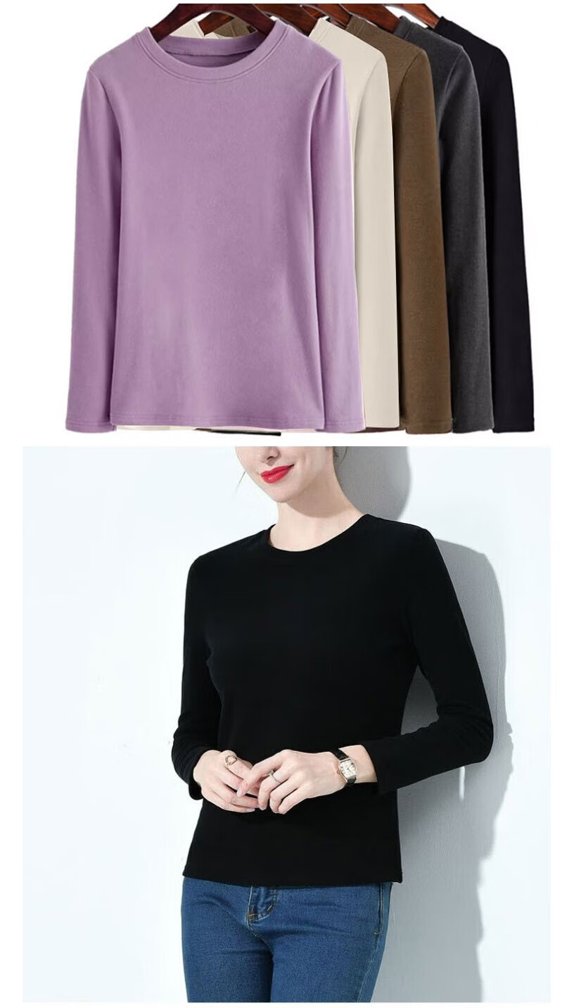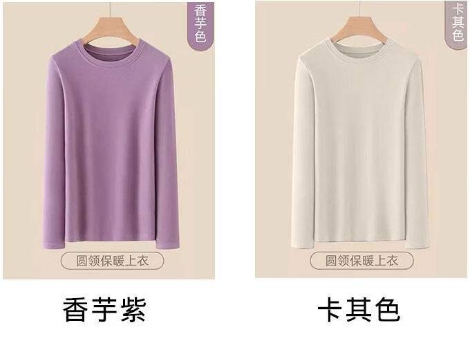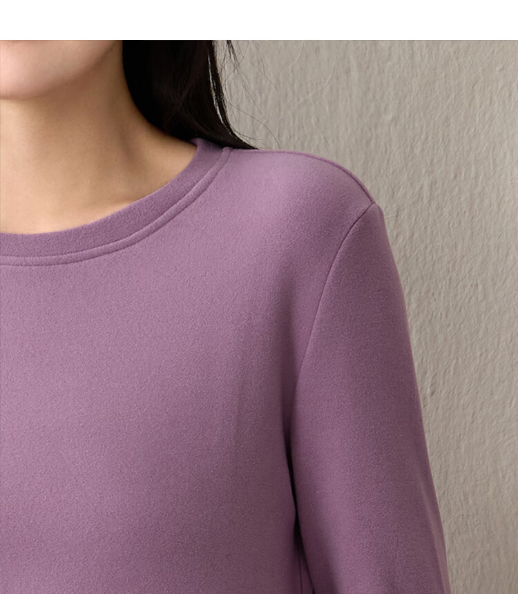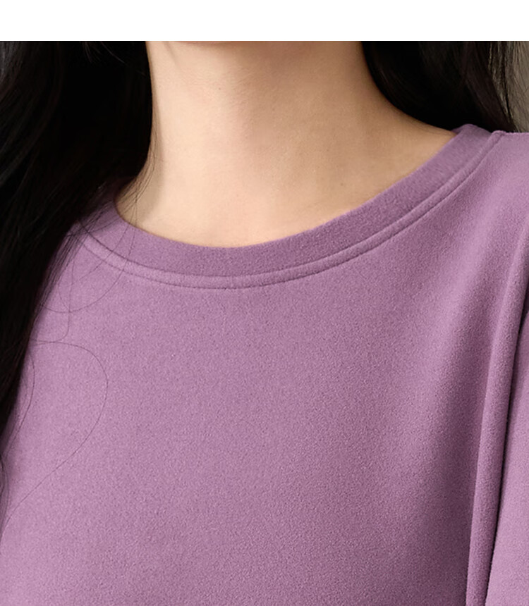 子牧棉麻秋冬装 女韩版双面磨毛德绒圆领长袖打底衫加厚保暖上衣8699 香芋色圆领德绒款 加厚 2XL (建议130-145斤)