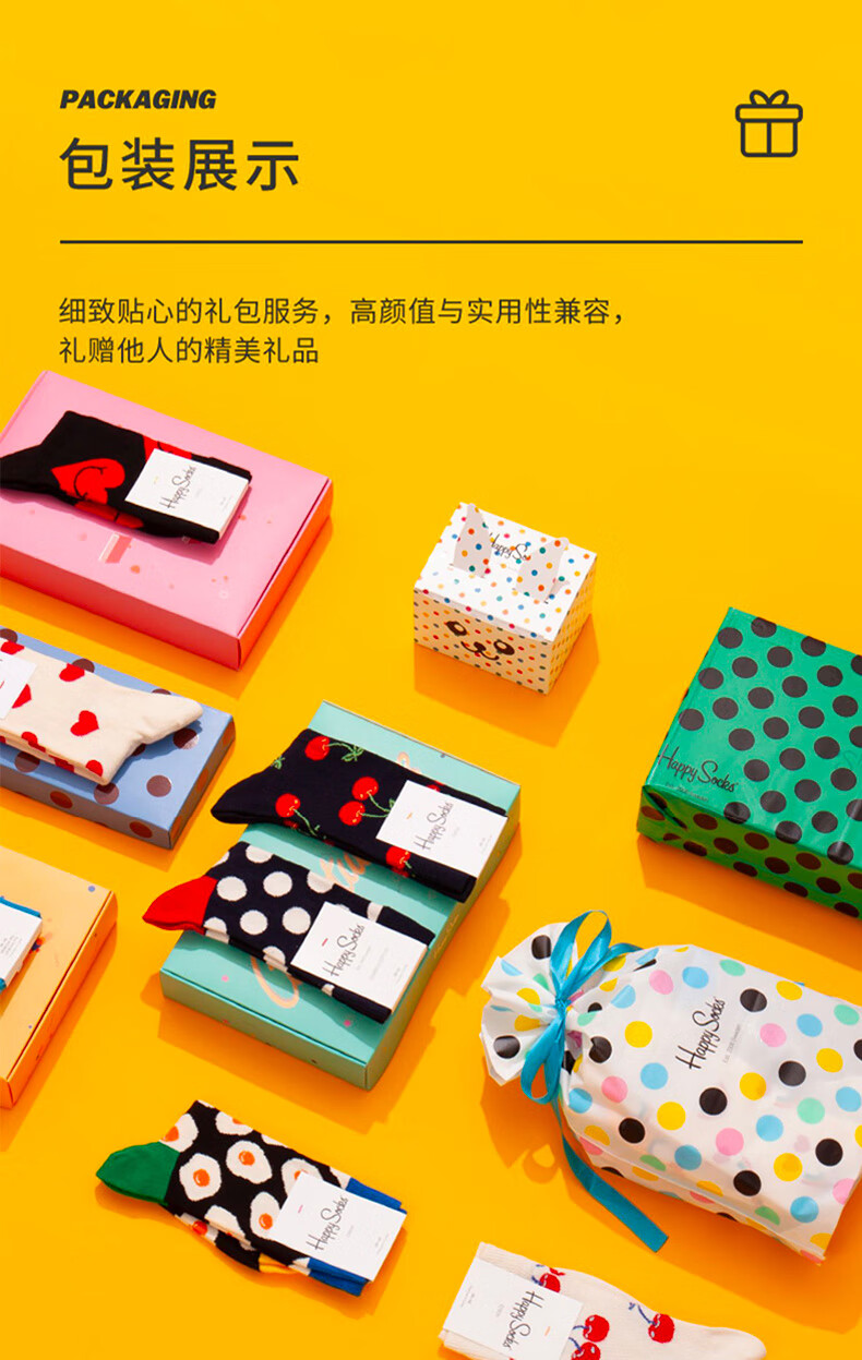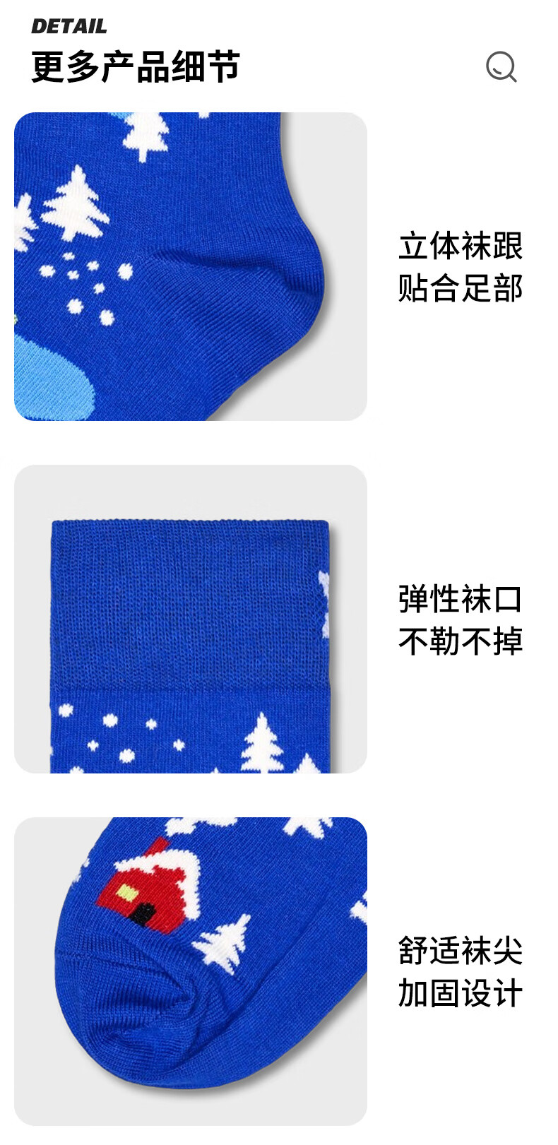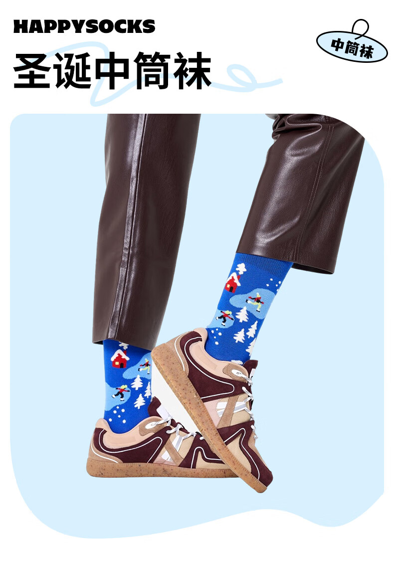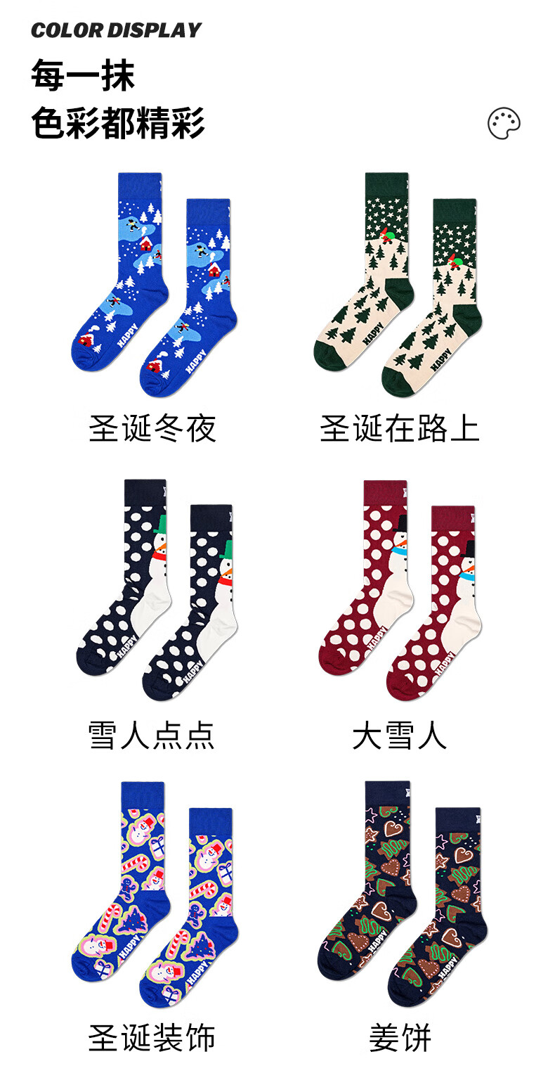Happy Socks【新品】Happy Socks袜子女男士袜秋冬款多巴胺圣诞雪人袜中筒袜 雪人点点 1双 L 41-46