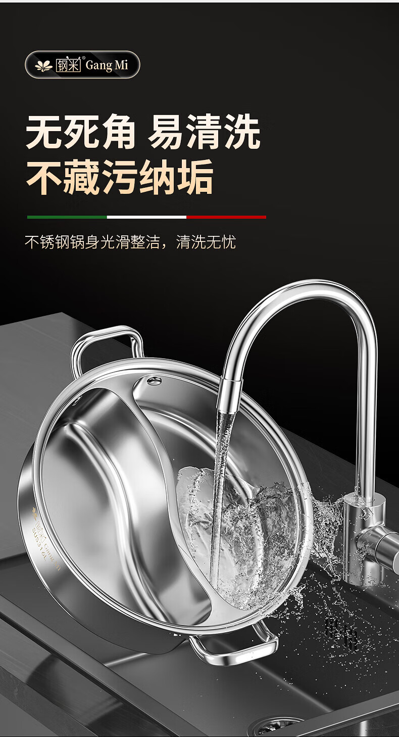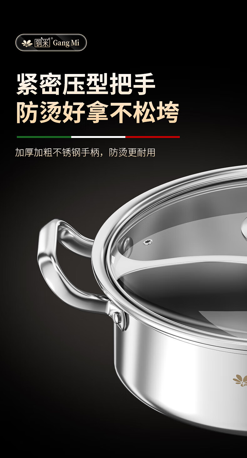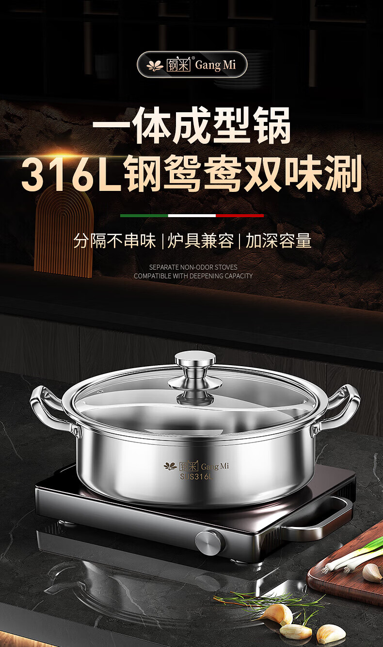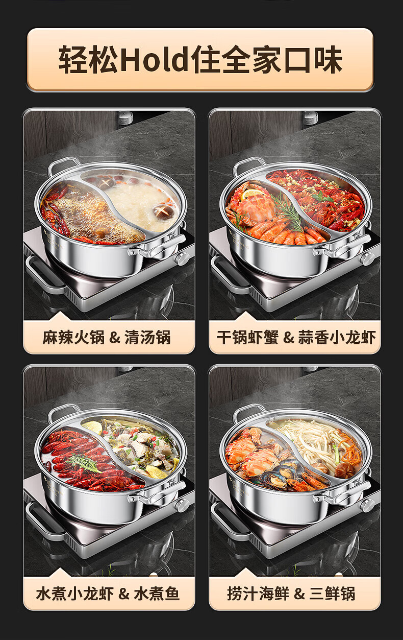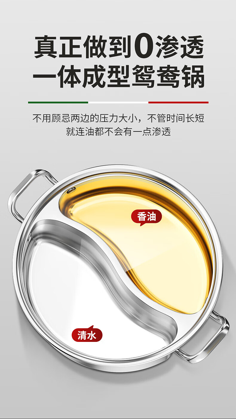钢米304不锈钢鸳鸯锅加厚316火锅家用一体锅涮火锅锅子电磁炉大容量商 [304不锈钢]一体无焊接鸳鸯 28cm
