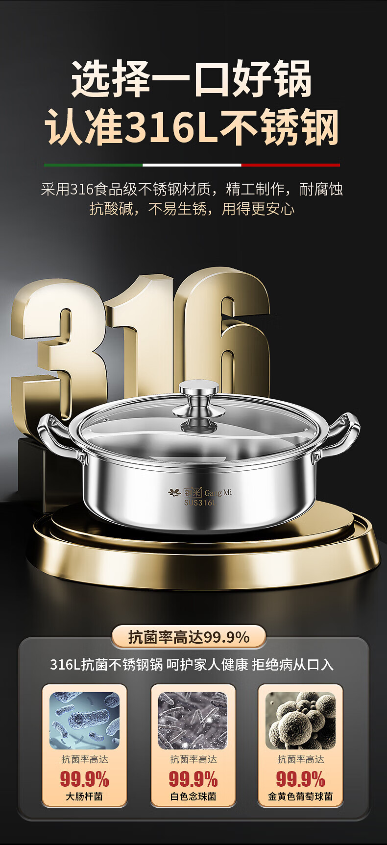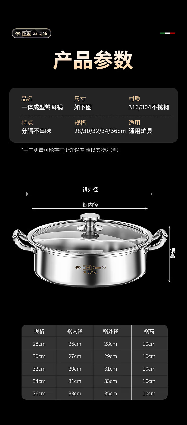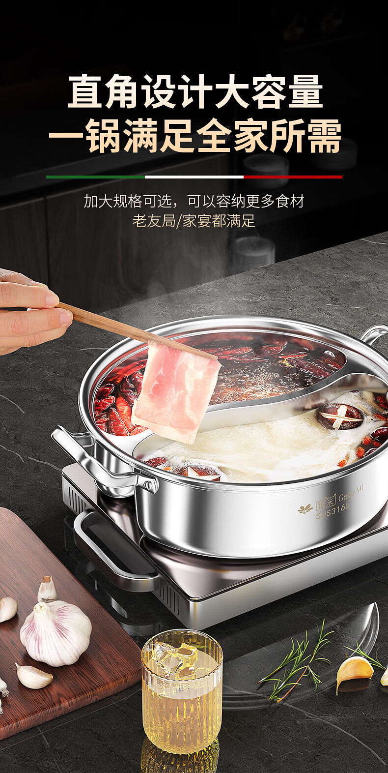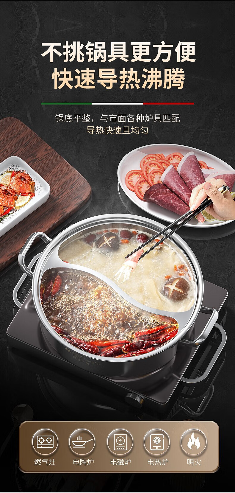钢米304不锈钢鸳鸯锅加厚316火锅家用一体锅涮火锅锅子电磁炉大容量商 [304不锈钢]一体无焊接鸳鸯 28cm