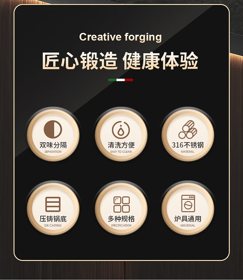 双立人(ZWILLING)德国不锈钢鸳鸯火锅盆家用宽边锤纹耳涮锅炉具 本色锤纹耳清汤锅 金色锤纹耳鸳鸯锅 40cm