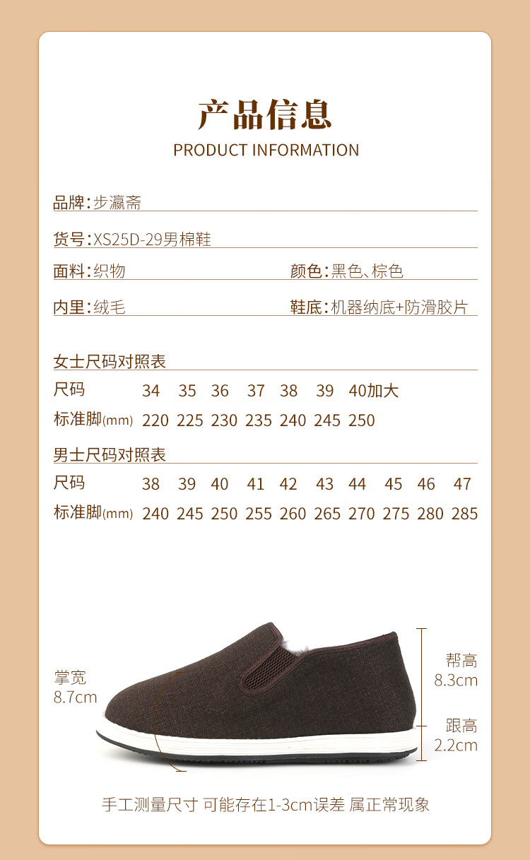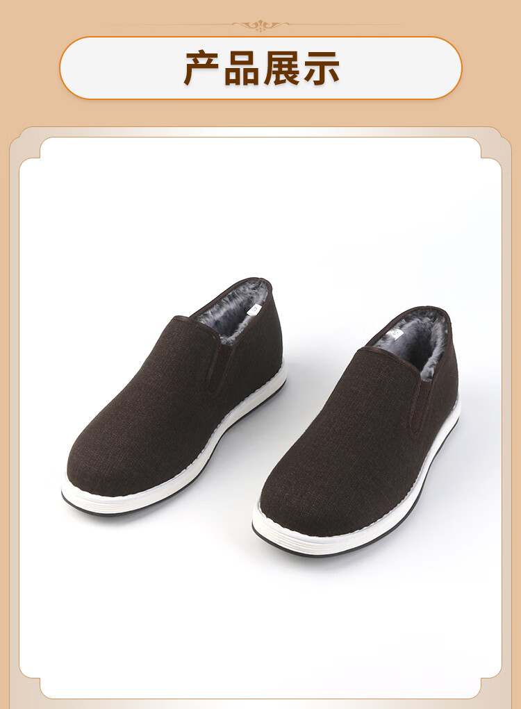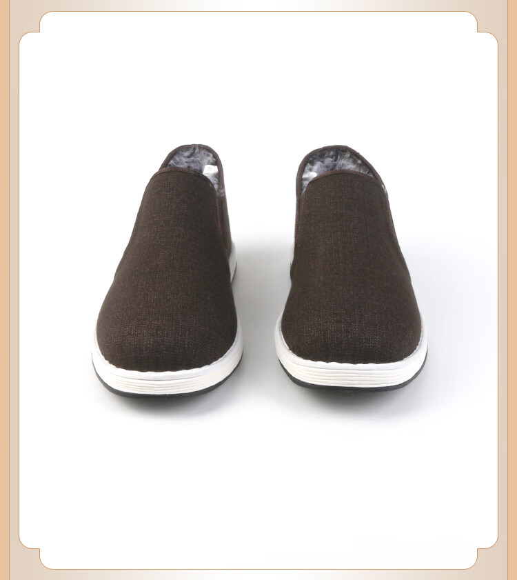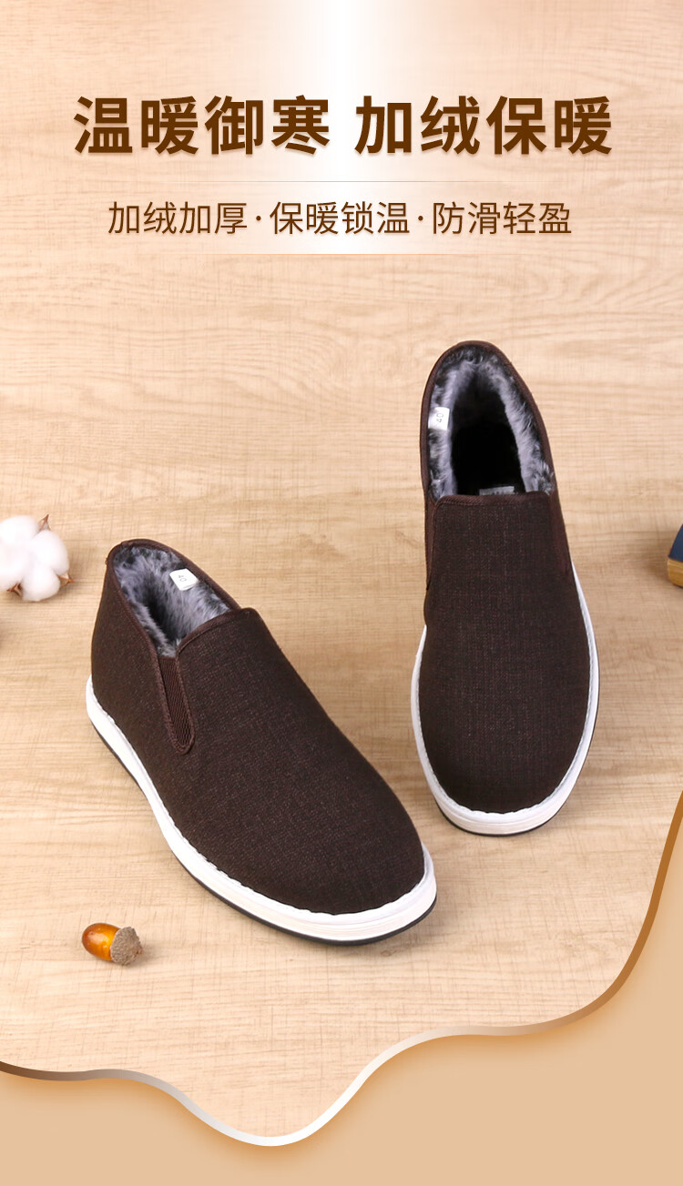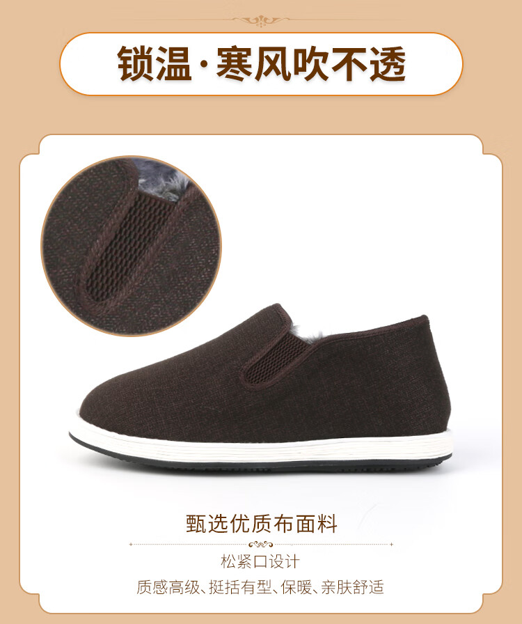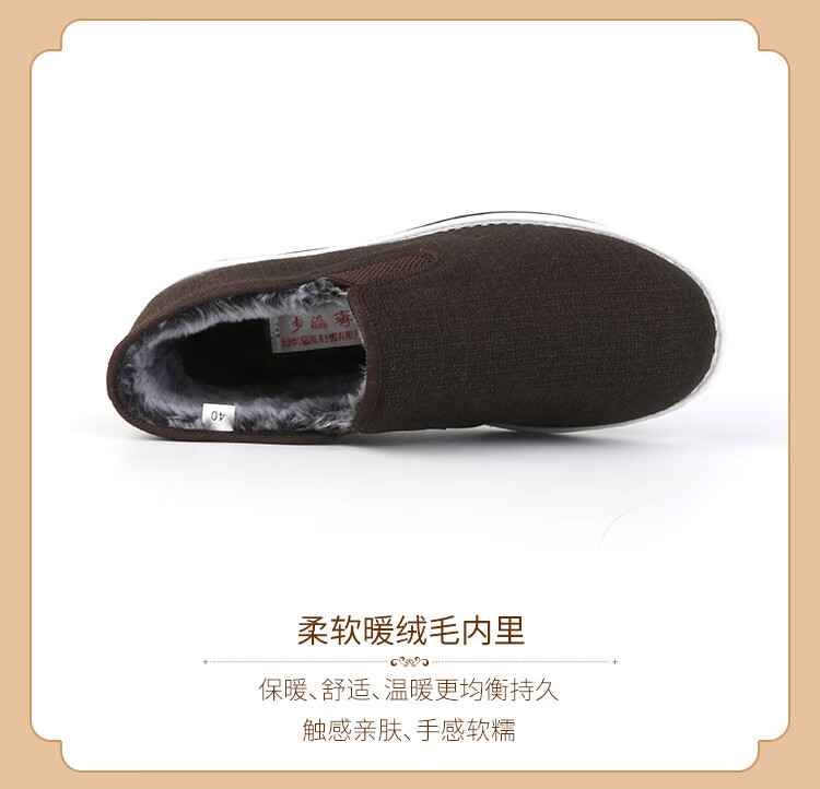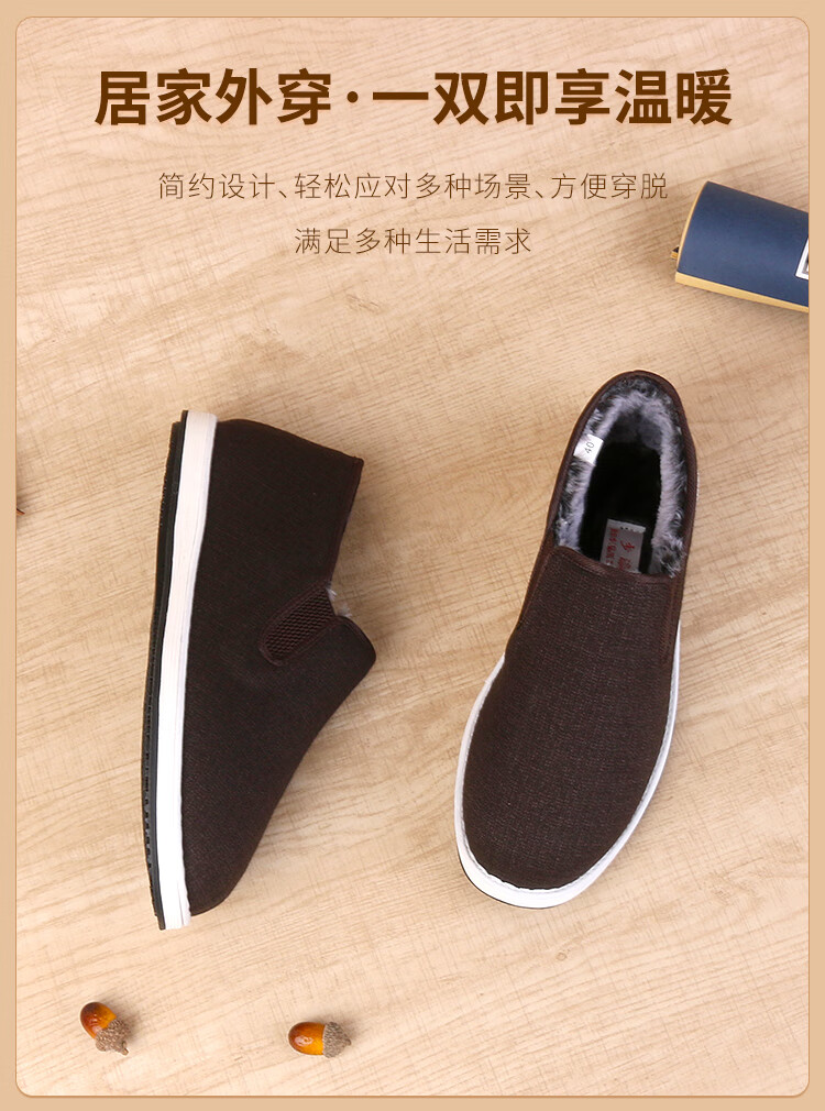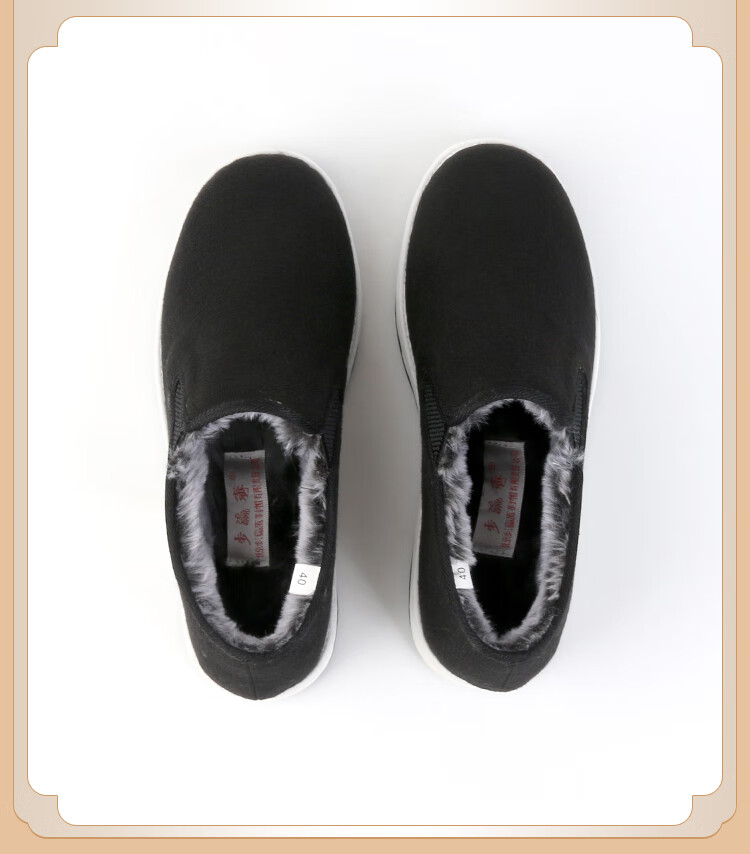 步瀛斋冬季加绒保暖棉鞋男千层底老北京布鞋加厚防滑一脚蹬经典款 黑色 42