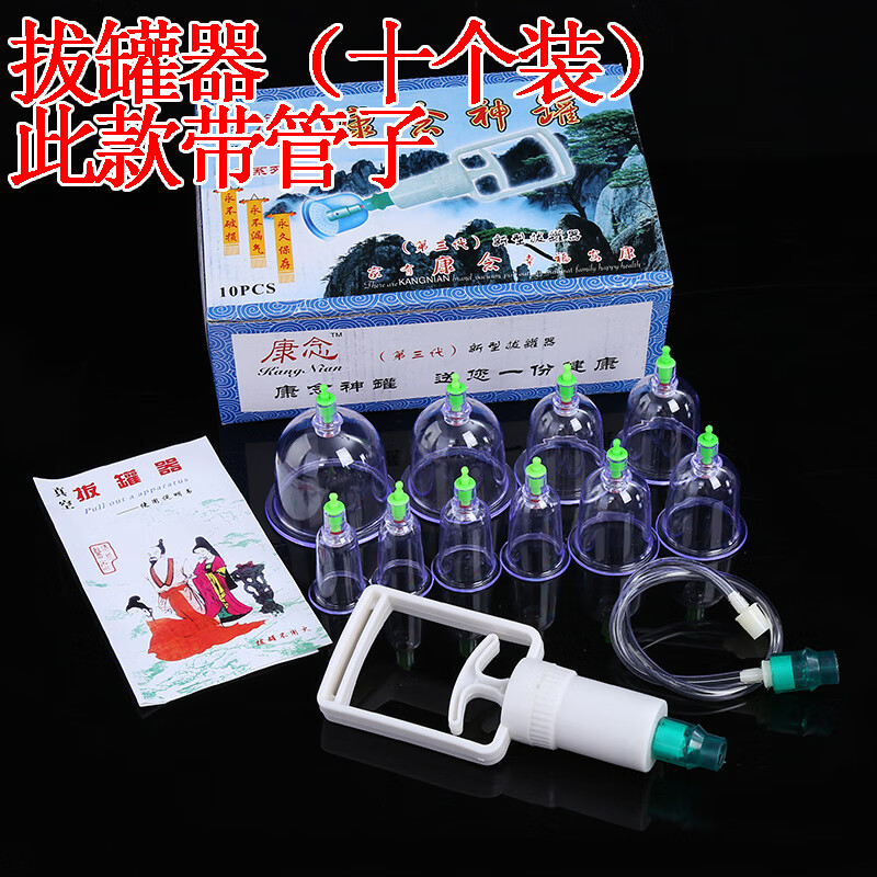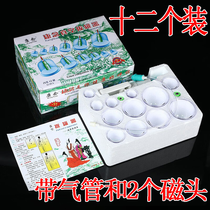 气罐真空家用套装去湿气医用抽气拨火罐非玻璃中医专用工具 拔罐器12件套(带气管+2磁头)