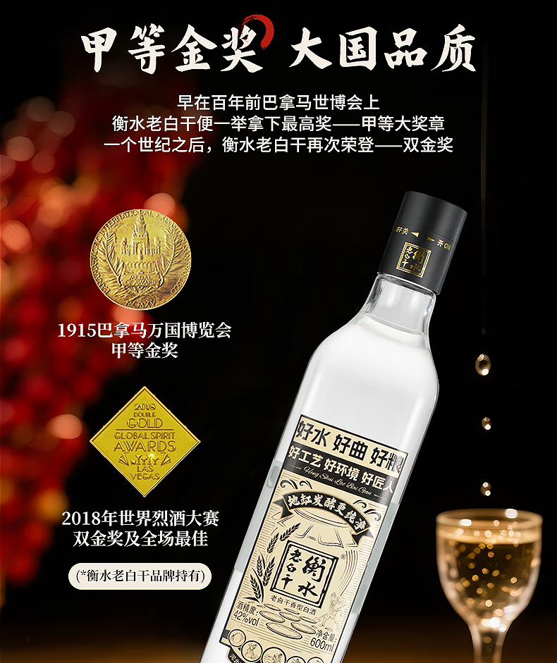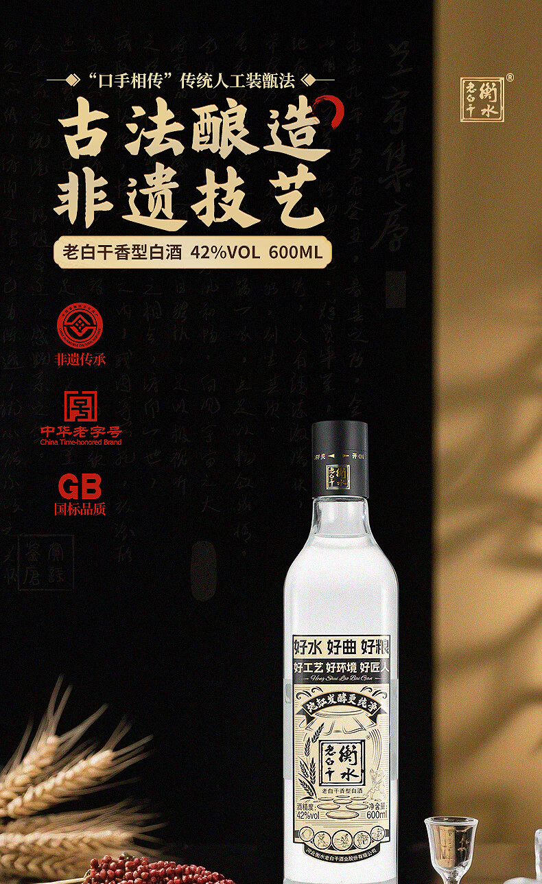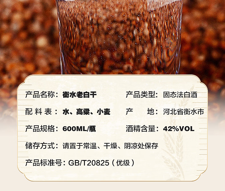 衡水老白干古法酿造金标 老白干香型 白酒礼盒 纯粮固态 婚宴送礼热门商品 42度 600mL 6瓶