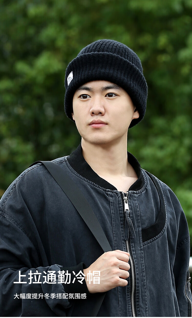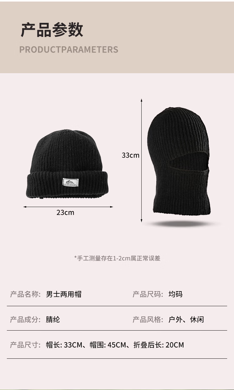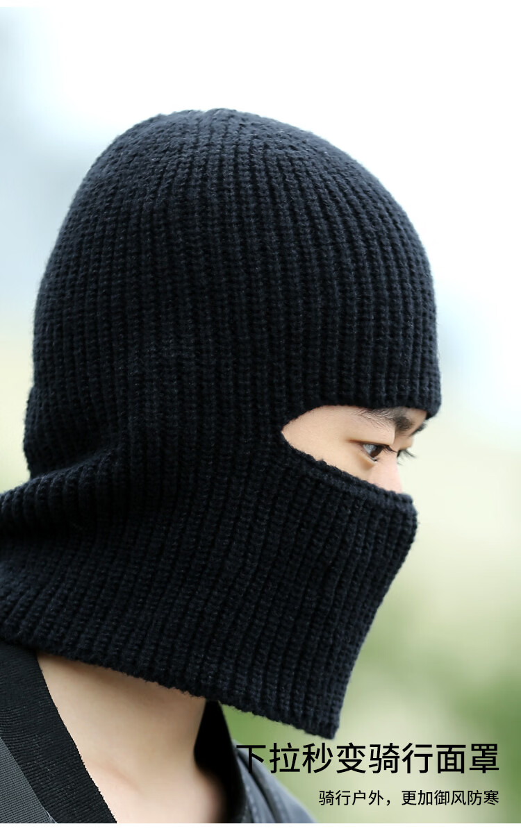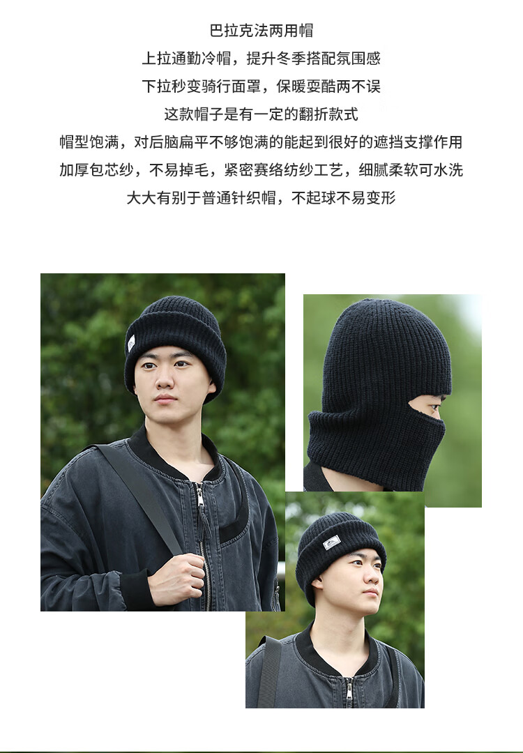 帽子冬季男士款巴拉克拉法帽针织毛线帽防风防寒头套面罩保暖冷帽 黑色【一帽两戴】