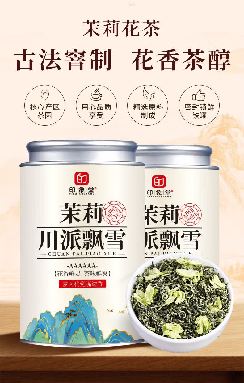 印象堂花茶新茶 茉莉飘雪特级浓香型冷泡茉莉花茶罐装川派窨制茶叶 6A特级【鲜香耐泡】250g*1罐