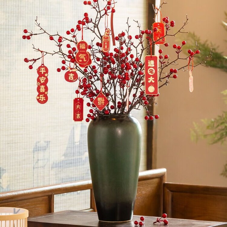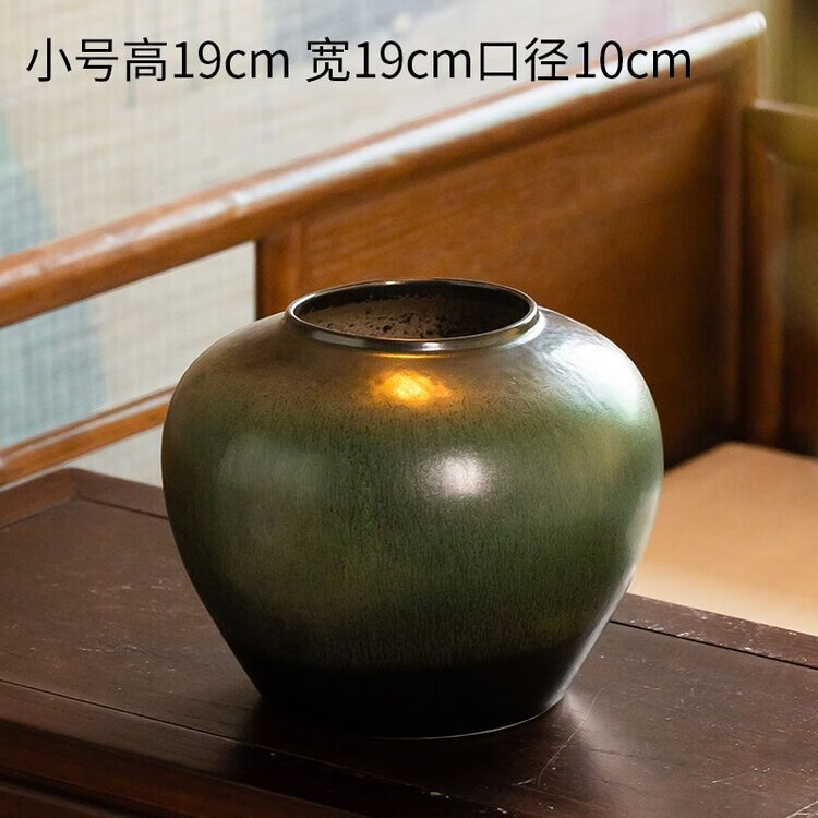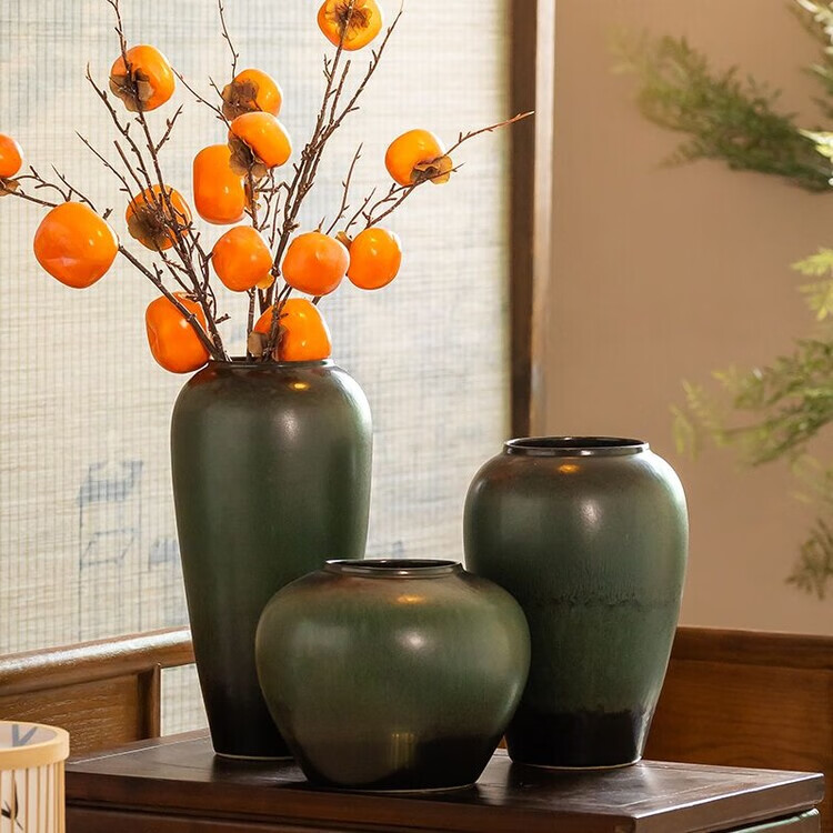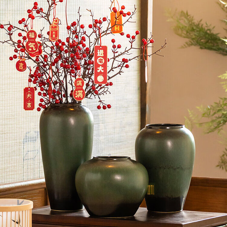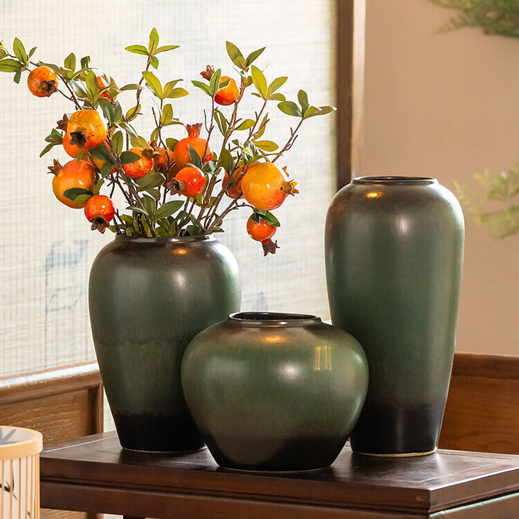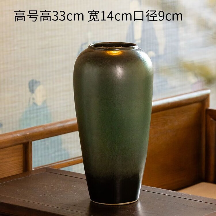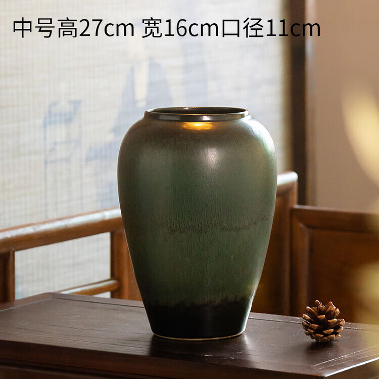 OYKTN陶瓷花瓶中式复古家居干花装饰摆件客厅名宿简约插花花器水培陶罐 复古绿【精致小号】