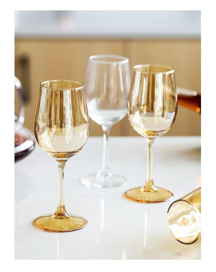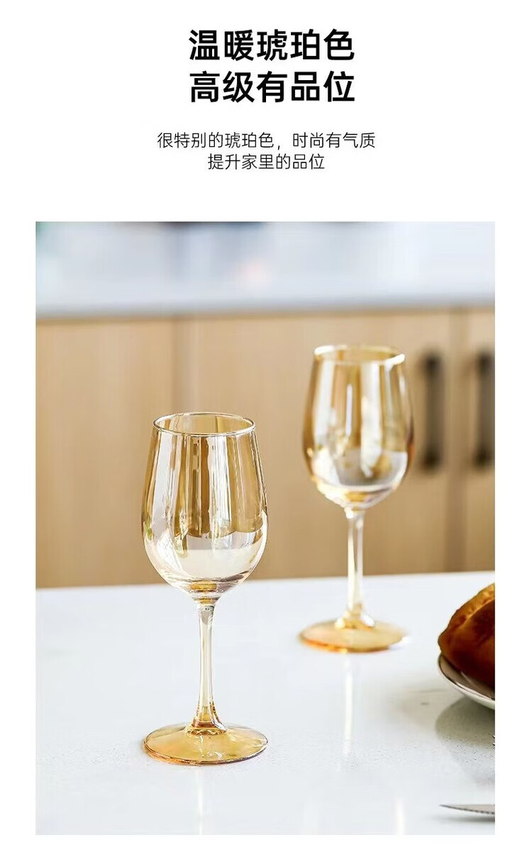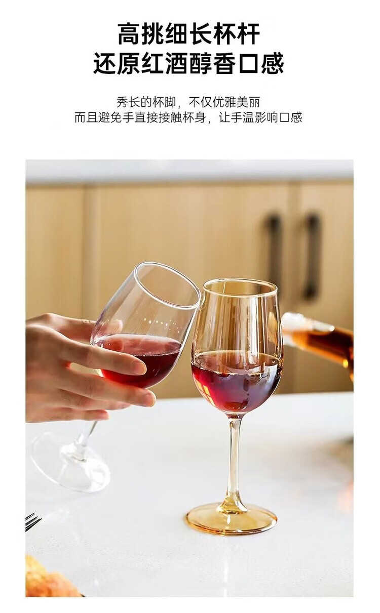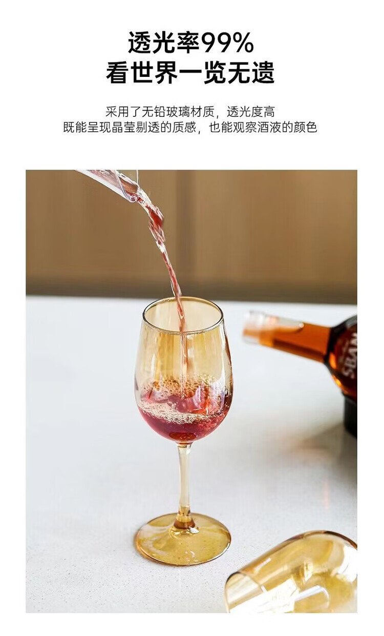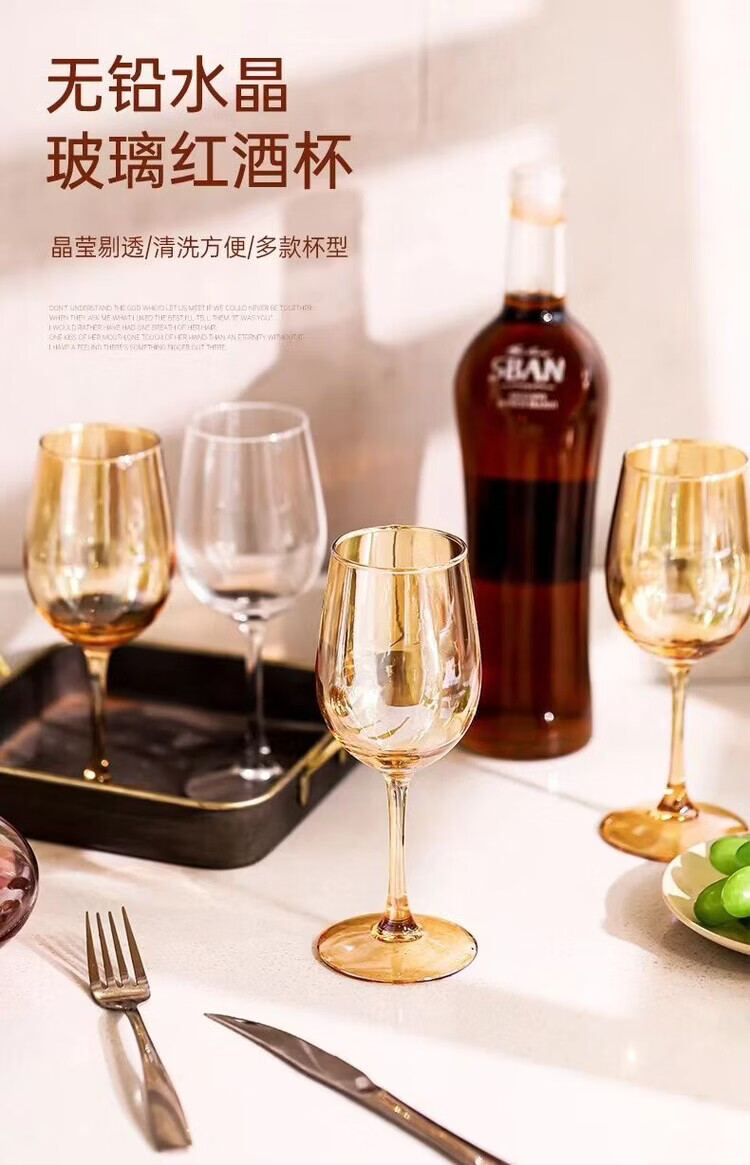 咏夏欧式轻奢高脚酒杯家用高颜值红酒杯金色葡萄酒杯香槟色创意洋酒杯 【330ml升级款】透明红酒杯6只