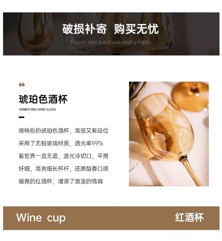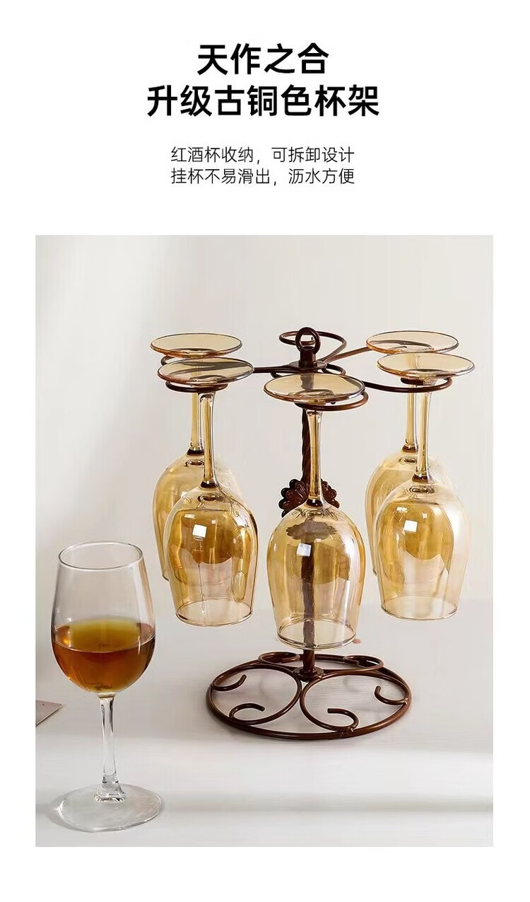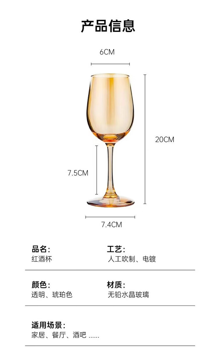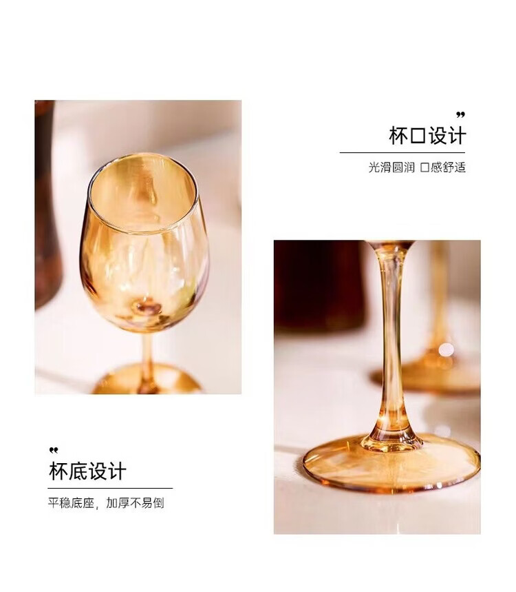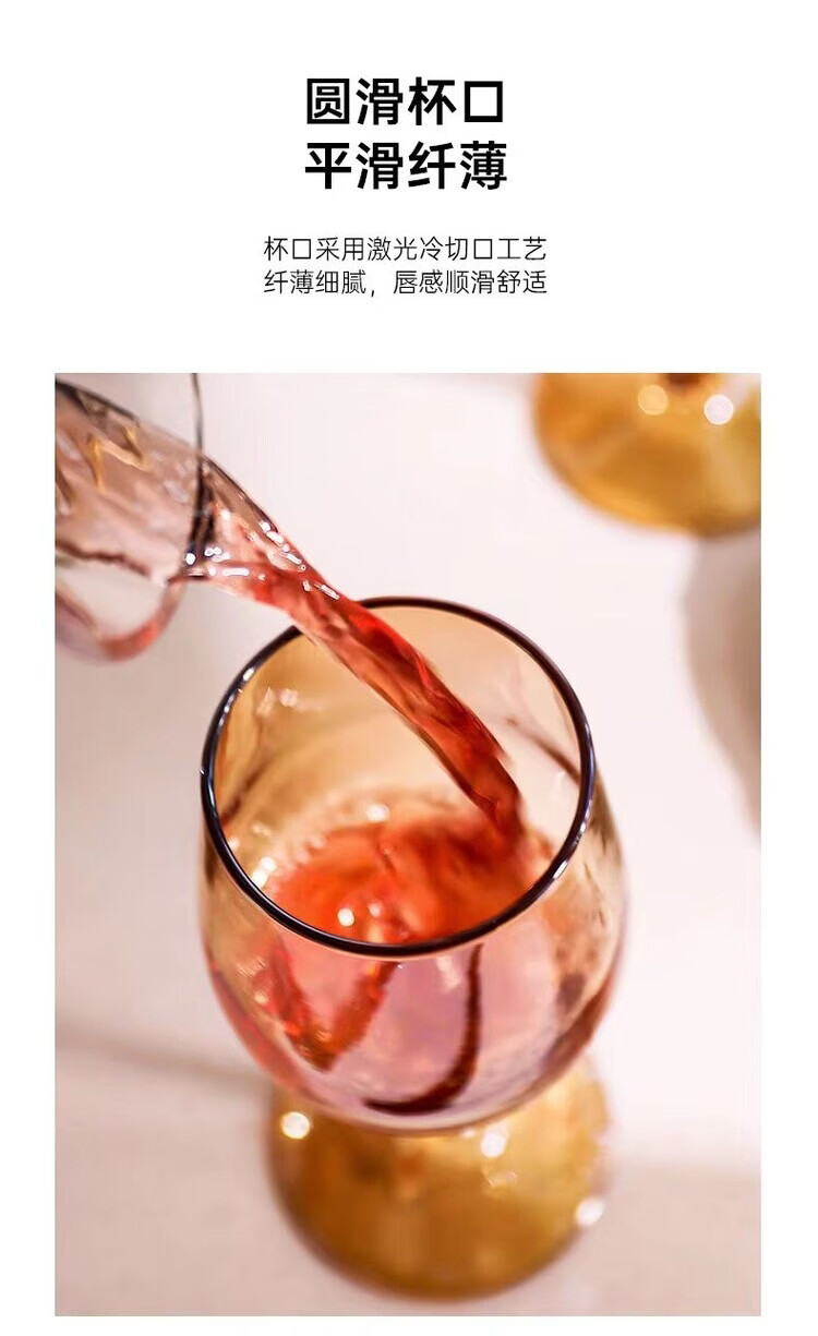 咏夏欧式轻奢高脚酒杯家用高颜值红酒杯金色葡萄酒杯香槟色创意洋酒杯 【330ml升级款】透明红酒杯6只