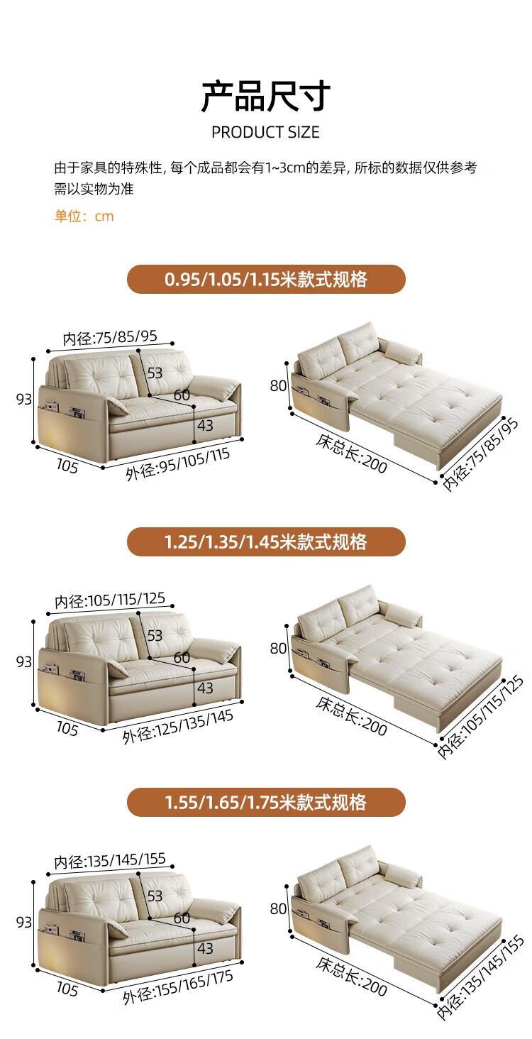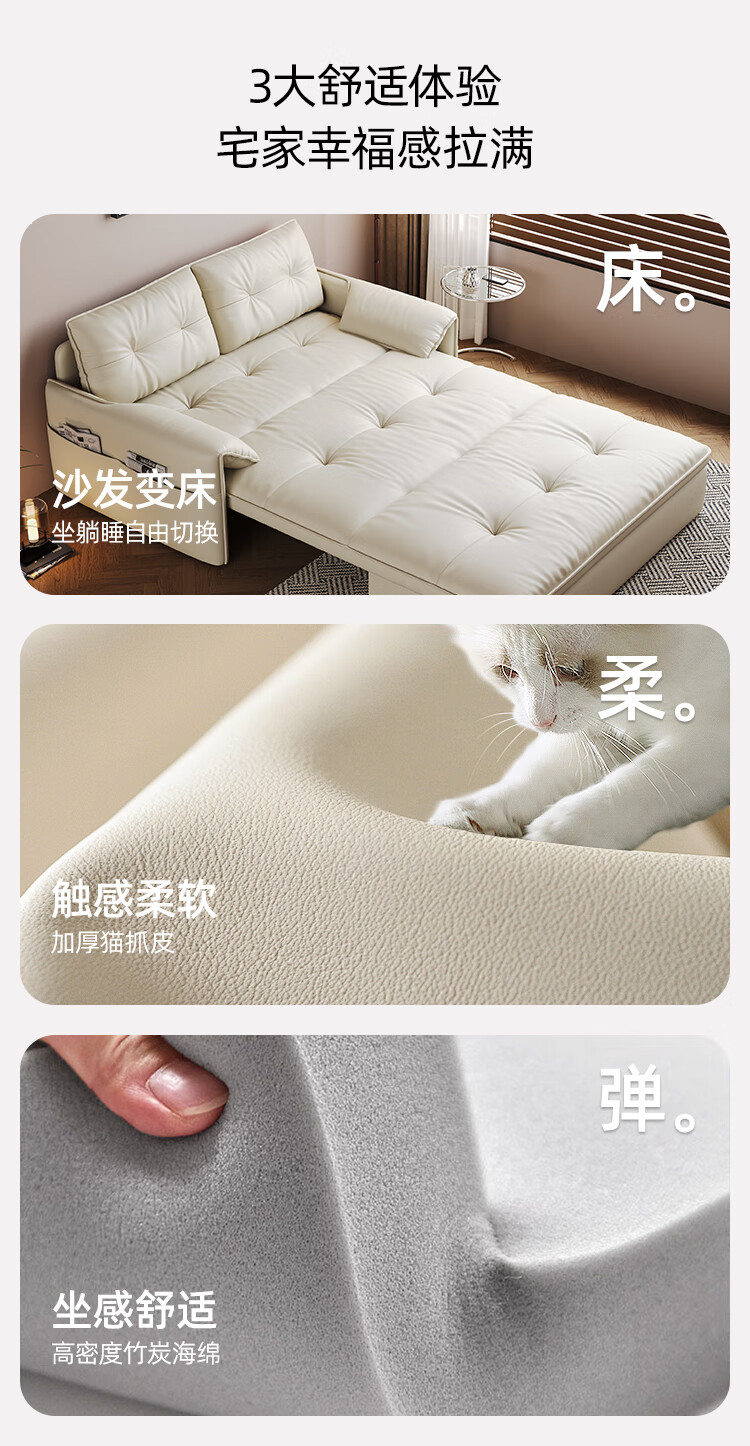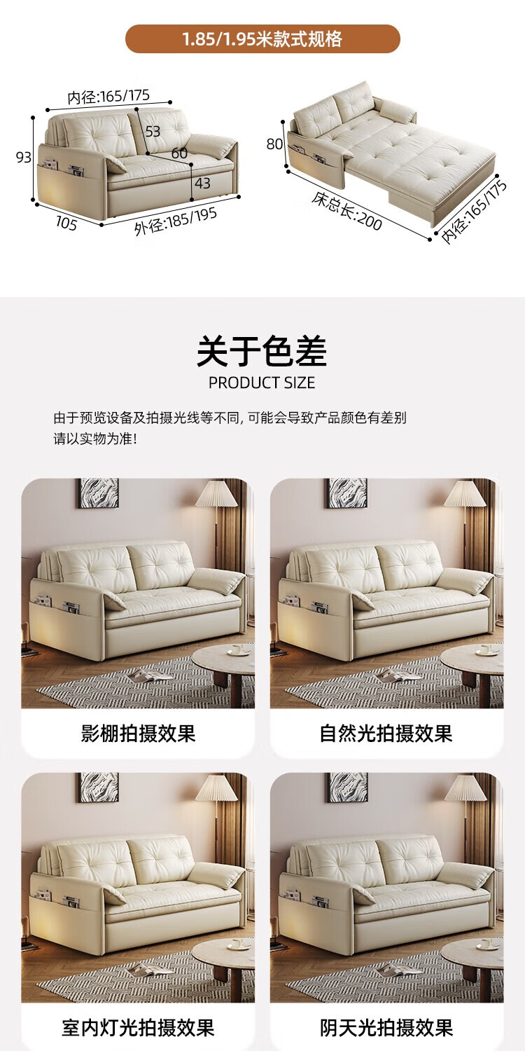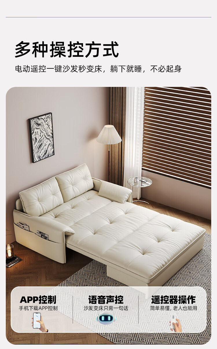 林木壹森电动沙发床可折叠伸缩小户型客厅卧室单双人简约智能沙发床多功能 外径1.75米+免费升级三合一控制 海绵款+猫抓皮+带储物