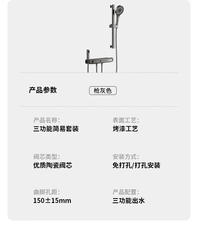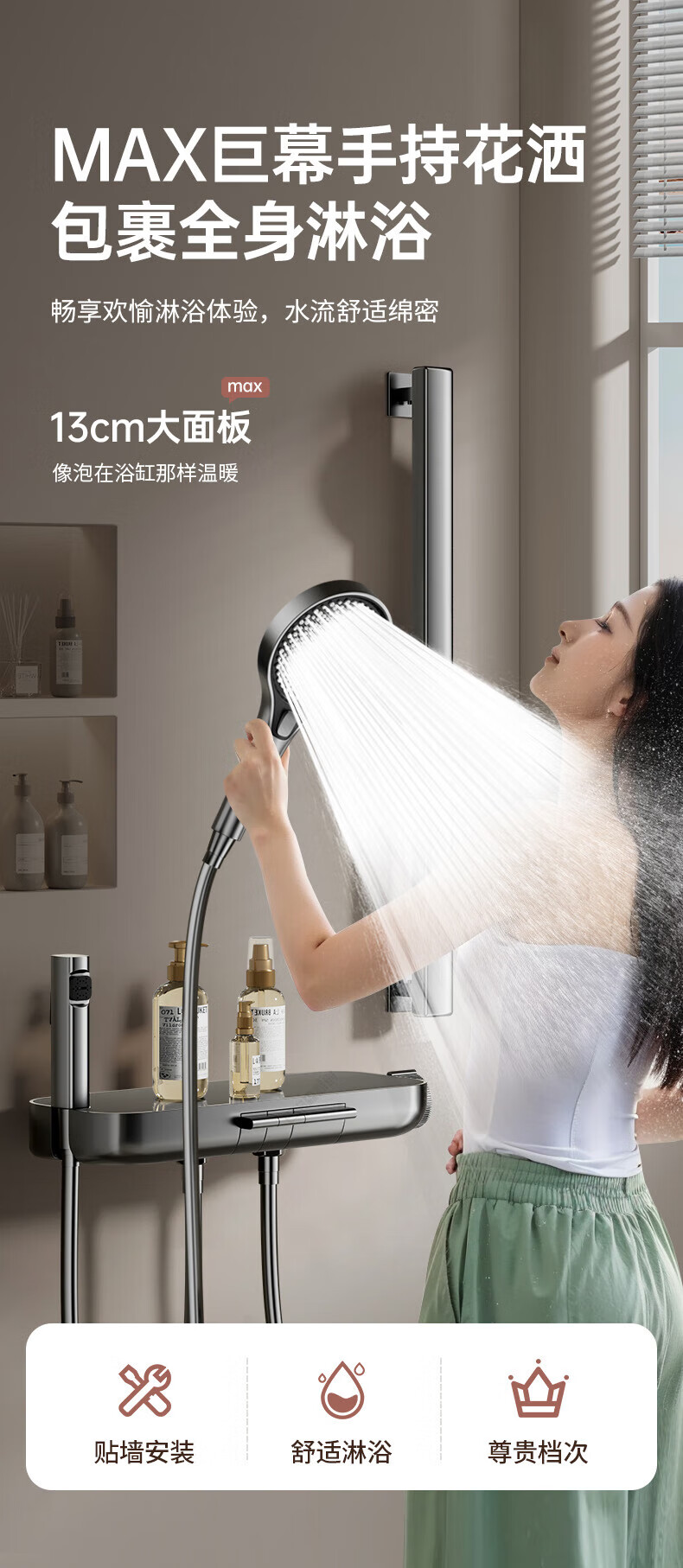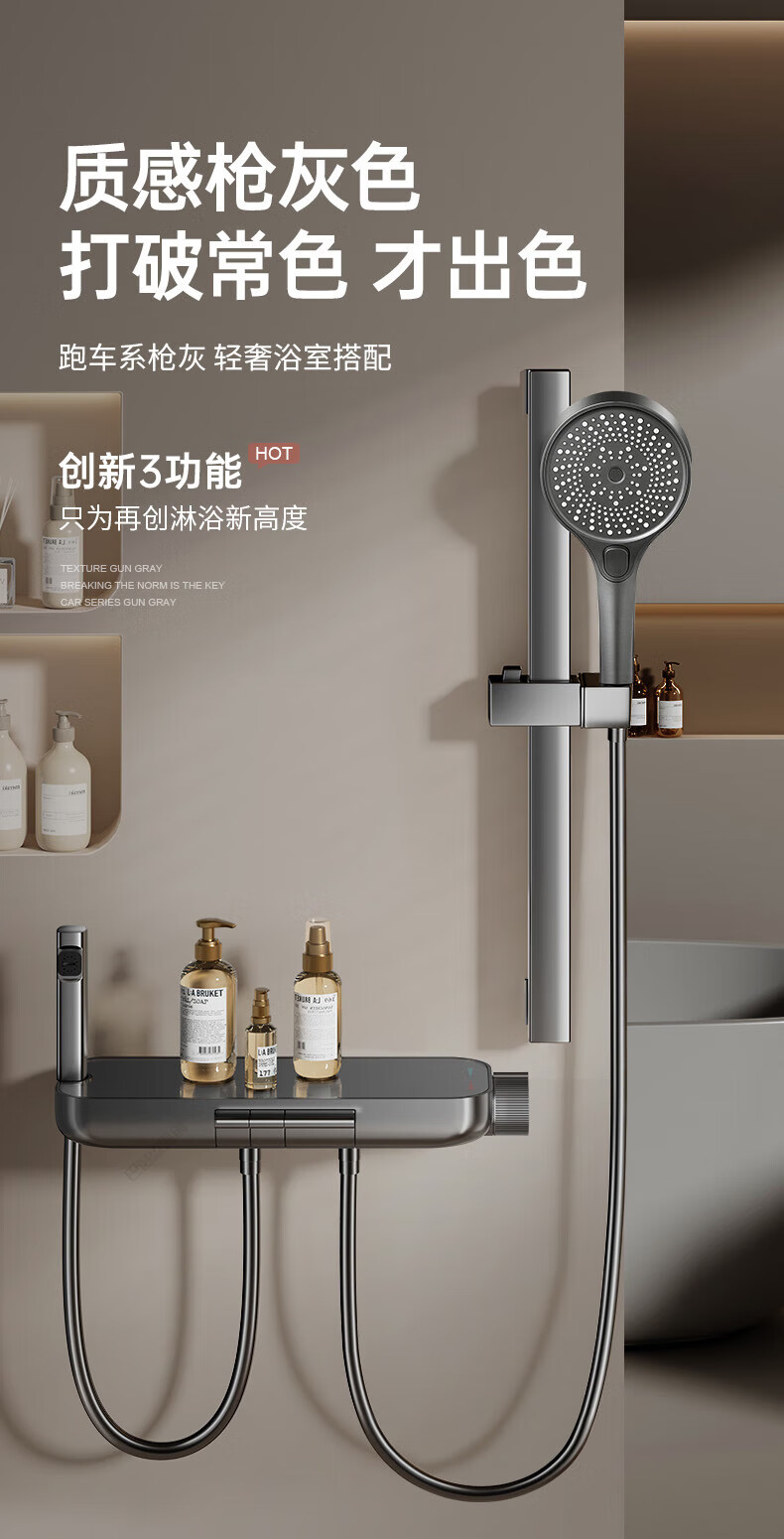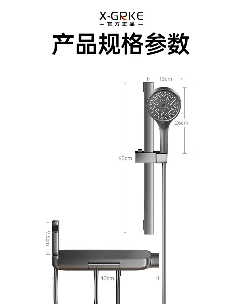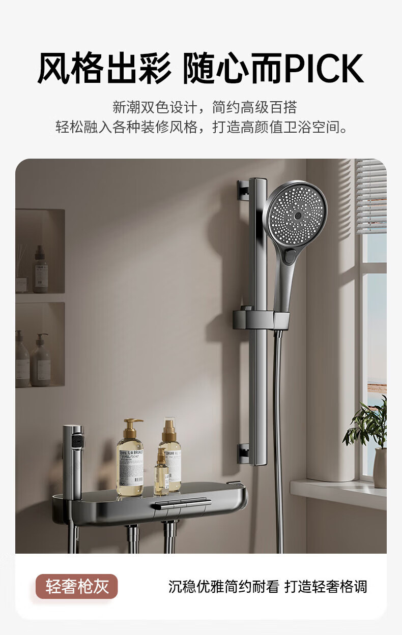 X-GRKE【德国】简易淋浴花洒套装浴室增压一体式无顶喷花洒全套一整套 质感灰丨分体式淋浴花洒套装 分体安装丨增压喷枪丨大平台置物