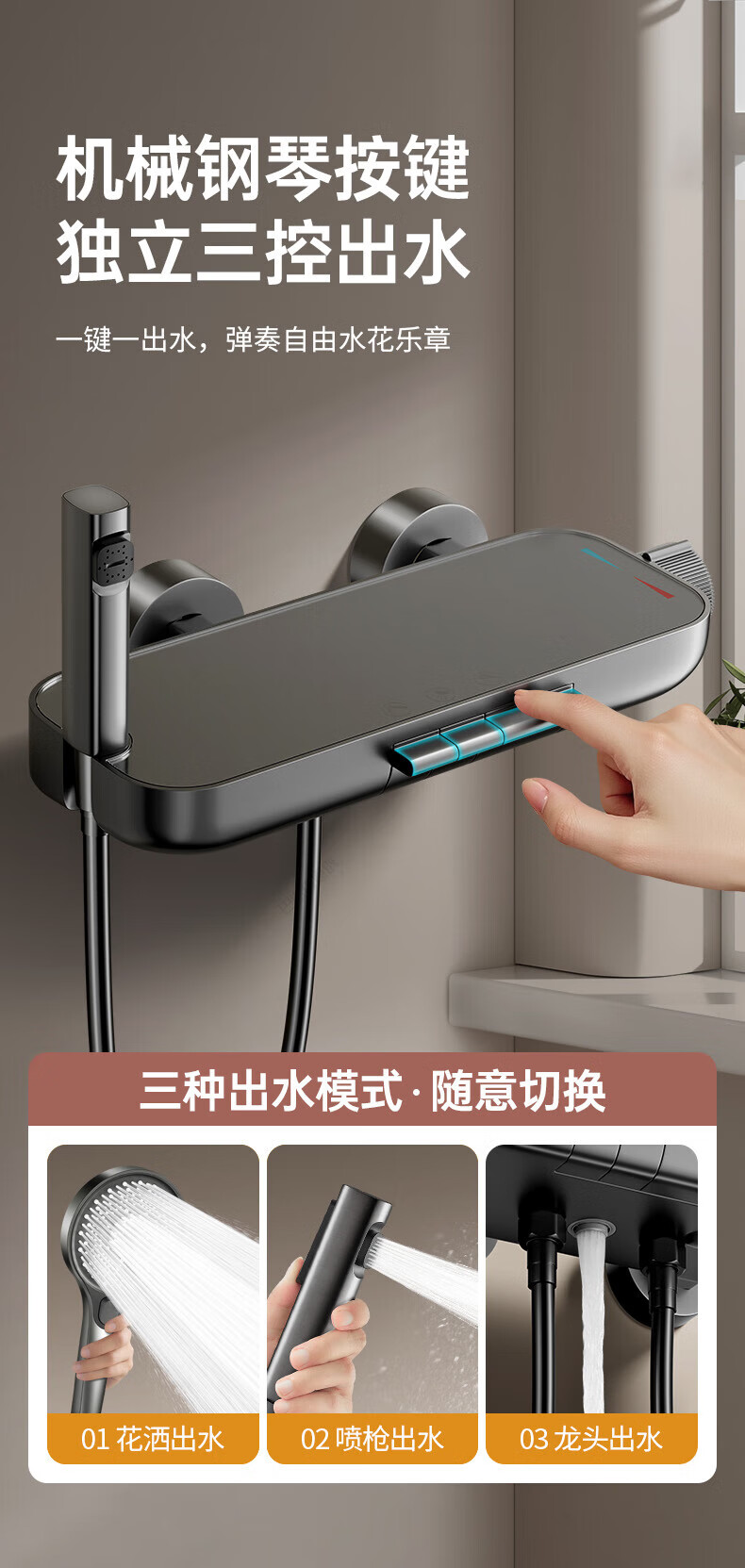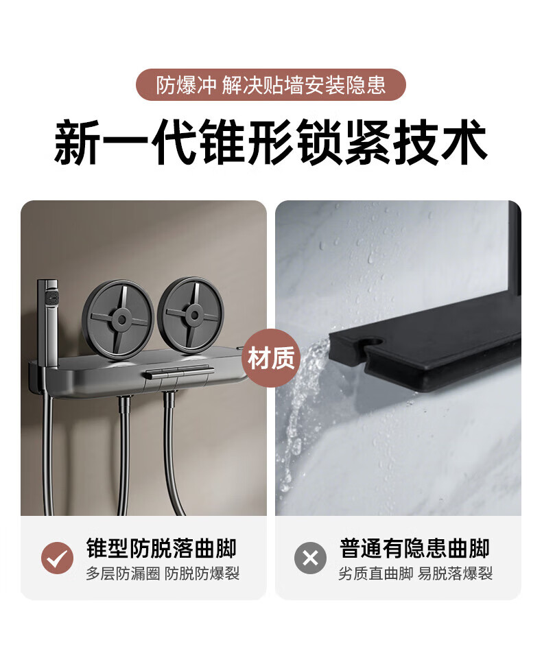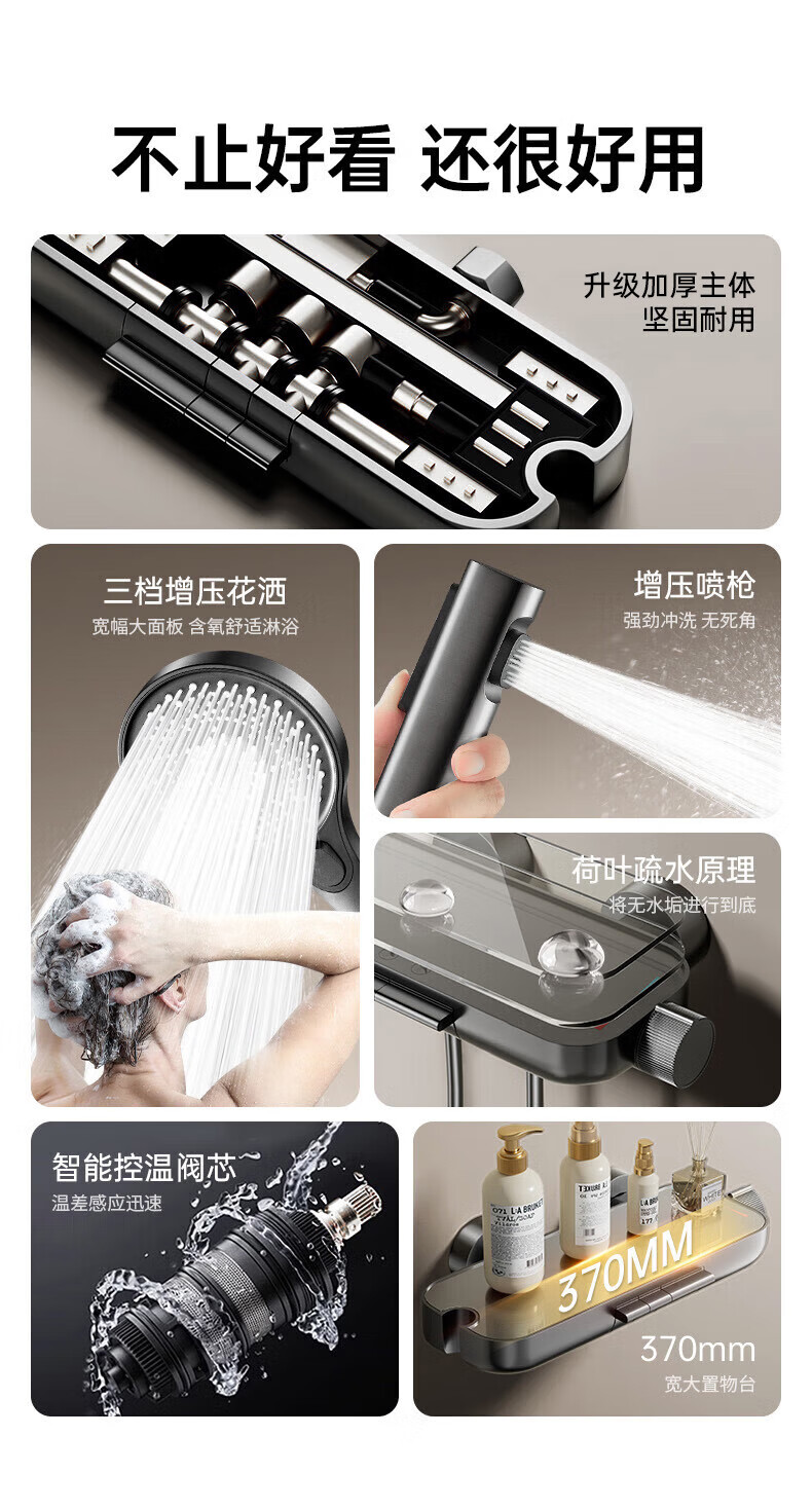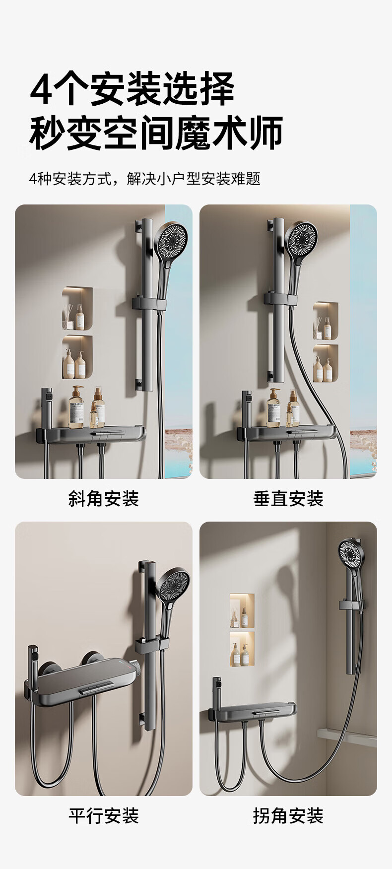 X-GRKE【德国】简易淋浴花洒套装浴室增压一体式无顶喷花洒全套一整套 质感灰丨分体式淋浴花洒套装 分体安装丨增压喷枪丨大平台置物