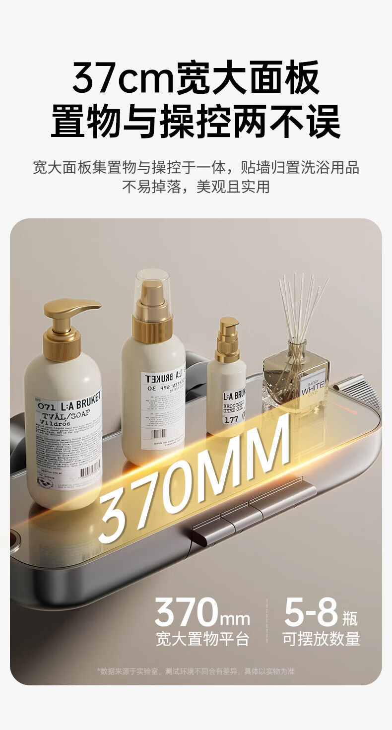 九牧(JOMOO)花洒淋浴花洒套装钢琴按键大置物方管贴墙淋浴顶喷喷增压淋浴器 丝雨星幕版36661爆款灰