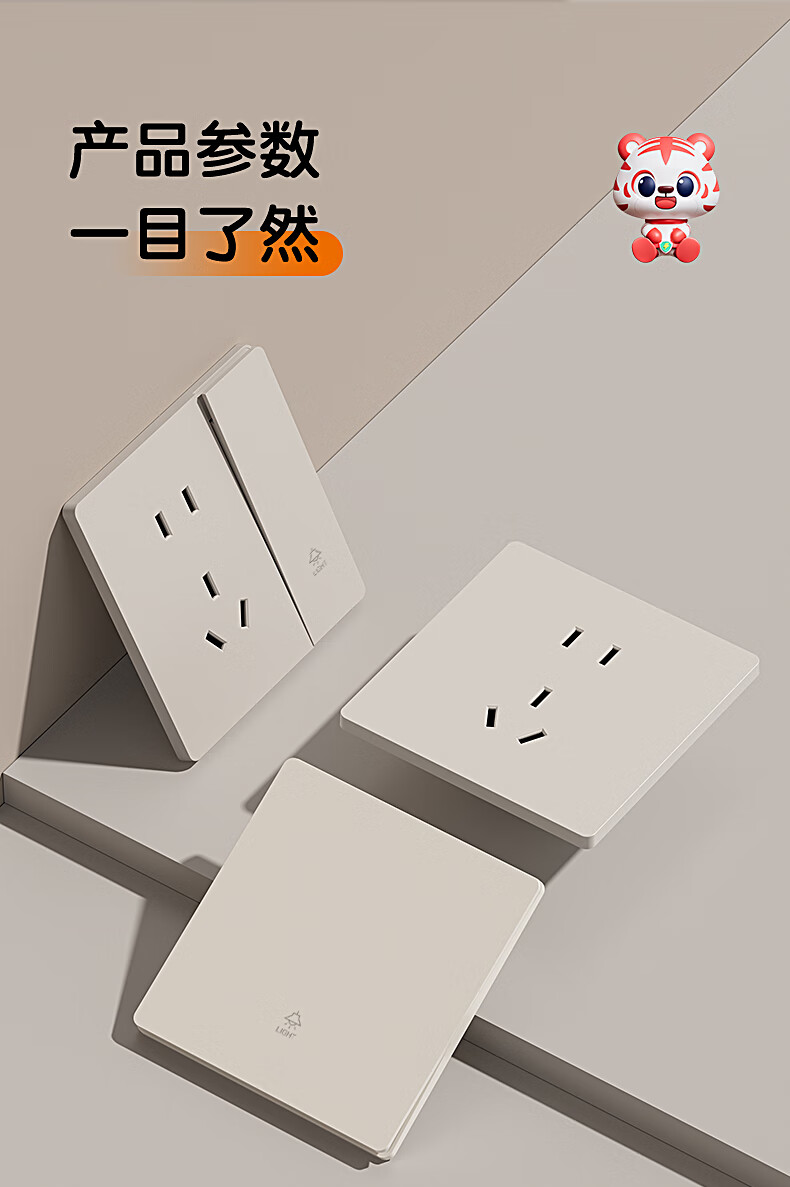 国际电工86型暗装哑光超薄直拨杆开关插座面板可可蛋奶家用奶油风五孔双控 五孔插座【10只装】