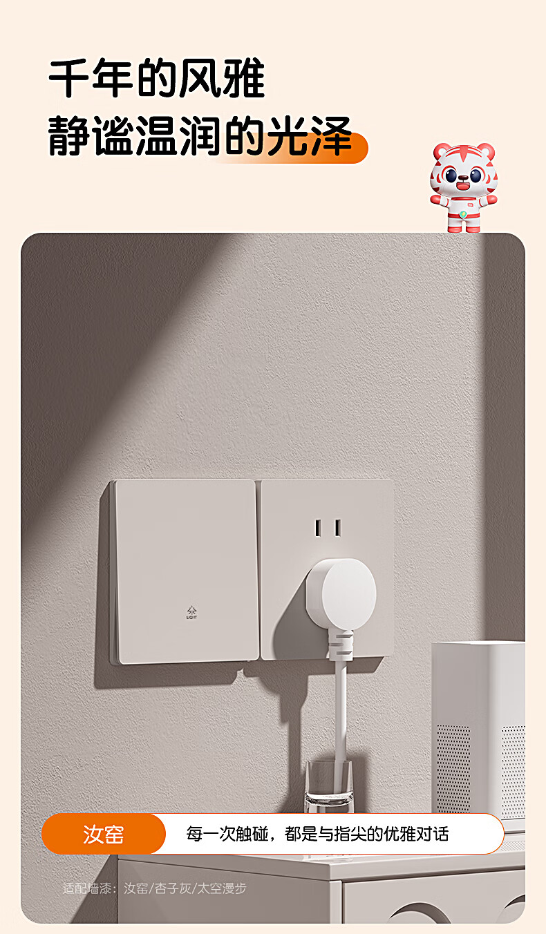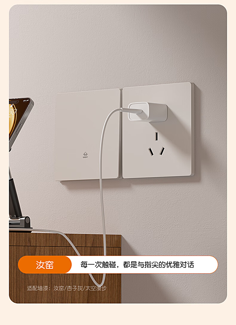 国际电工86型暗装超薄开关插座汝窑灰家用墙壁奶油风哑光面板五孔双控插座 错位五孔