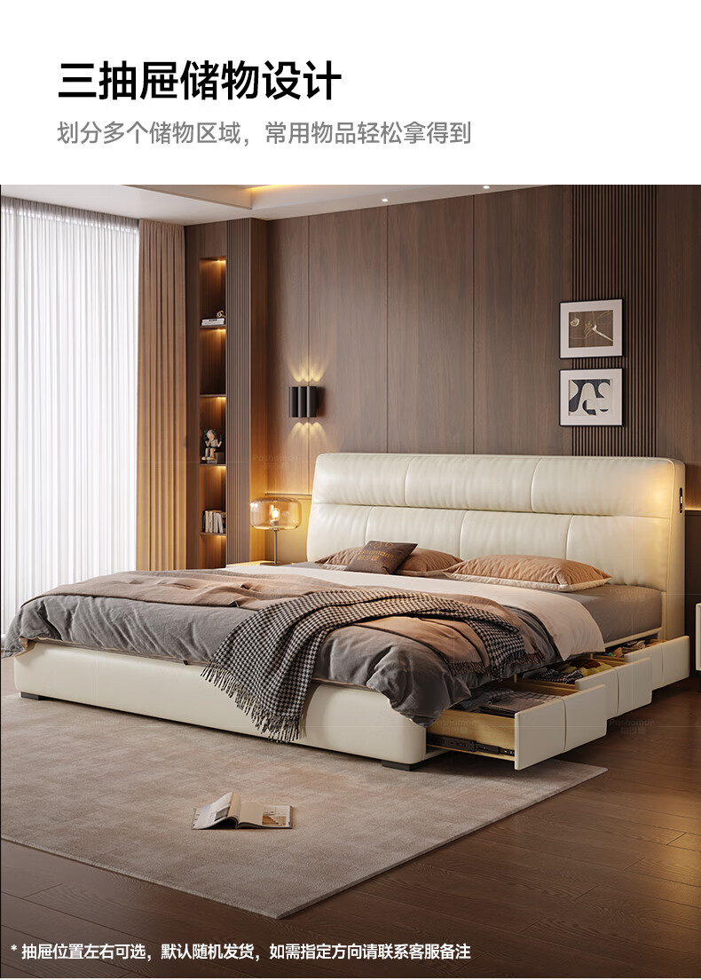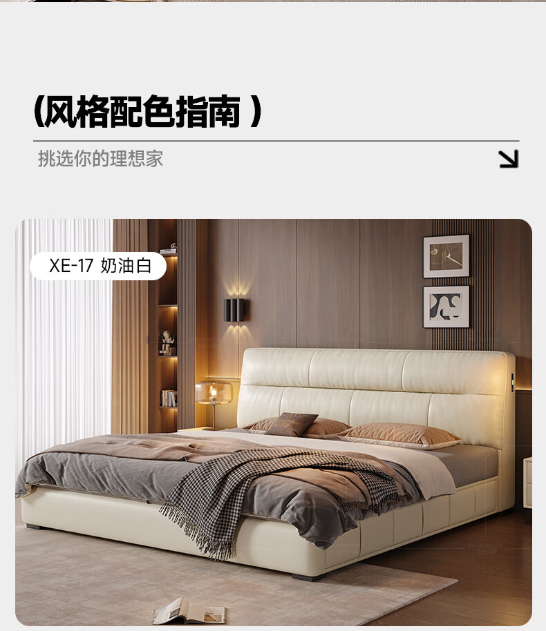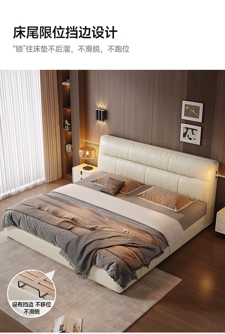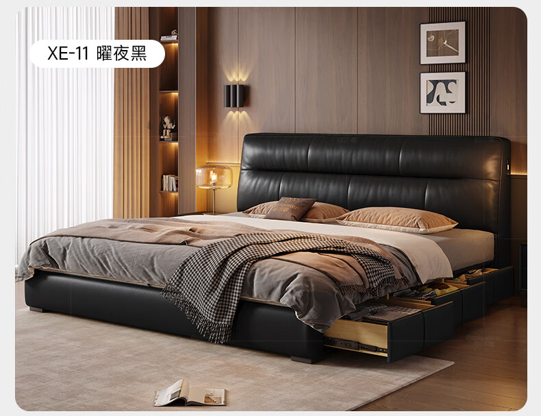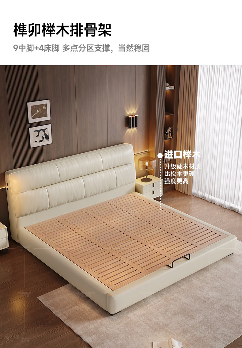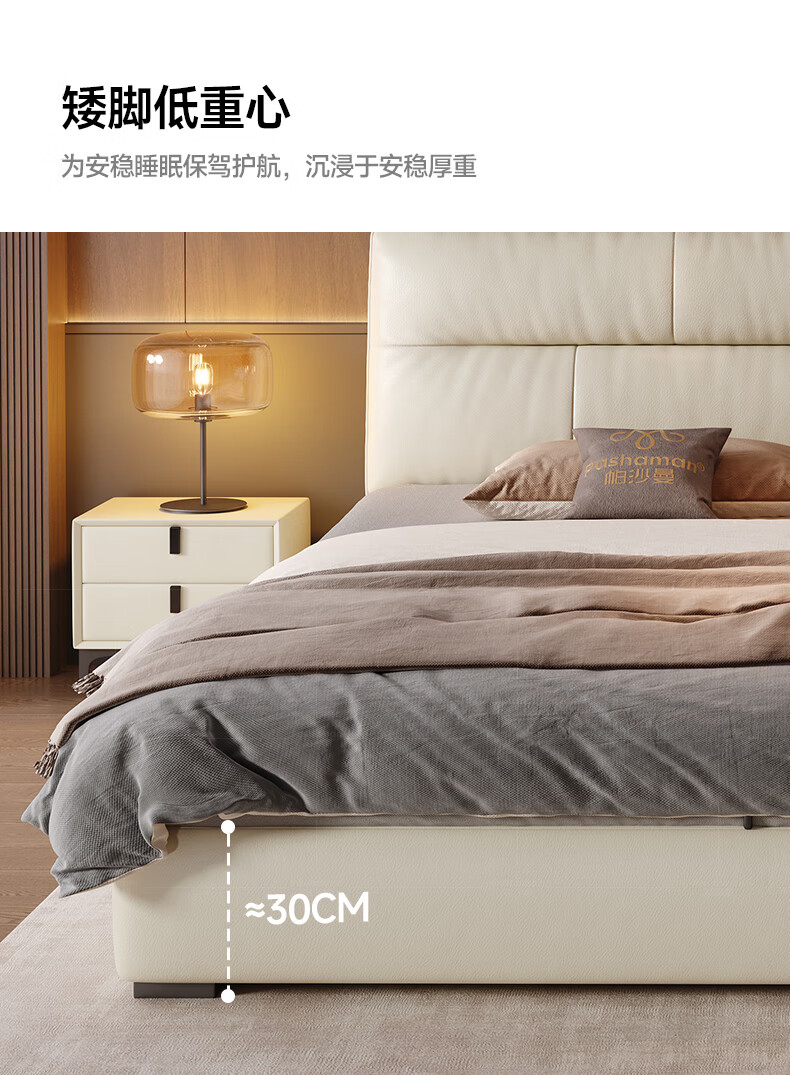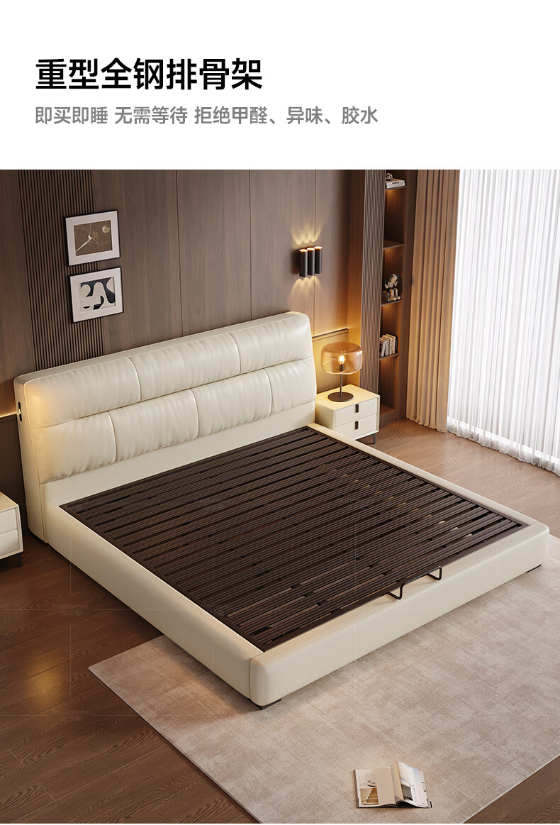 帕沙曼真皮床意式极简落地床高端大气主卧大床双人1米8简约8353CP-R 【15CM钢木】单床+床垫#Z0012 1500*2000mm框架结构