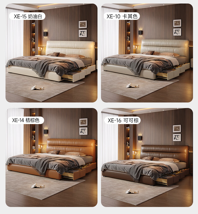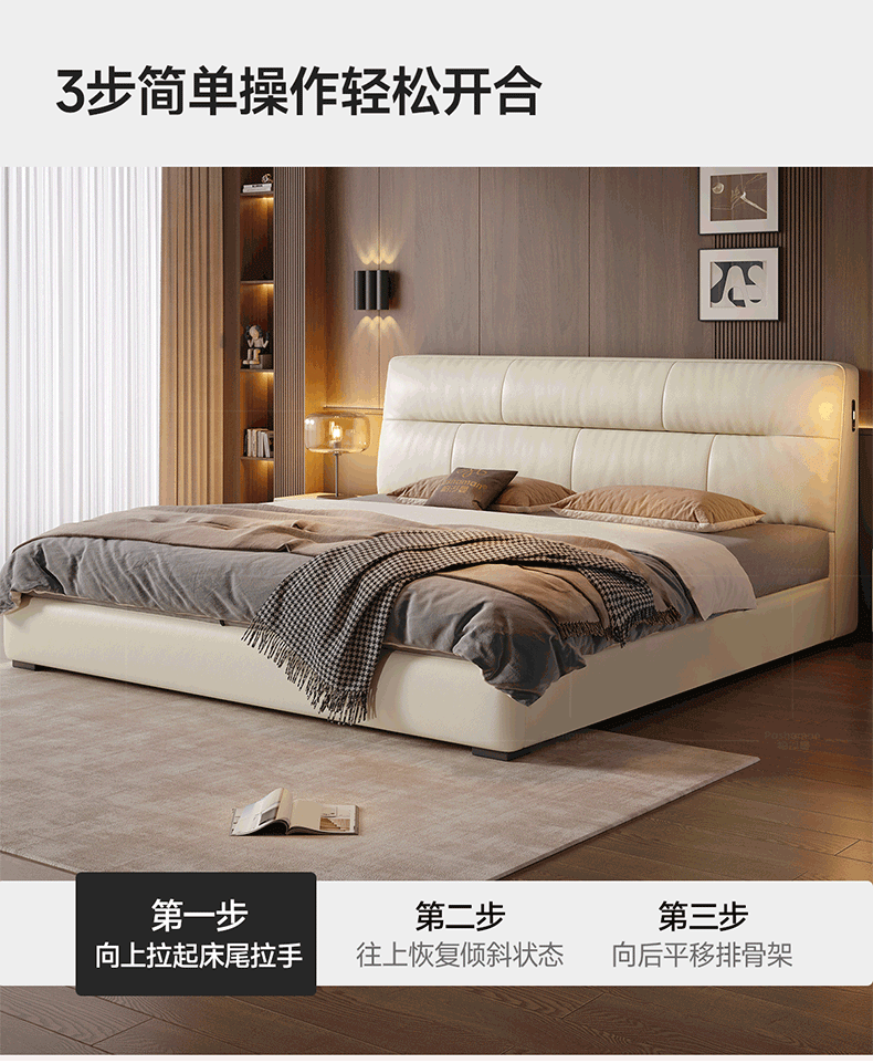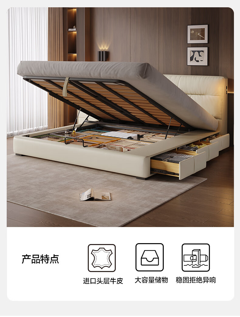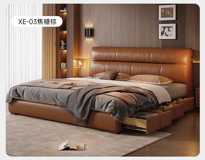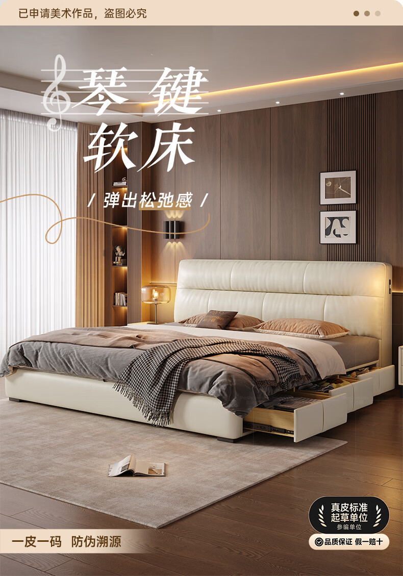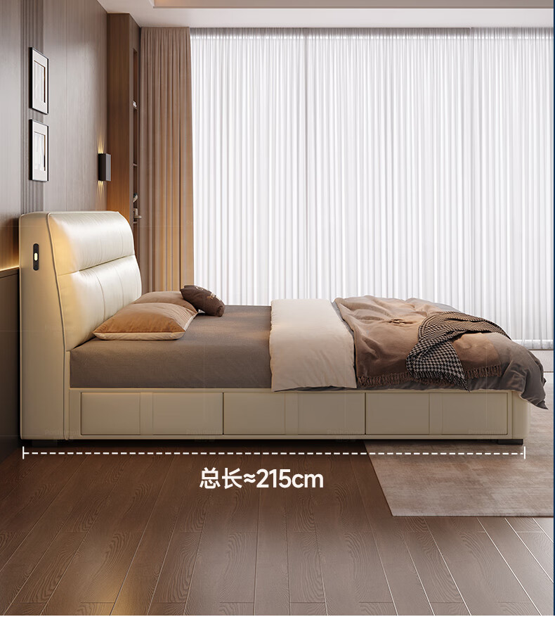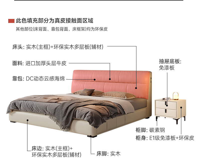 帕沙曼真皮床意式极简落地床高端大气主卧大床双人1米8简约8353CP-R 【15CM钢木】单床+床垫#Z0012 1500*2000mm框架结构