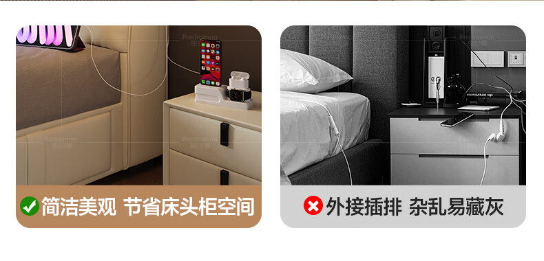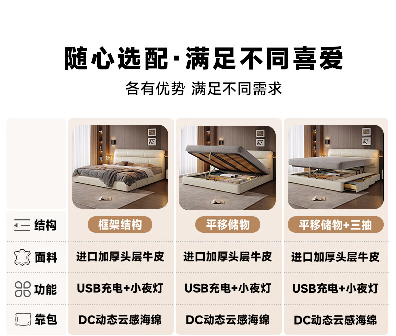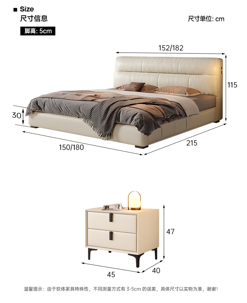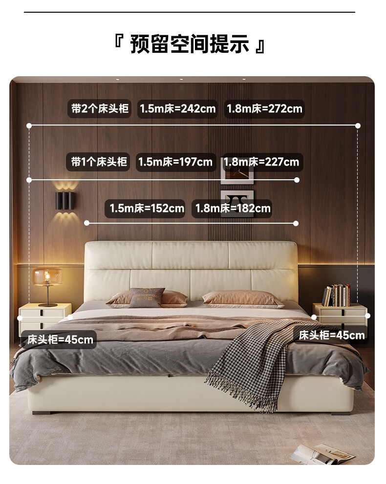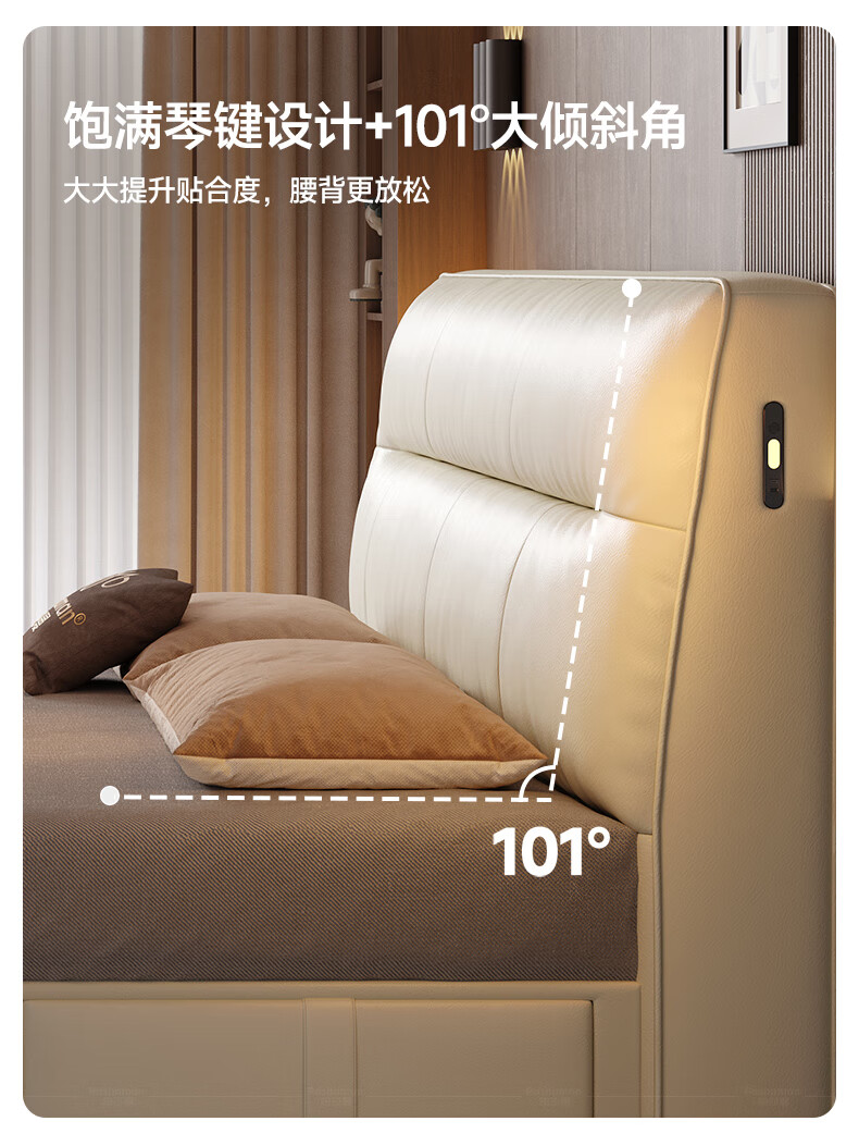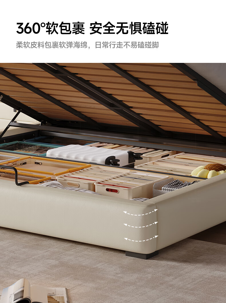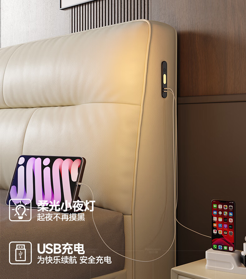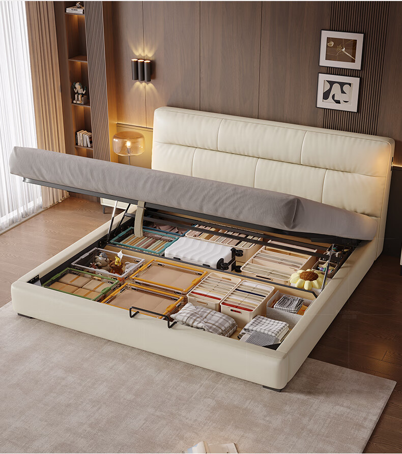 帕沙曼真皮床意式极简落地床高端大气主卧大床双人1米8简约8353CP-R 【15CM钢木】单床+床垫#Z0012 1500*2000mm框架结构