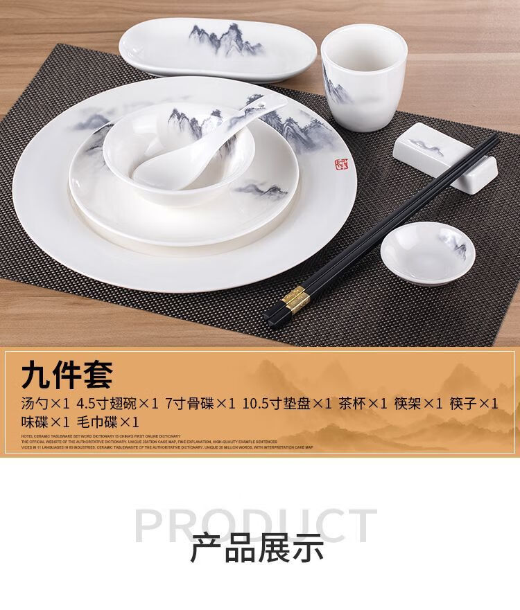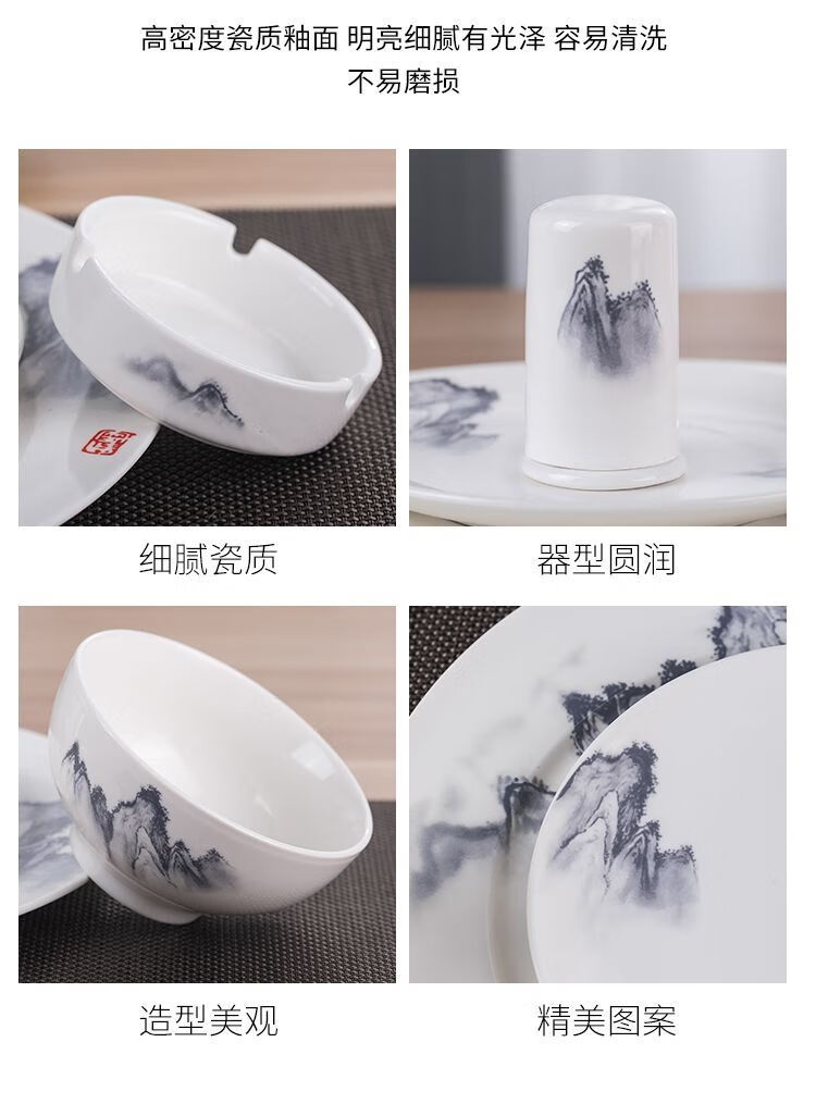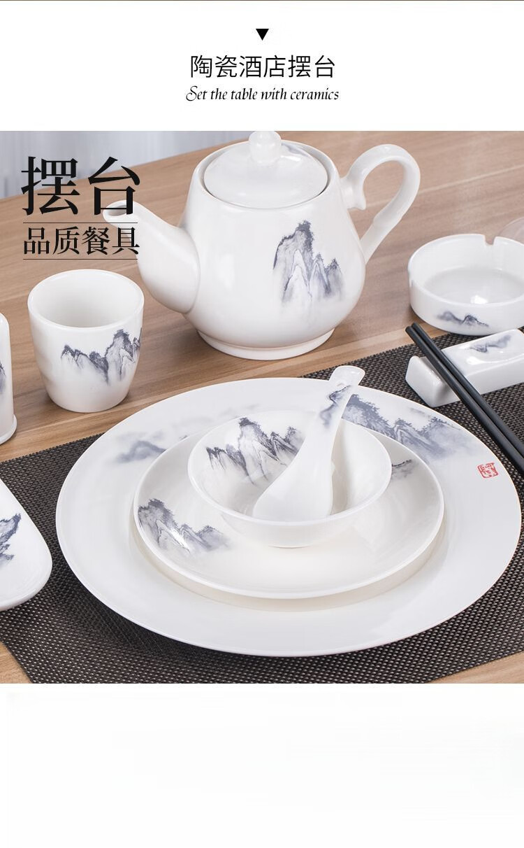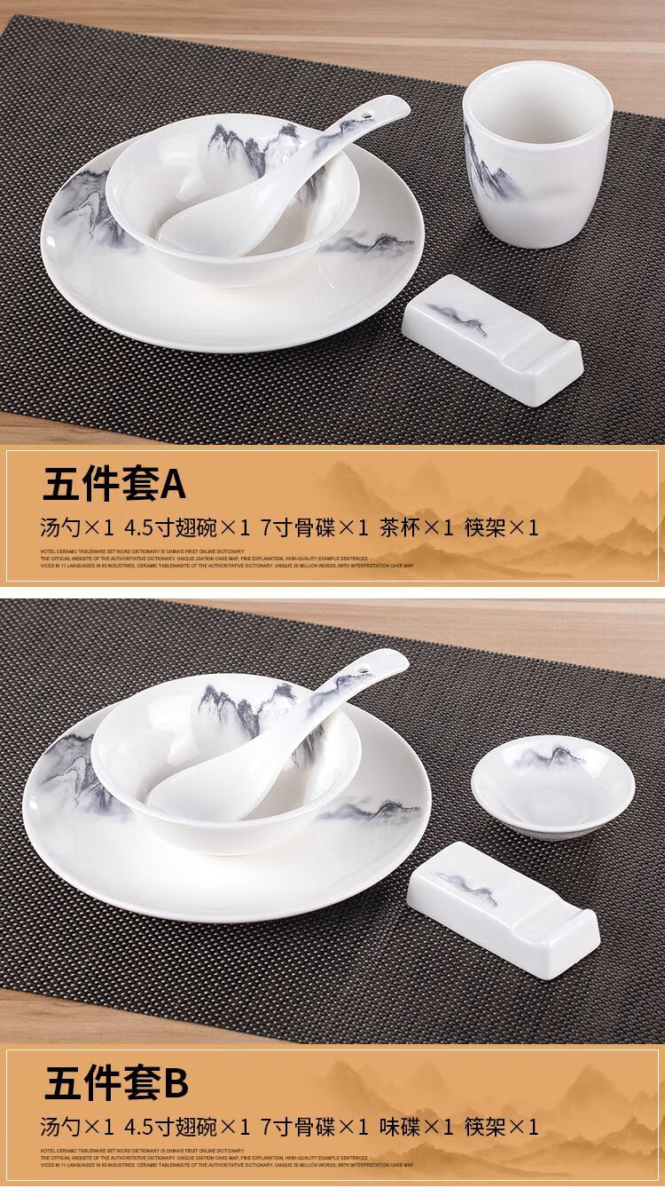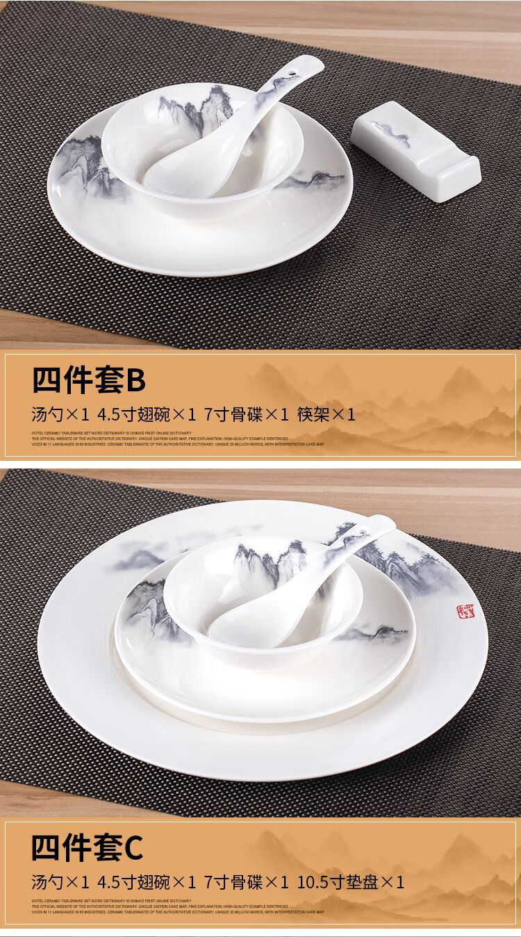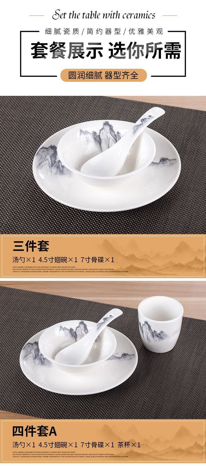 泰禧阁新中式高档酒店山水画摆台陶瓷餐具套餐饭店会所三件套骨碟碗杯勺 四件套A(山峰)