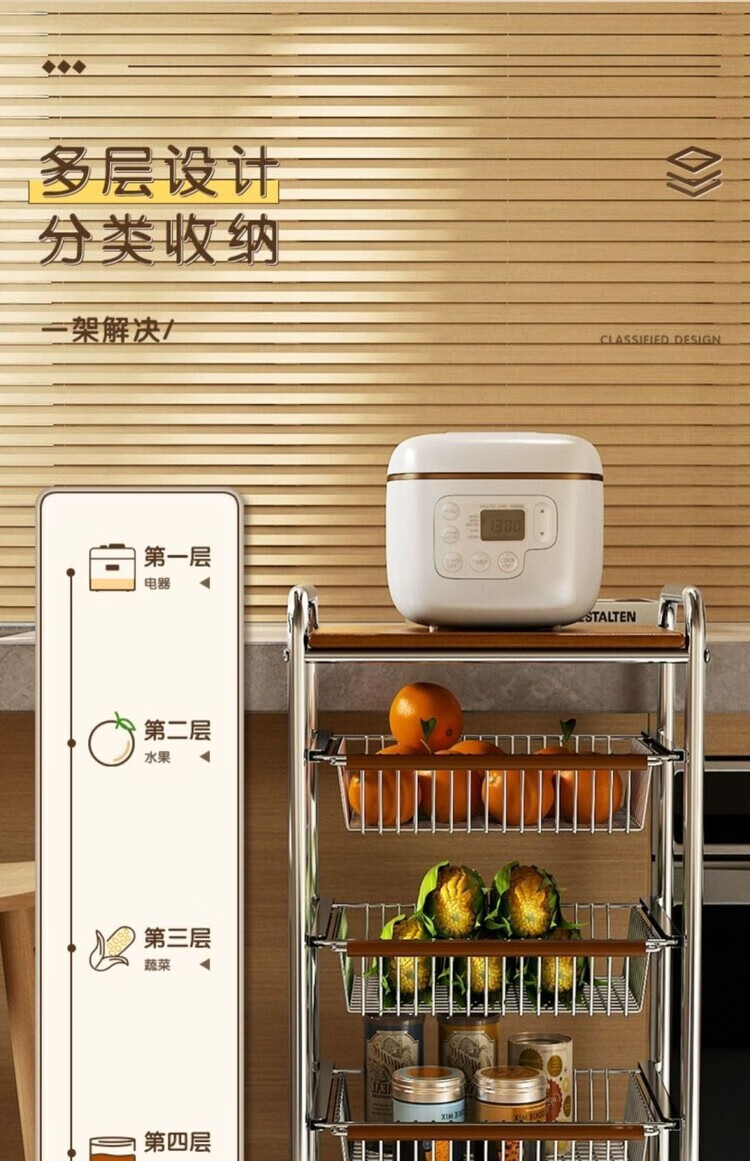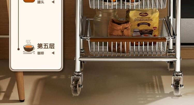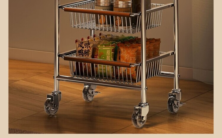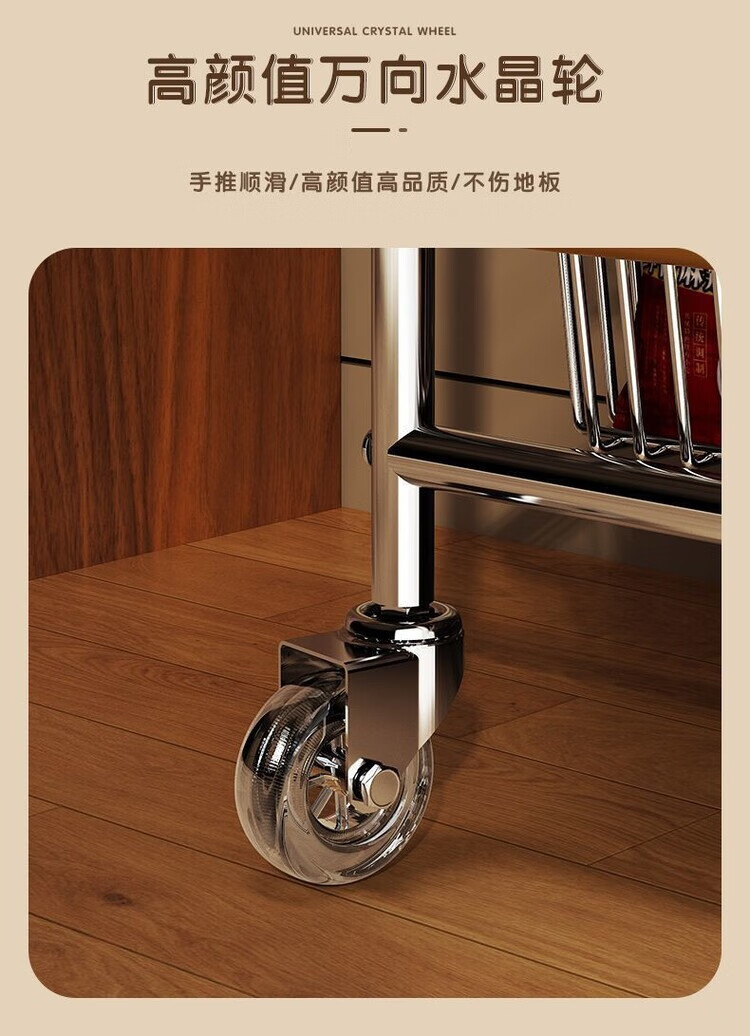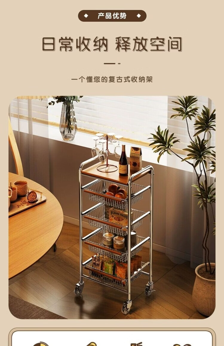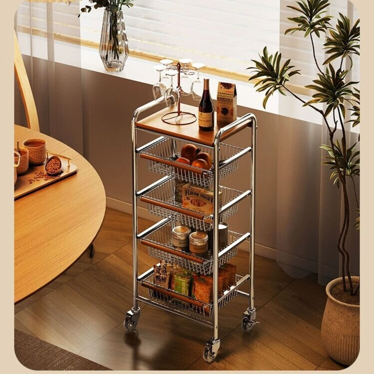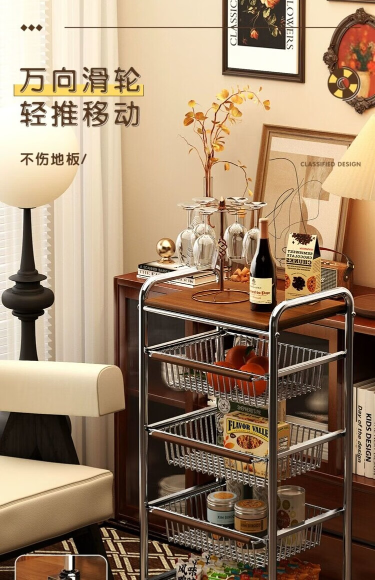 简漾小推车厨房置物架客厅零食收纳可移动多层收纳架厨房落地置物架 4层加粗3框1板黑轮