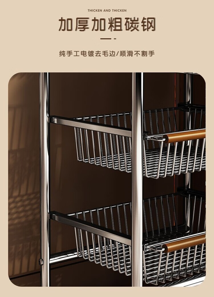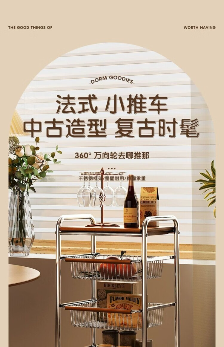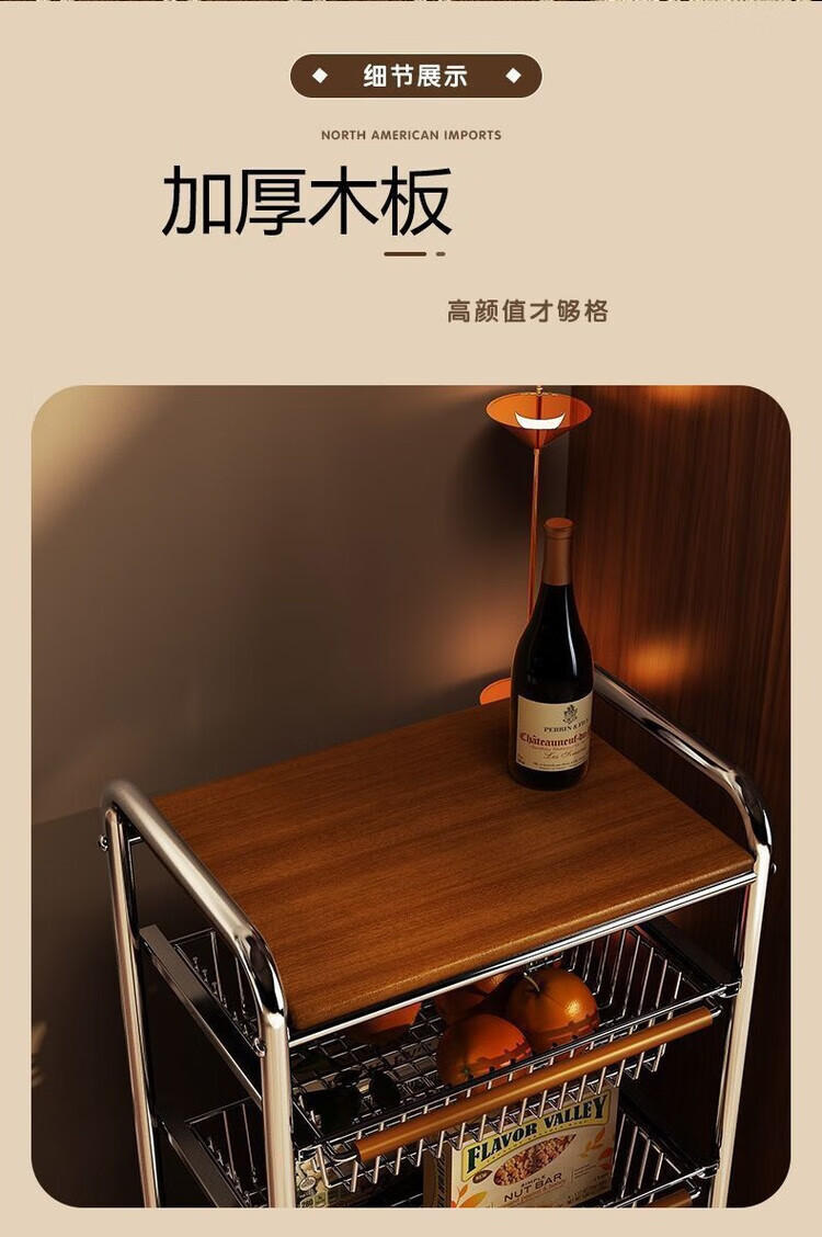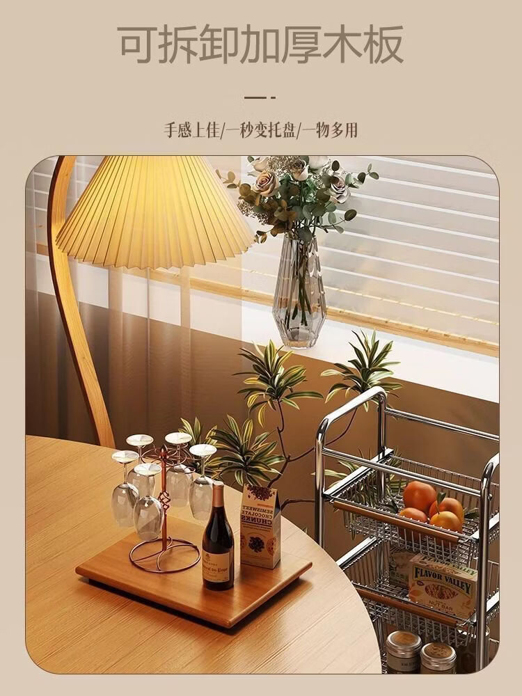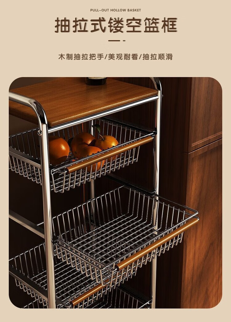 简漾小推车厨房置物架客厅零食收纳可移动多层收纳架厨房落地置物架 4层加粗3框1板黑轮