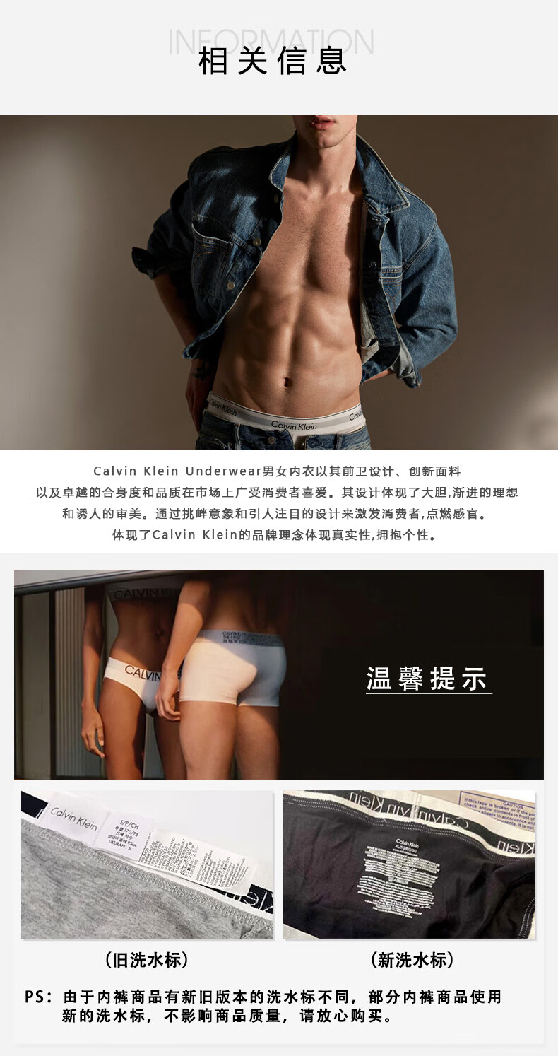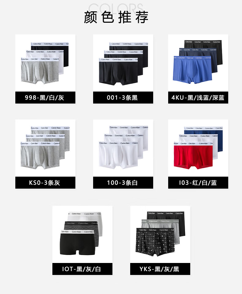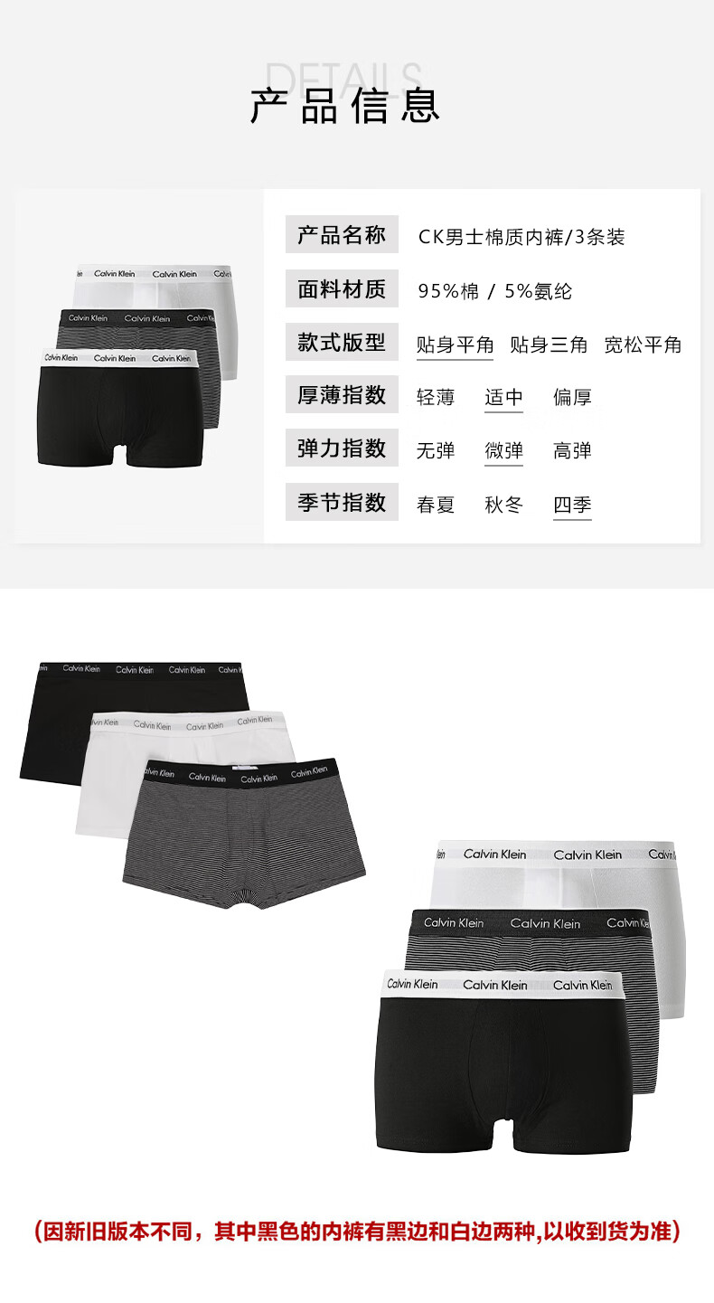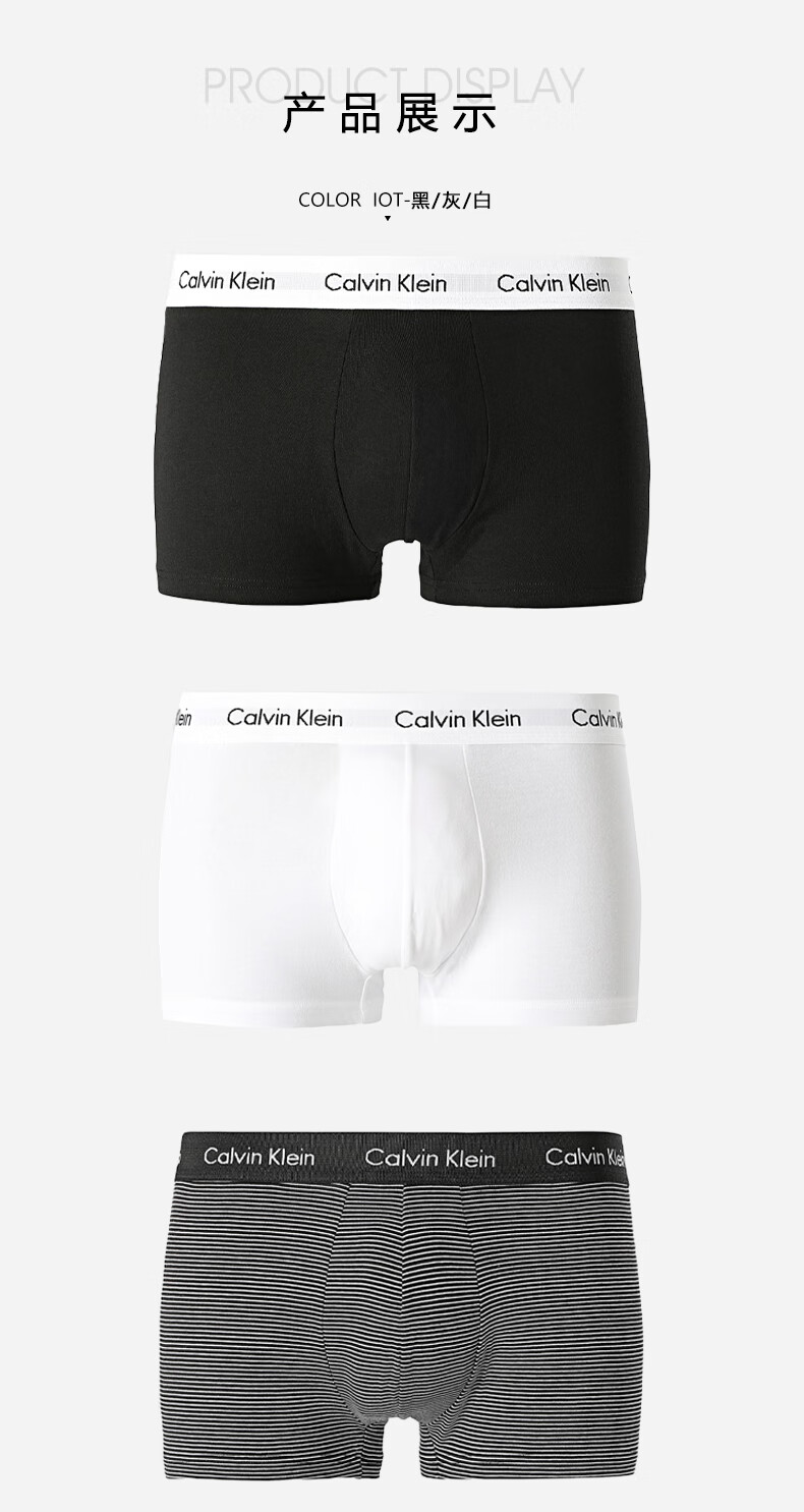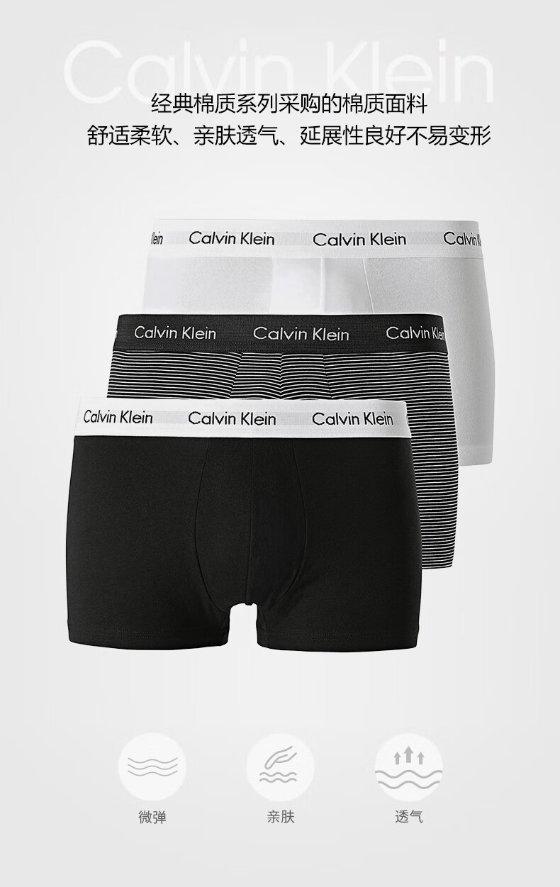 Calvin Klein CK 男士平角内裤套装 3条装 送男友礼物 U2664G IOT黑白条纹 L