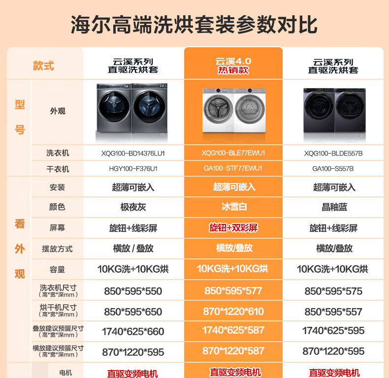 海尔【国家补贴20%】云溪4.0洗烘套装77EW/云溪376+376洗烘套装洗衣机带烘干一体套装滚筒全自动洗衣机烘干机组合 【云溪3.0】直驱智投376+双擎热泵376烘干